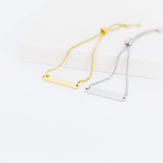Horizontal Rectangle Bar Bolo Bracelet (Silver or Gold), 1 Total, Metal Blank #8