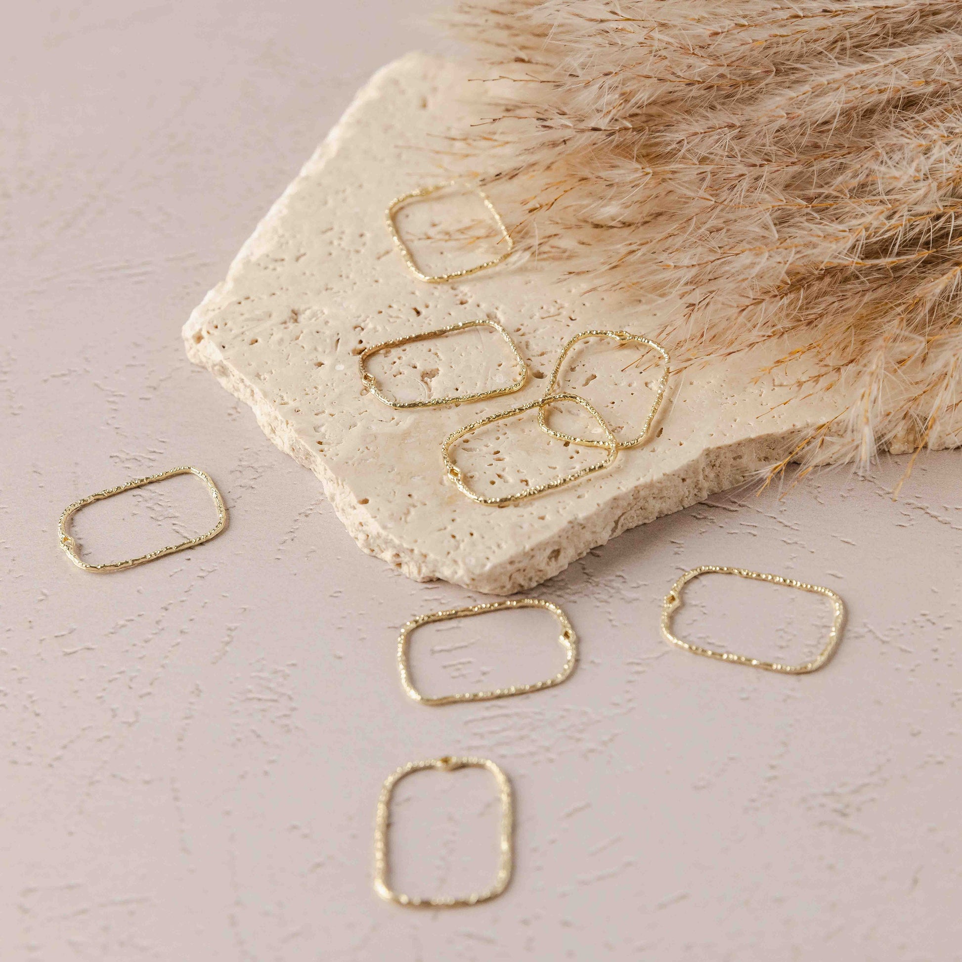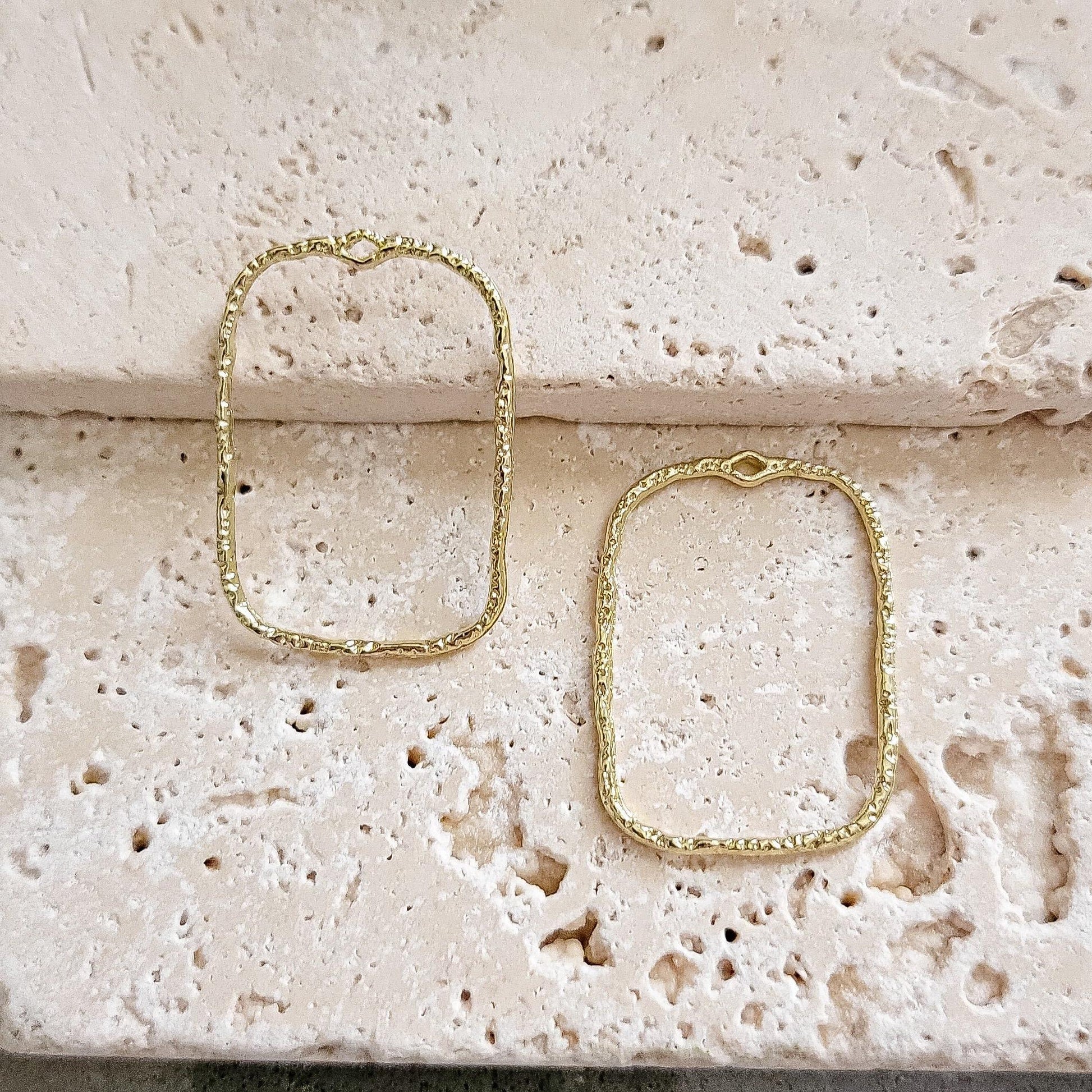 20mm Hammered Gold Rectangle Brass Charm with Hole, 10 Pieces