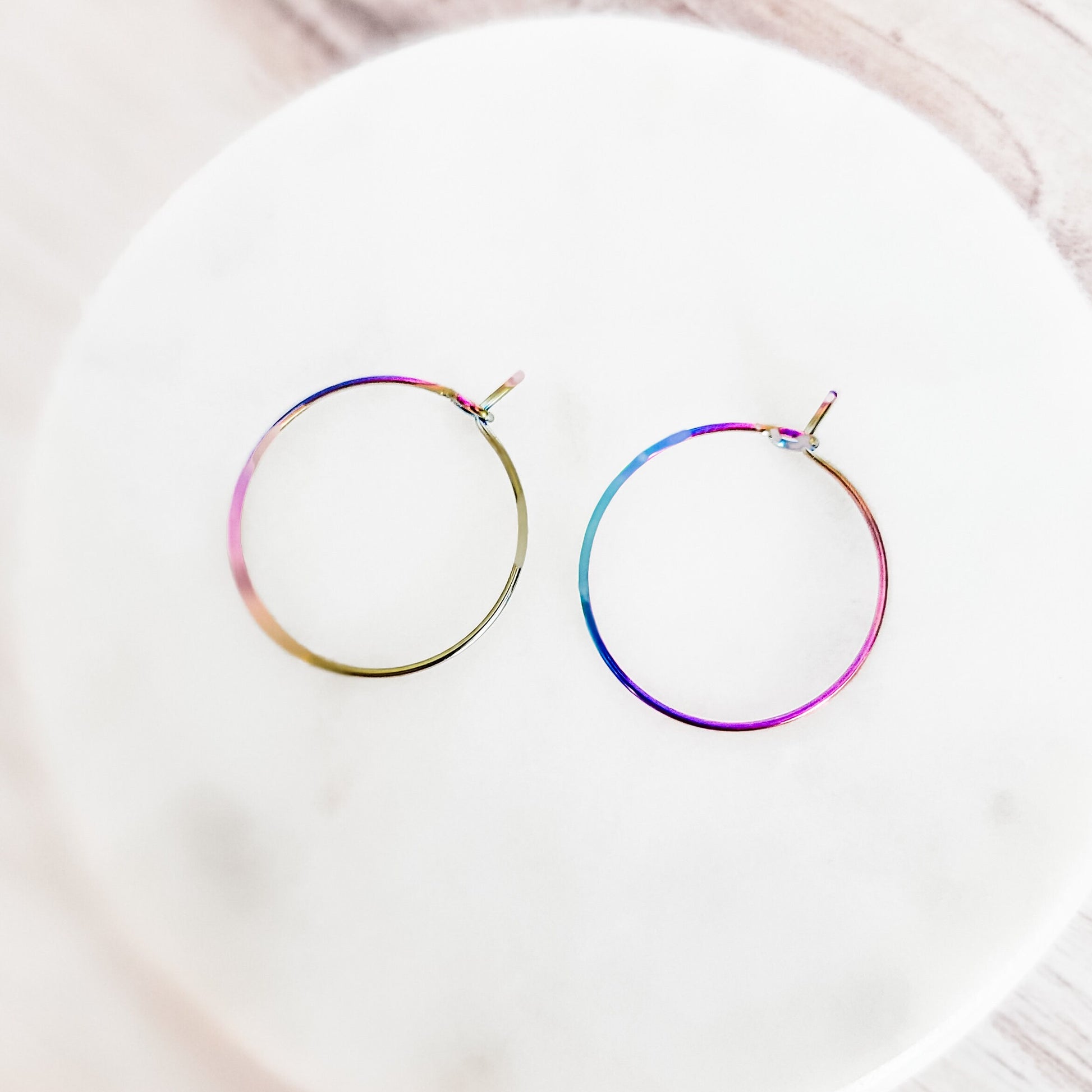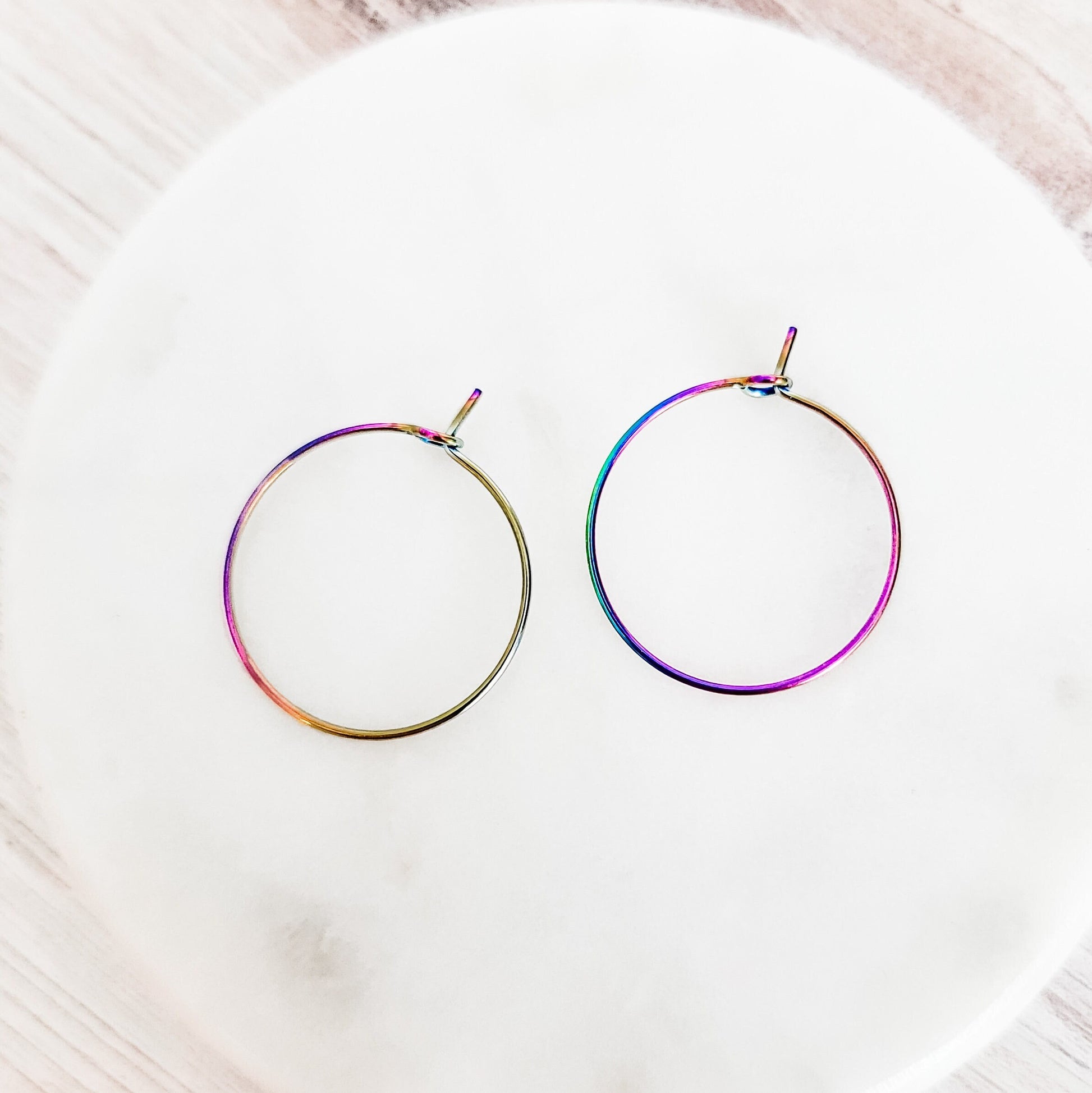 Rainbow 25mm Round Wine Hoop Stainless Steel Ear Wires, 10 Pieces