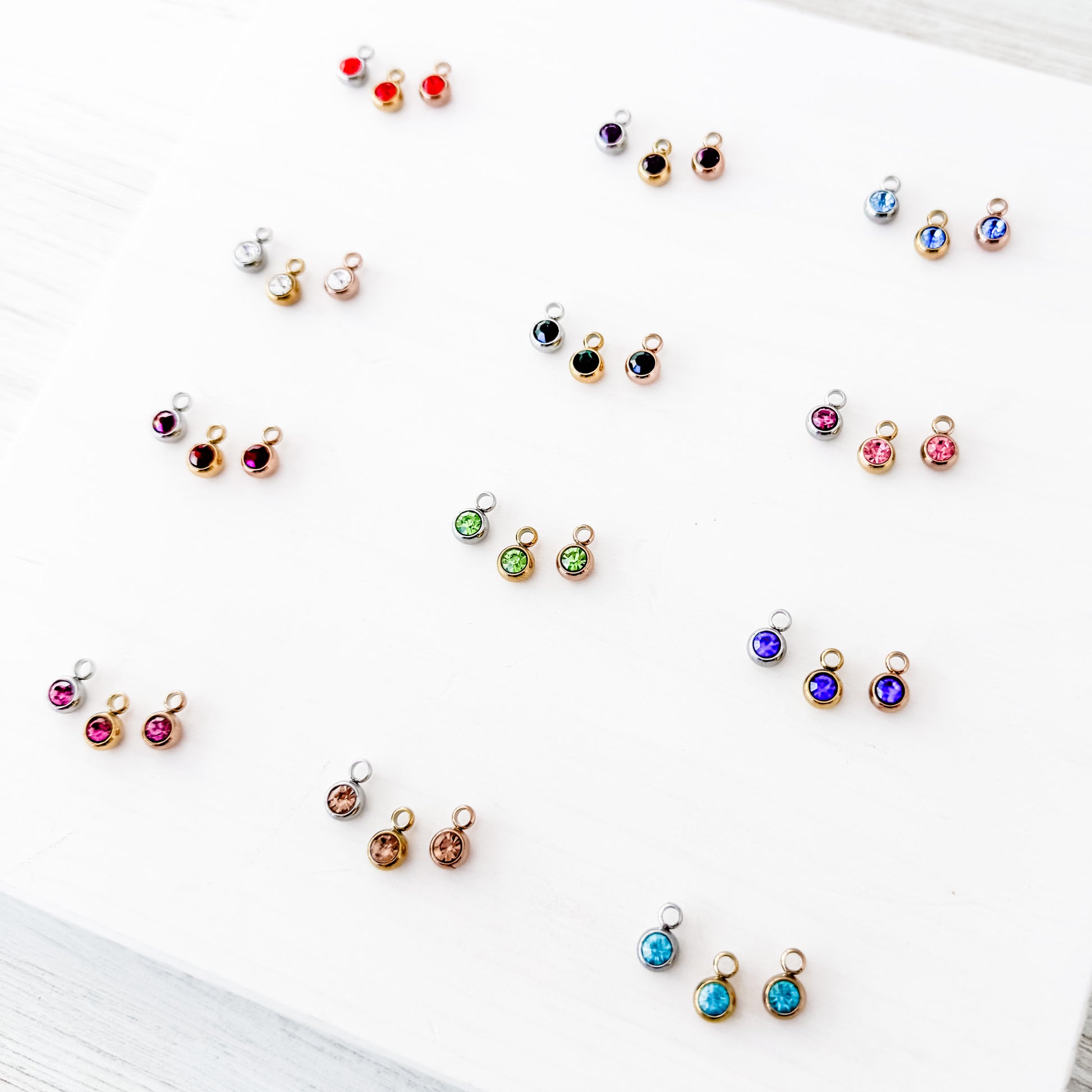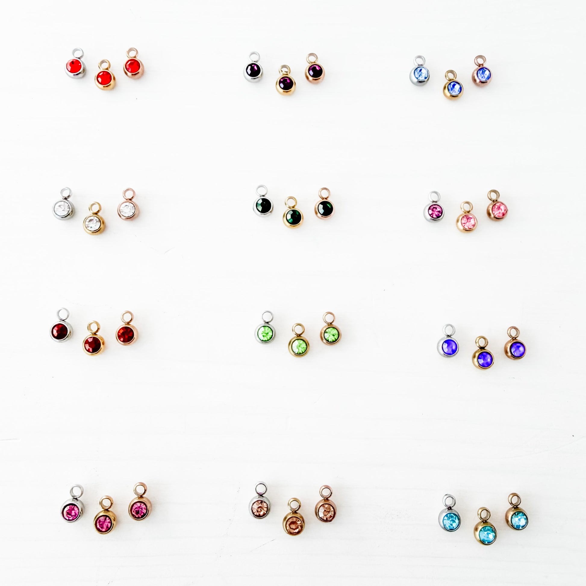 6mm Cubic Zirconia Round Birthstone Charms, 5 Pieces Total, Birthstone #1