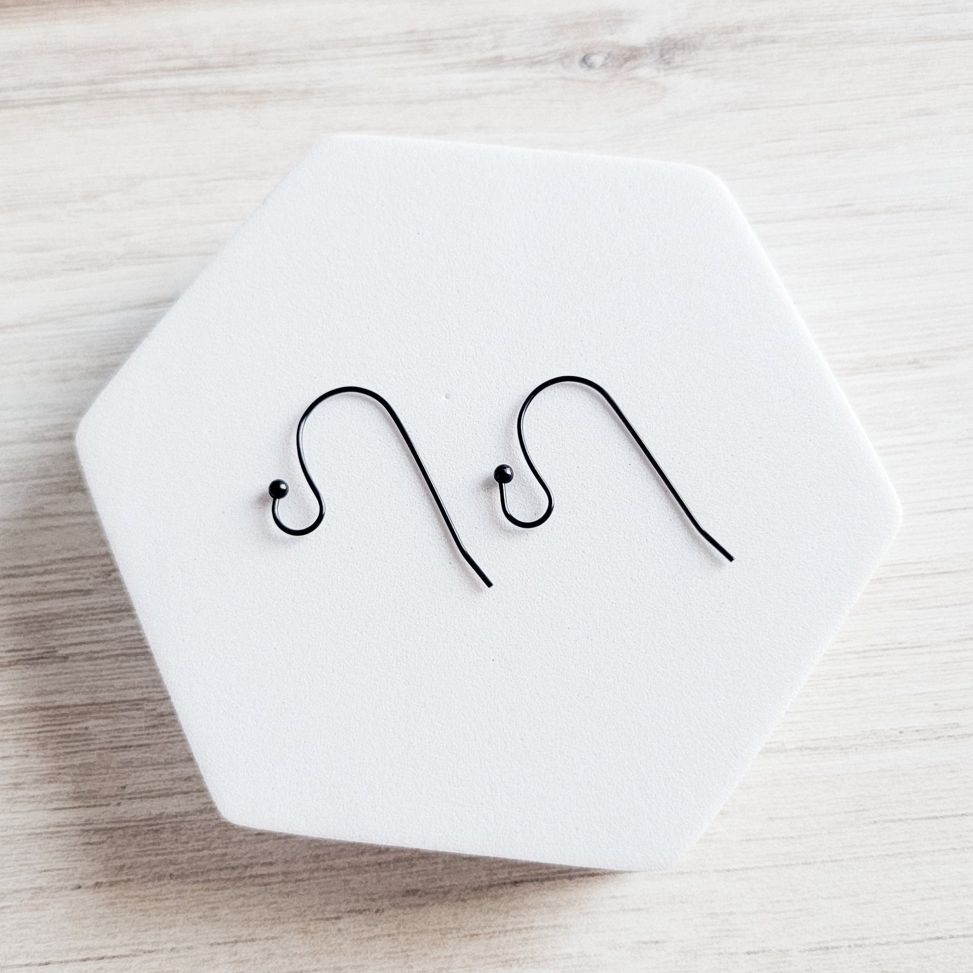 Ball Style Large Loop Black Ear Wires Stainless Steel, 20 Pieces
