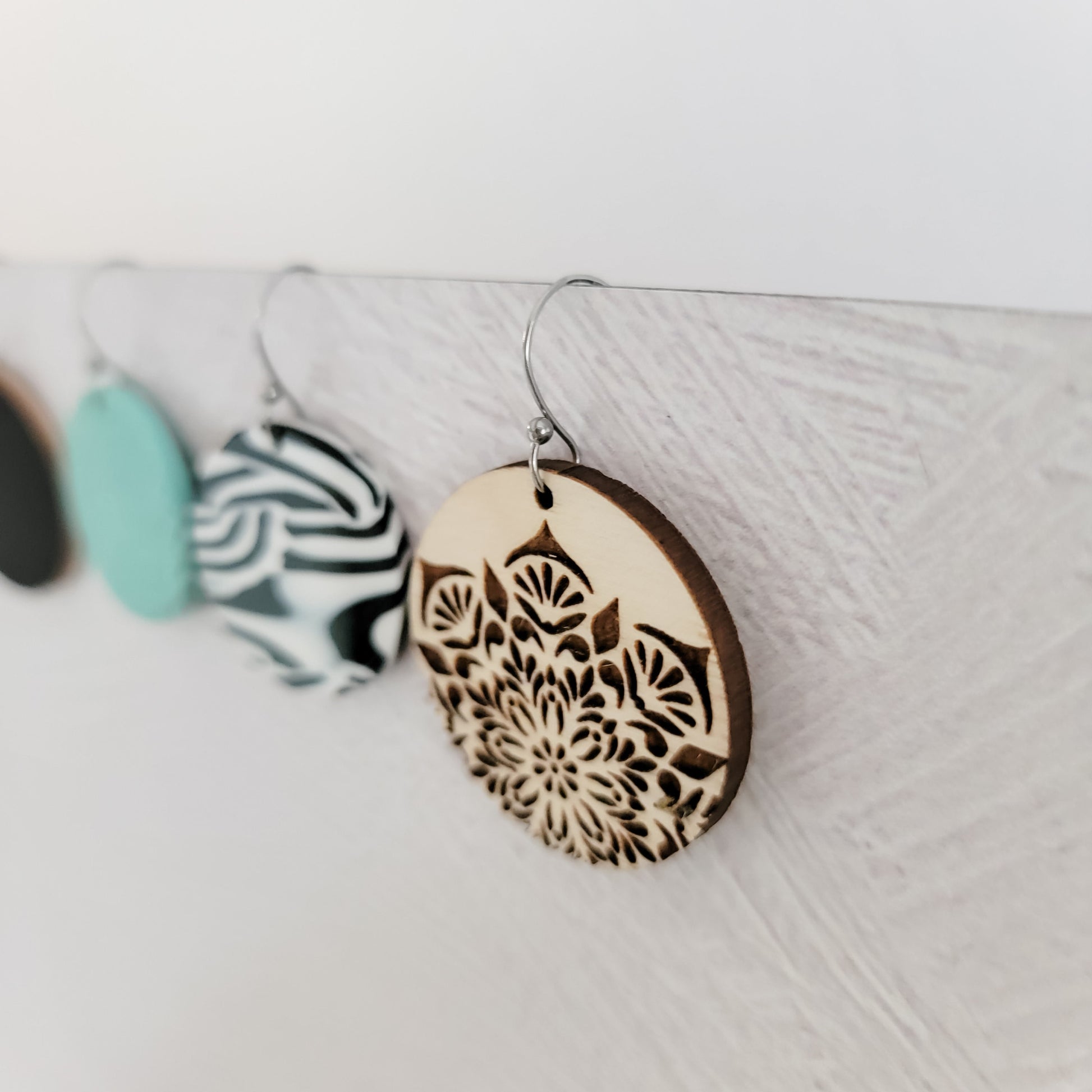 Say goodbye to jump rings! These beautiful 5mm large loop stainless steel ear wires from Monarch Pine Craft Supply can be used with leather (including 2-layer designs), 1/8 wood, acrylic, polymer clay, and other materials without the use of jump rings, while still providing plenty of movement and swing on the earring hook!