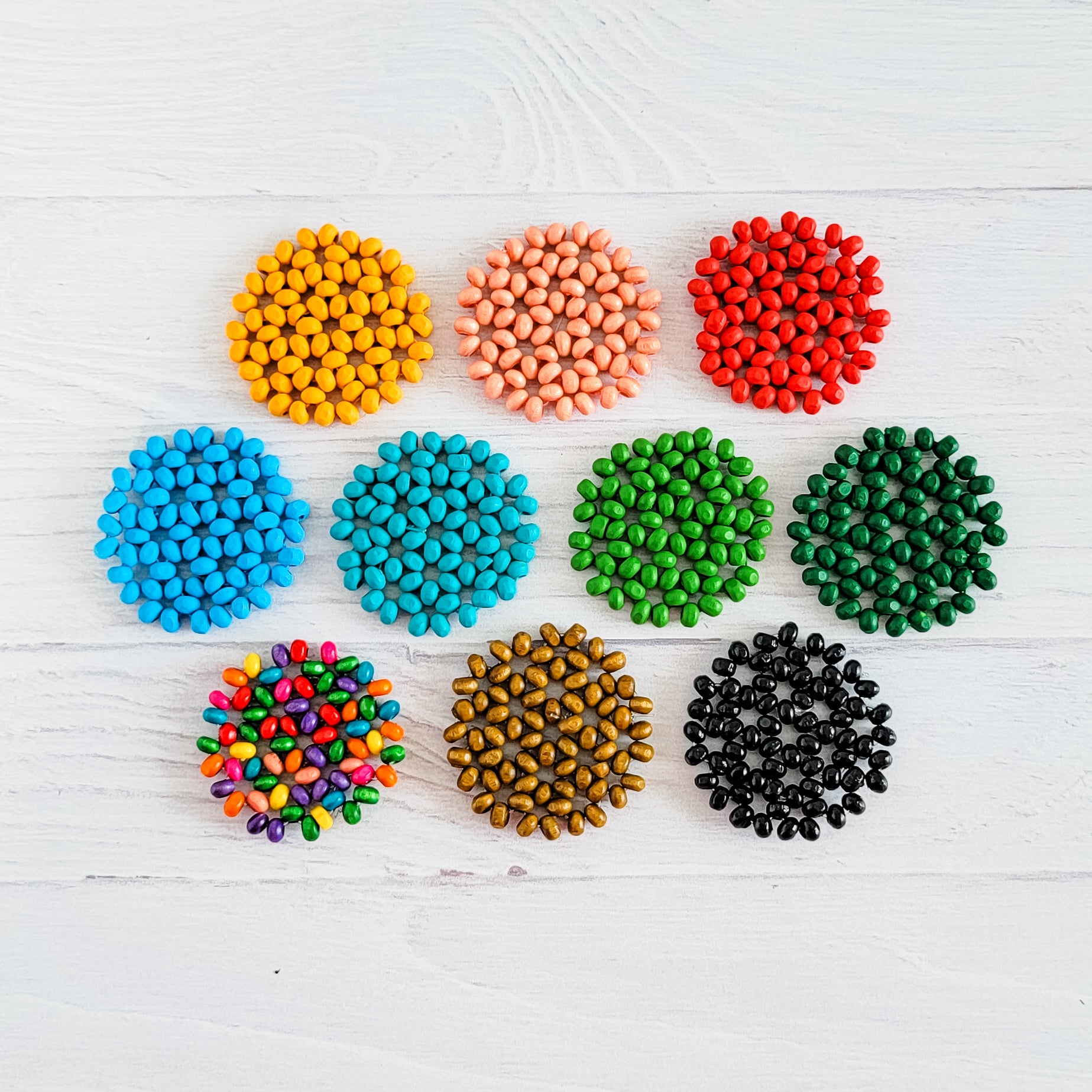 Beaded Disc Real Rattan Pendants (Choice of Color), 4 Pieces, Wood #58