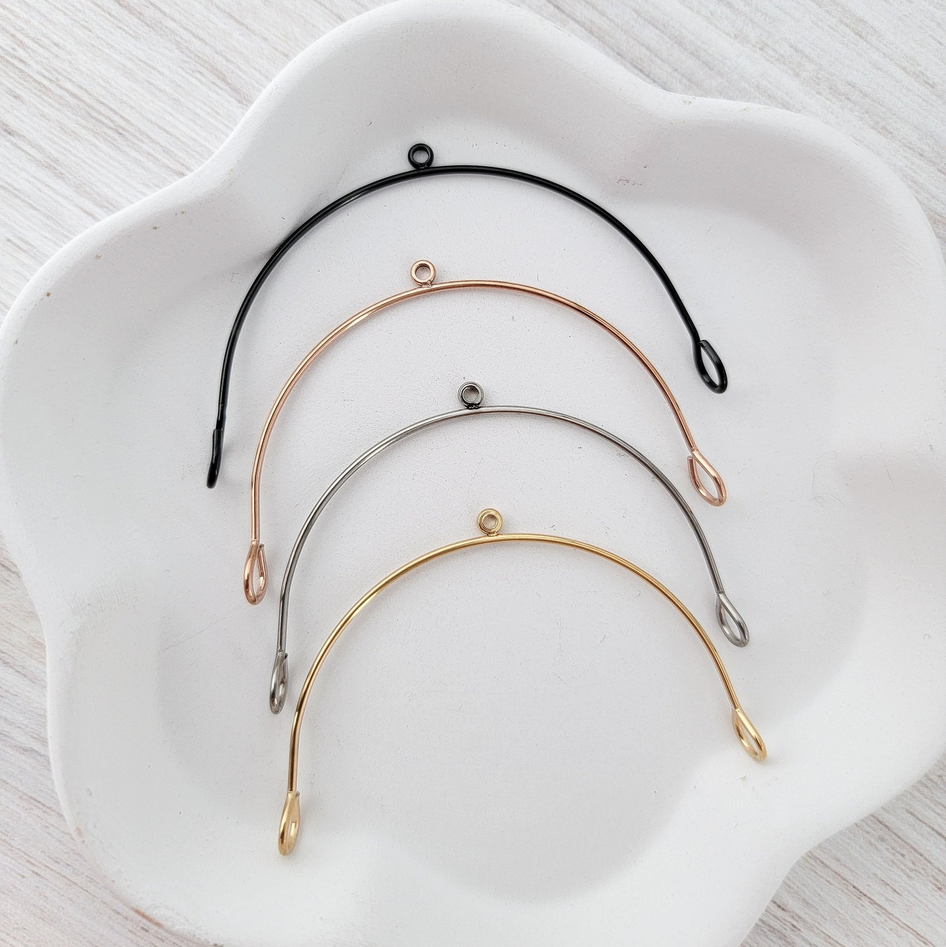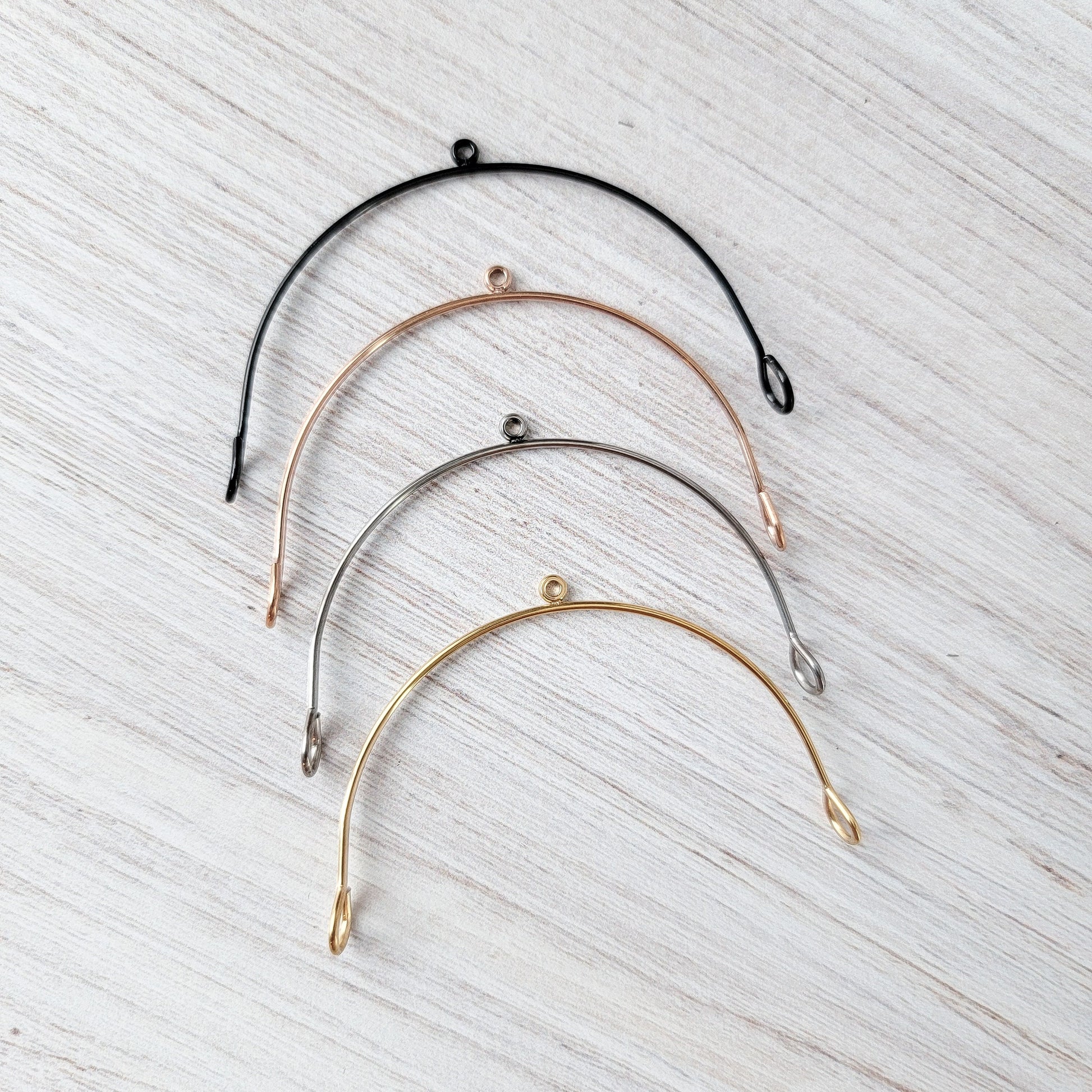 Sturdy and beautiful, these black stainless steel arched earring connectors from Monarch Pine Craft Supply are the perfect finding to elevate your DIY earrings. On-trend and sophisticated, these arches connect with ease to metal, acrylic, leather, and other materials -- and they won't fade! This listing is for 10 individual pieces (5 pairs).