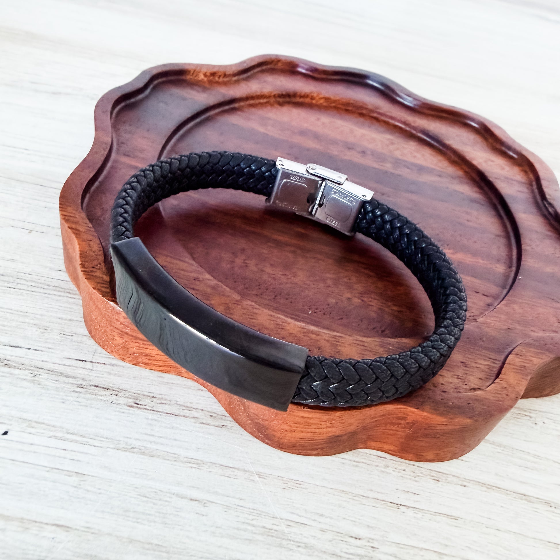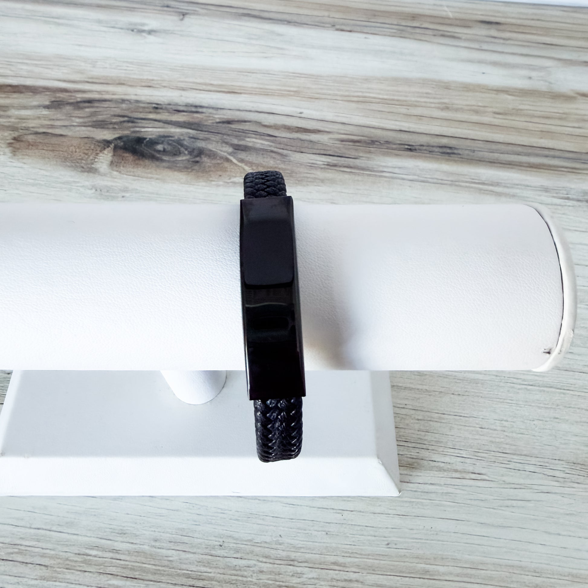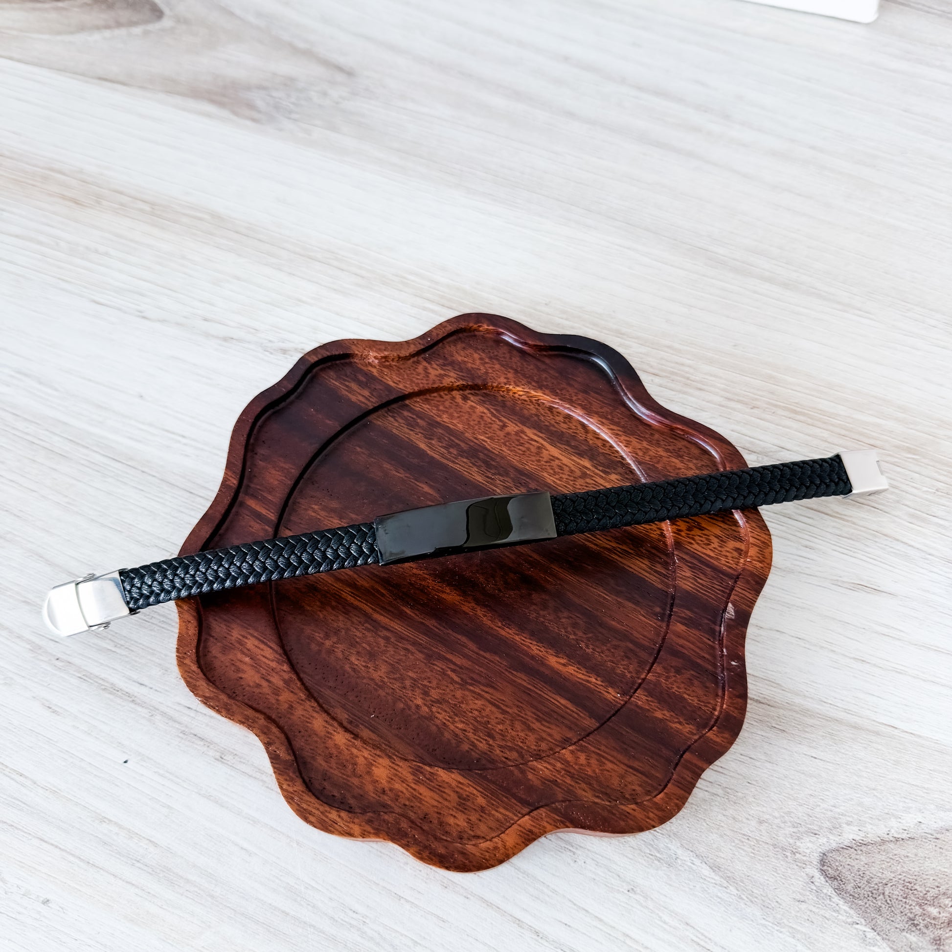 Black Woven Cord Men's Bracelet, 1 Total, Metal Blank #256
