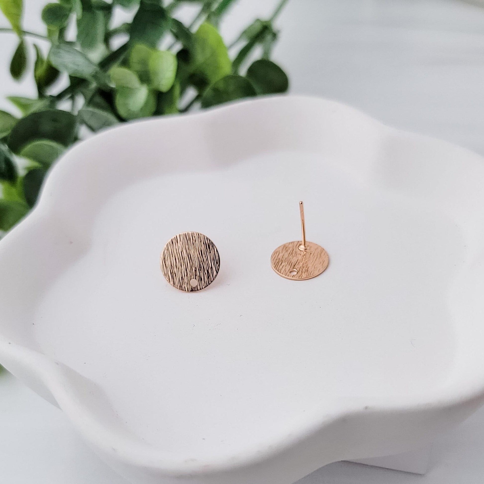 Gold Brushed 12mm Stud Earring Findings, 10 Pieces