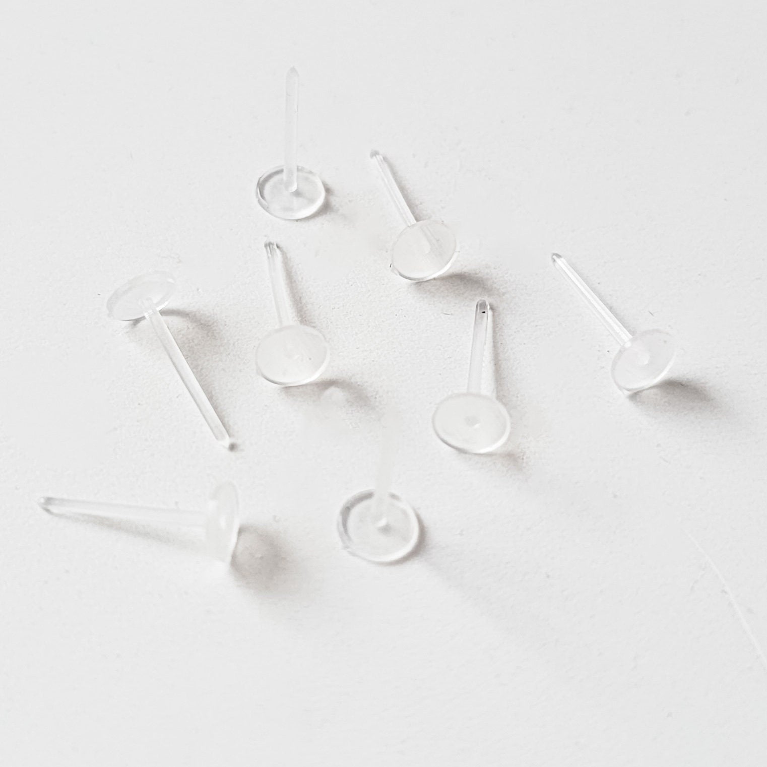 3mm Clear Plastic Flat Pad Earring Posts, 100 Pieces, Plastic #5