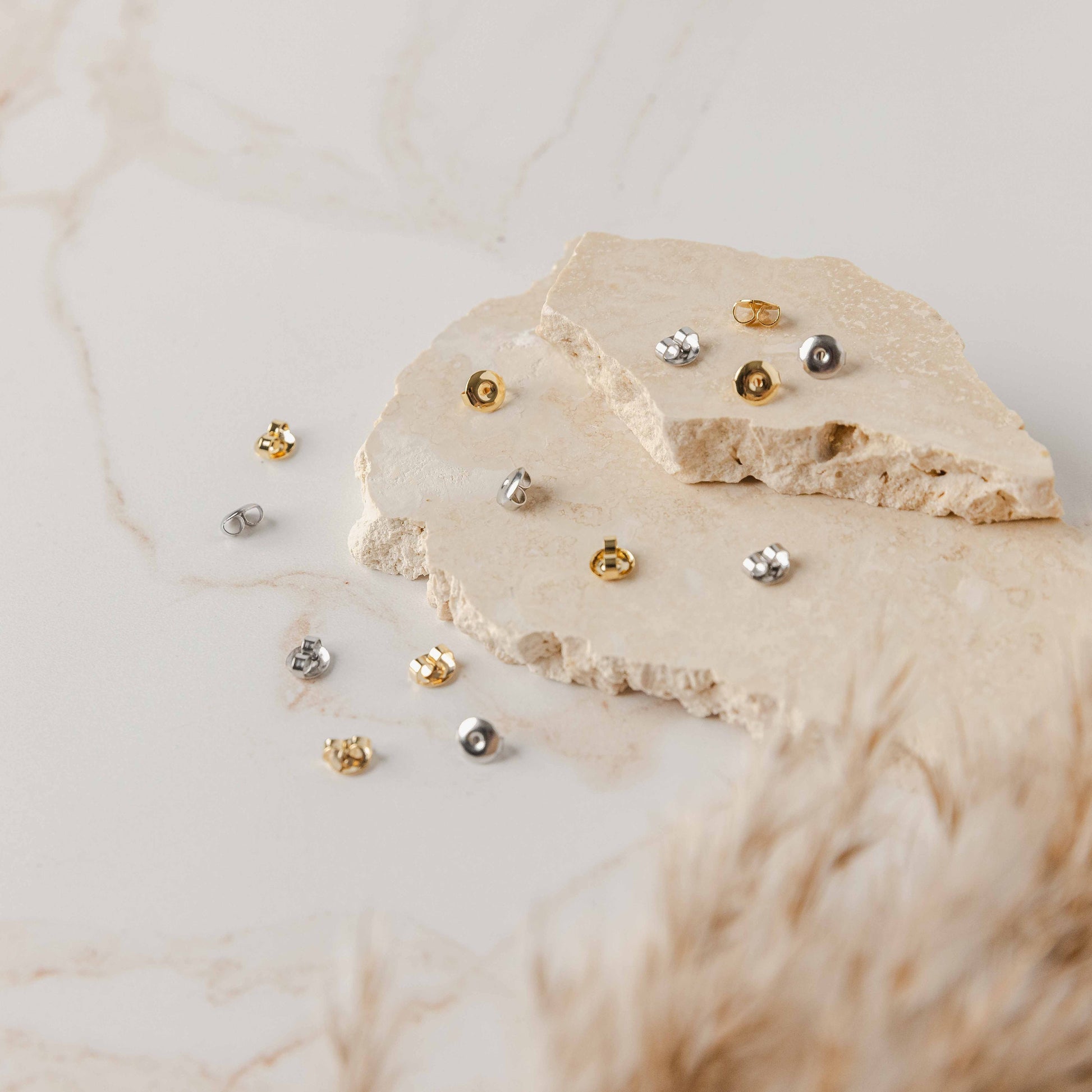 These stainless steel earring backs (butterfly ear nuts) by Monarch Pine are sturdy, hypoallergenic, and attractive.