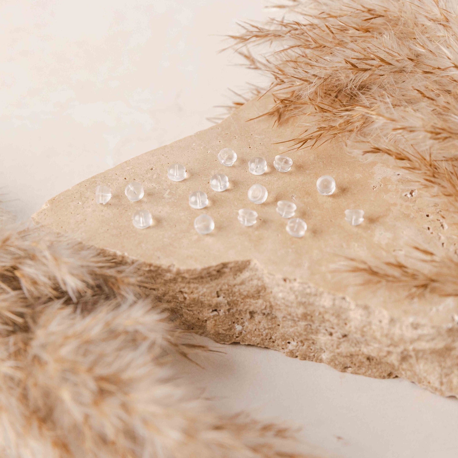 These hypoallergenic earring backs by Monarch Pine are sturdy, hypoallergenic, and attractive. They are clear silicone and won't stretch out over time.