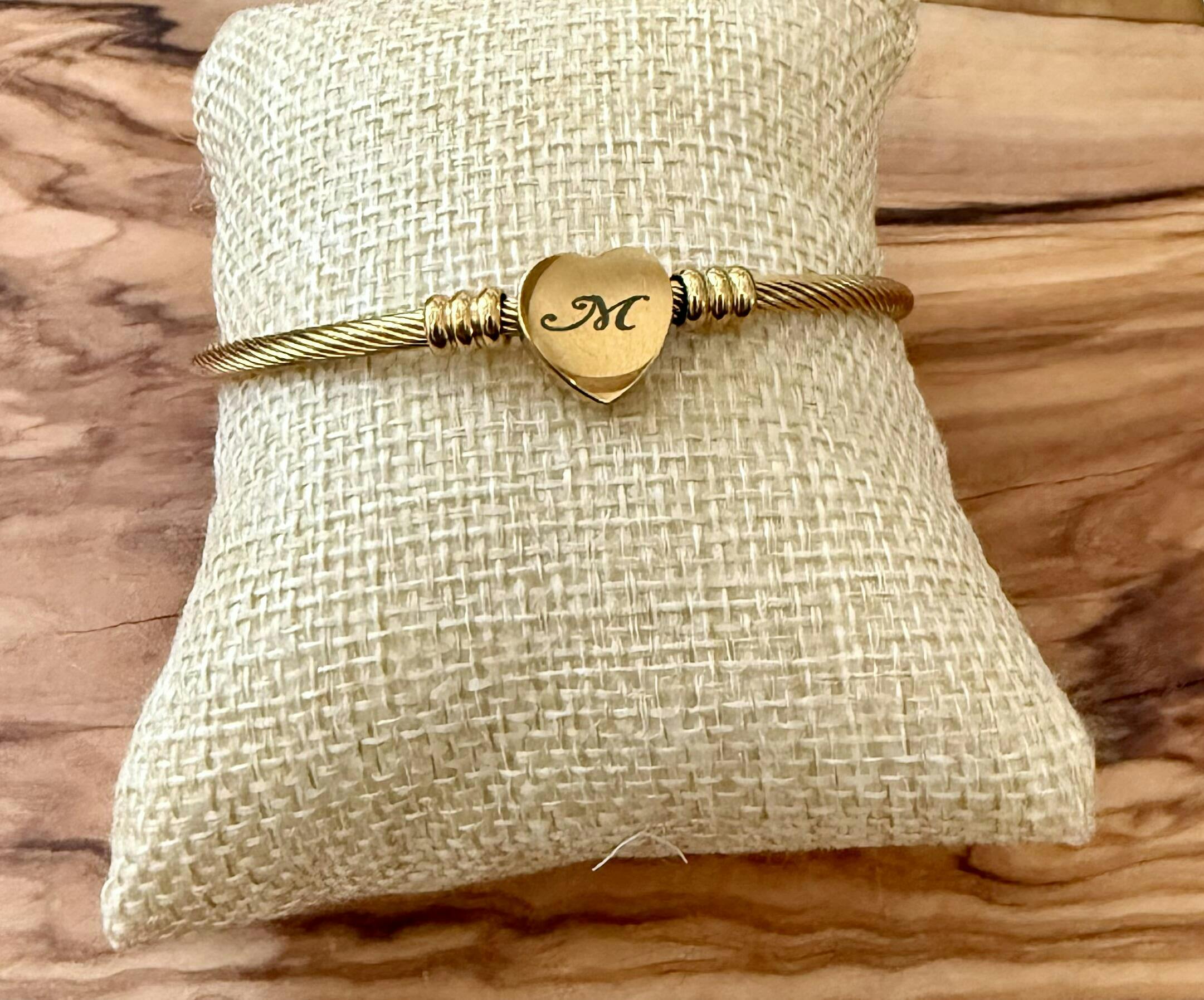 Cable Heart Bangle Bracelet (Silver or Gold), 1 Total, Metal Blank #171
