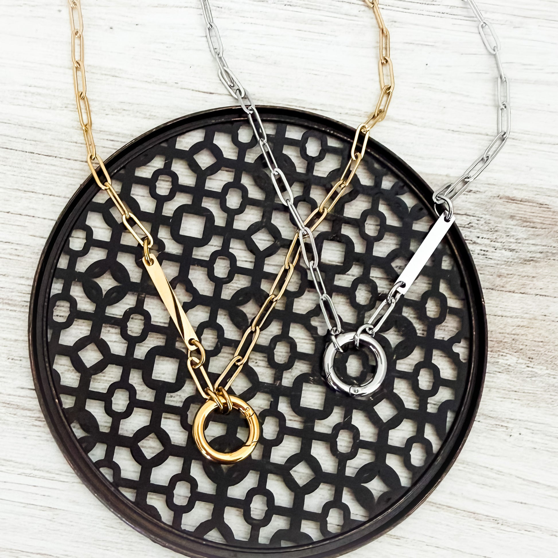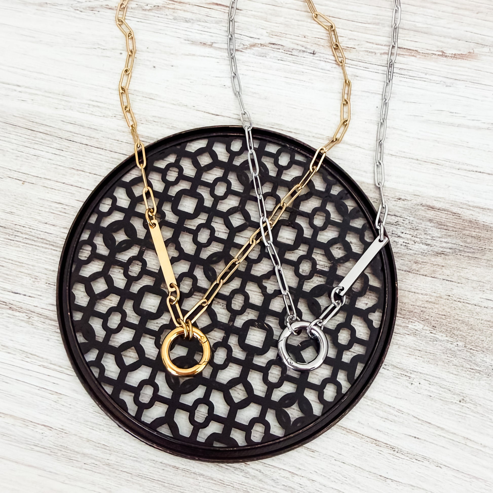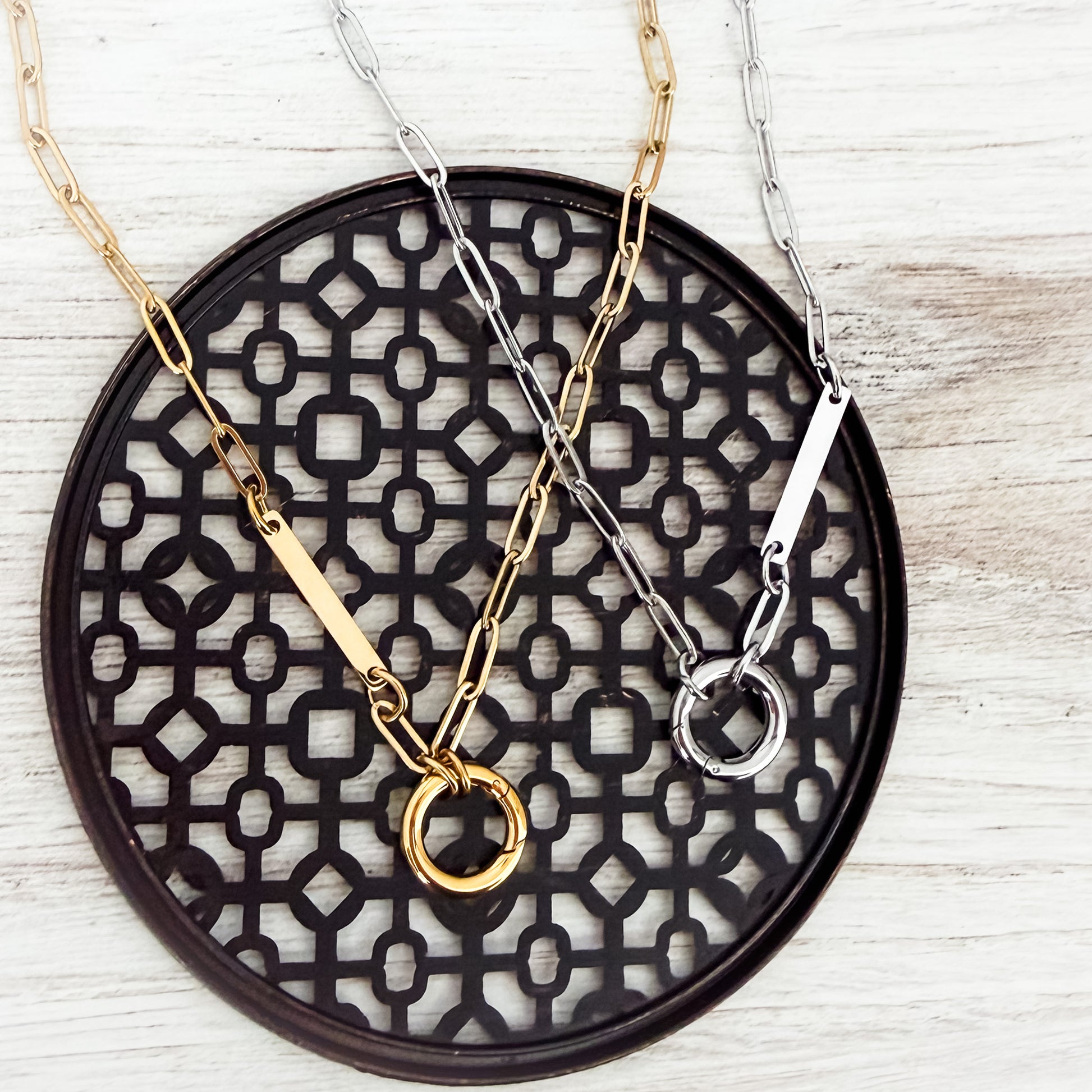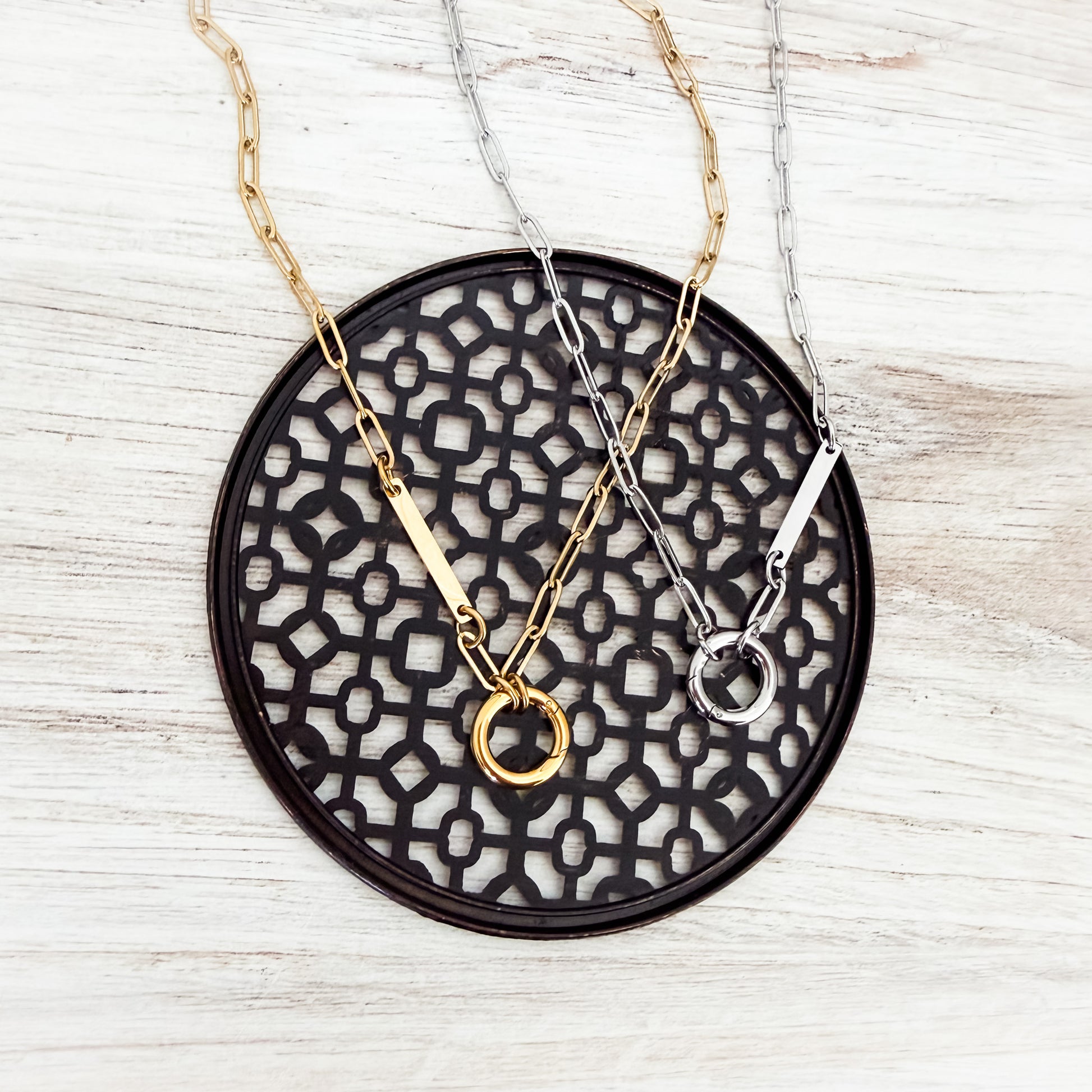 Charm Holder with Bar Paperclip Chain Necklace (Silver or Gold), 1 Total, Metal Blank #241