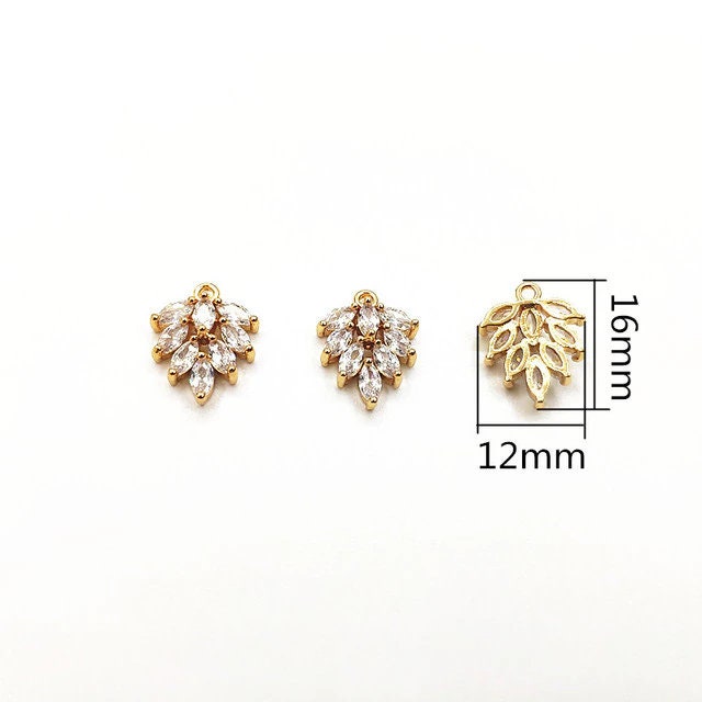 Gold Feather Cubic Zirconia Charms, 10 Pieces