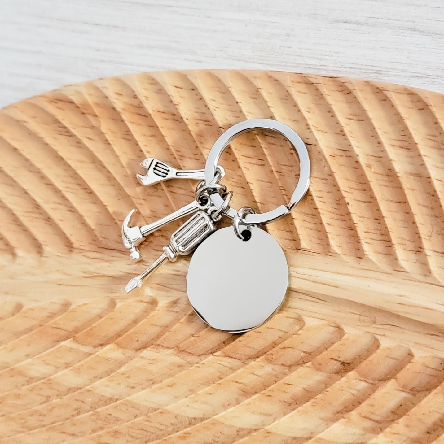 Disc with Tool Trio Charm Keychain (Silver), 1 Piece Total, Metal Blank #94