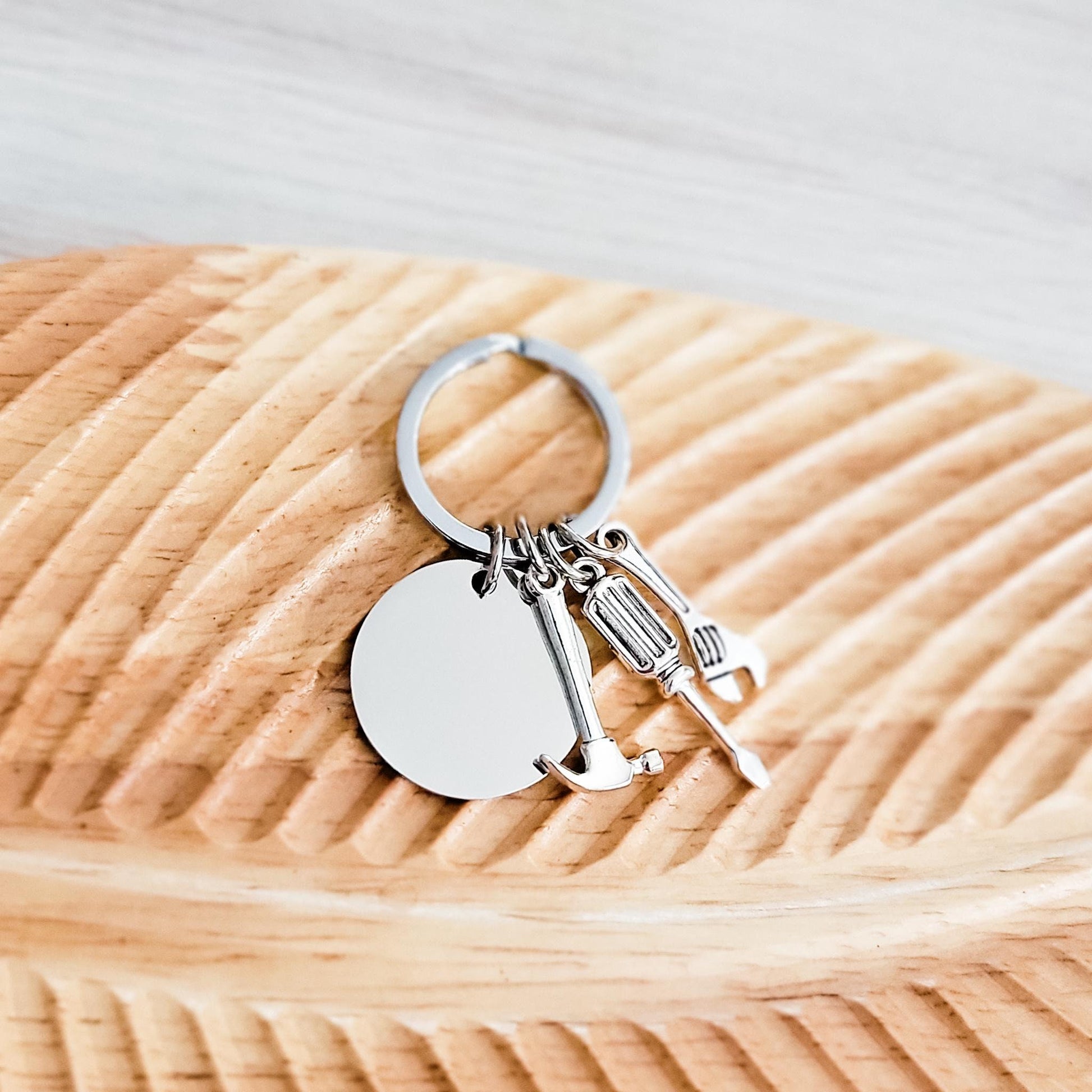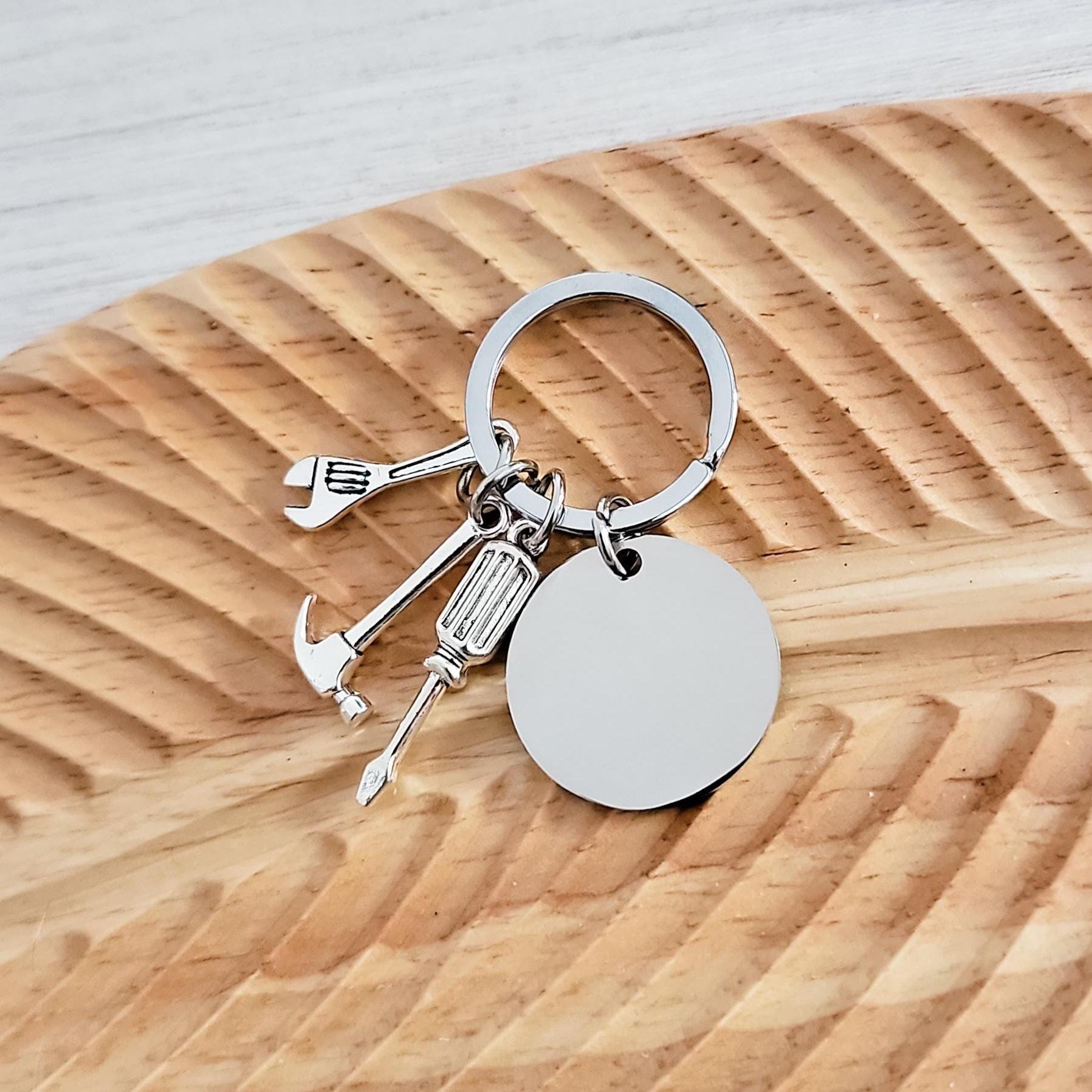 • Size: 25mm disc pendant, 23mm hammer charm, 24mm wrench charm, 30mm screwdriver charm, 25mm split key ring