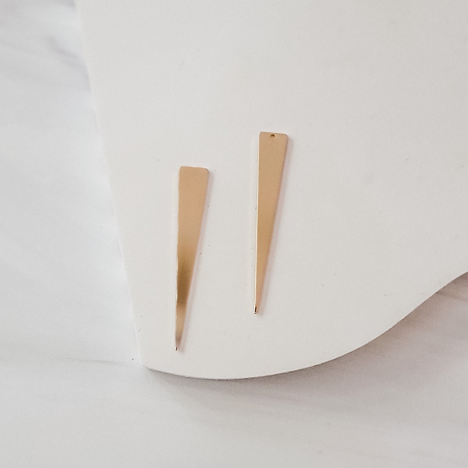 Gold Elongated Narrow Triangle 1-Hole Brass Charms, 10 Pieces