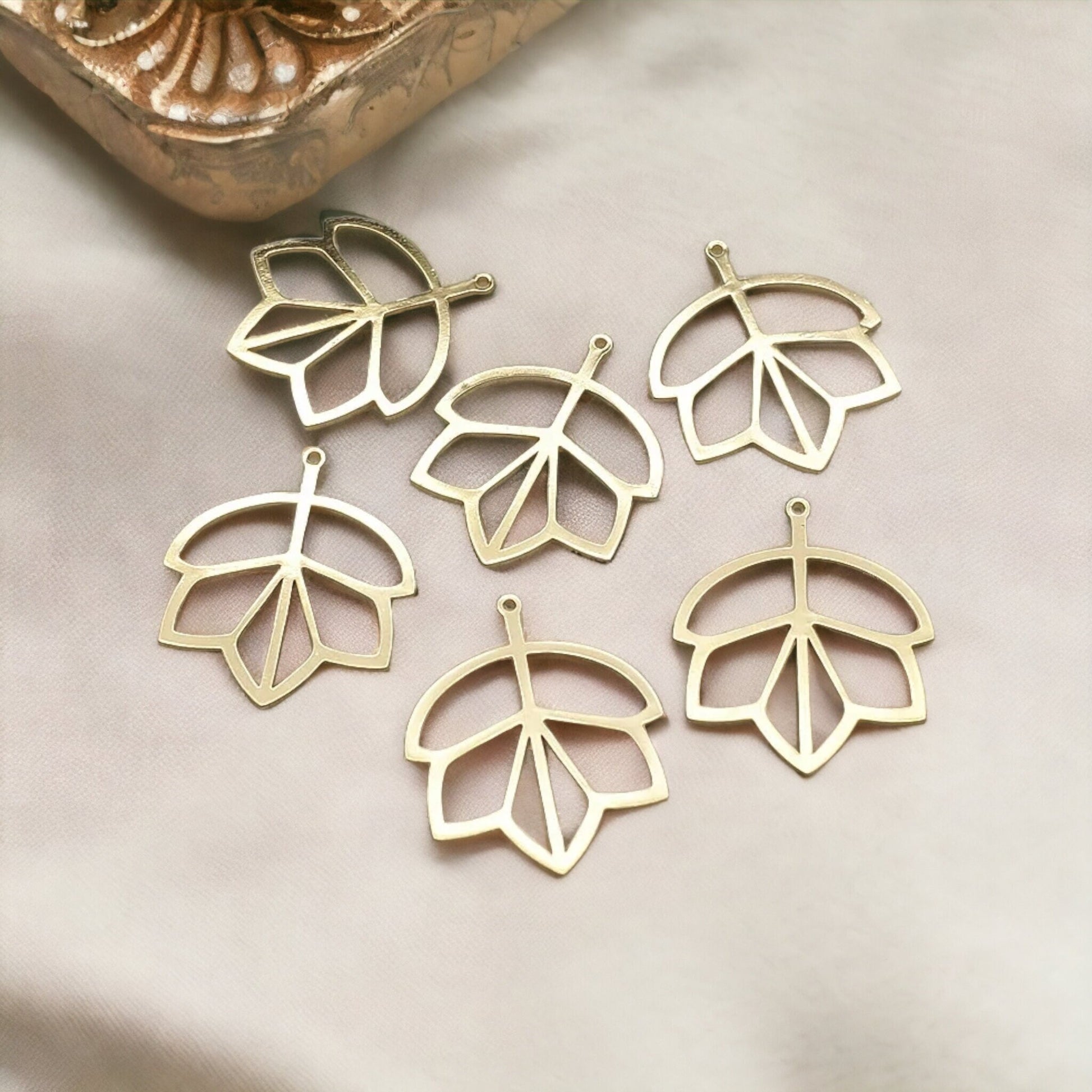 Gold Fall Leaf 1-Hole Brass Charms, 10 Pieces