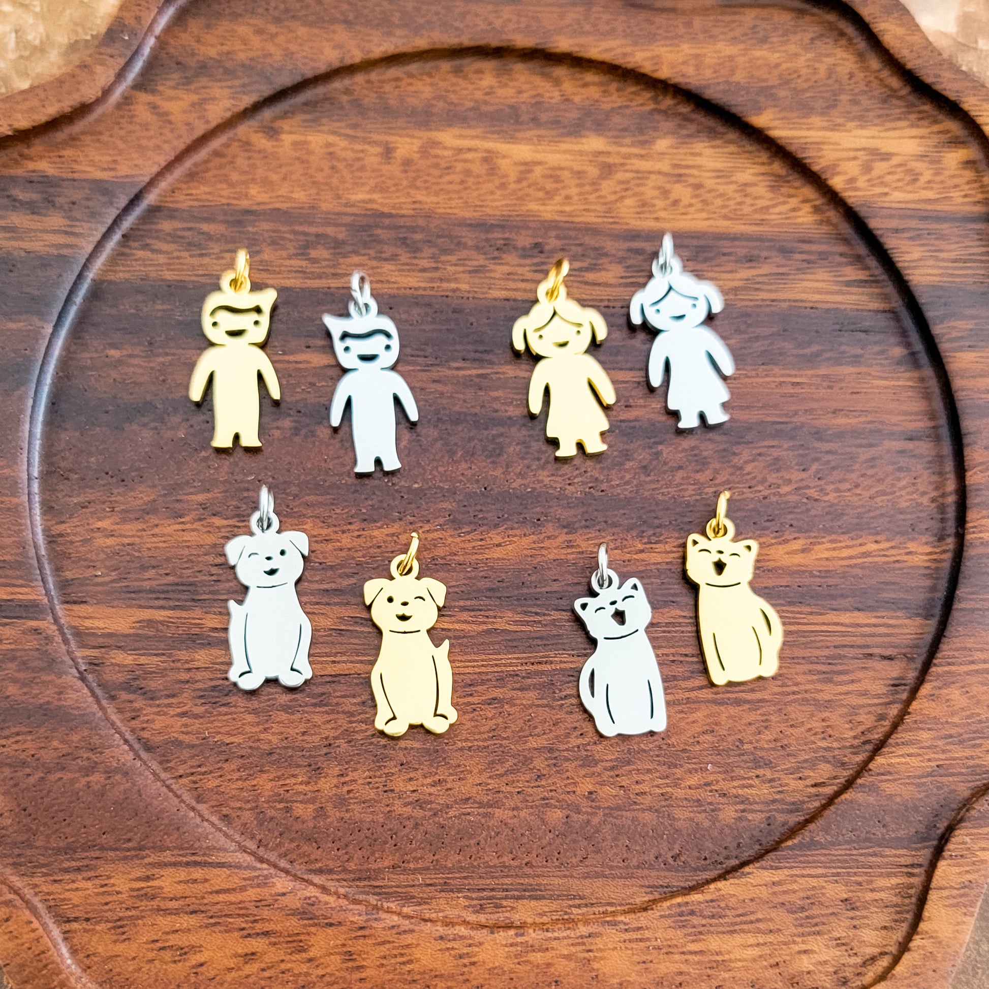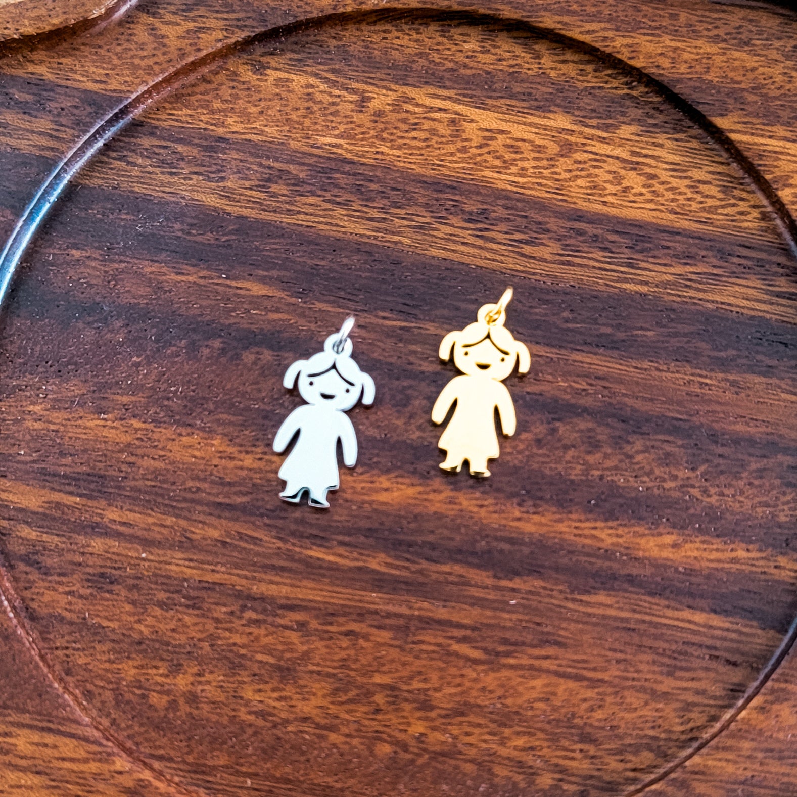 Girl Charms with Attached Jump Rings (Silver or Gold), 5 Total, Metal Blank #147