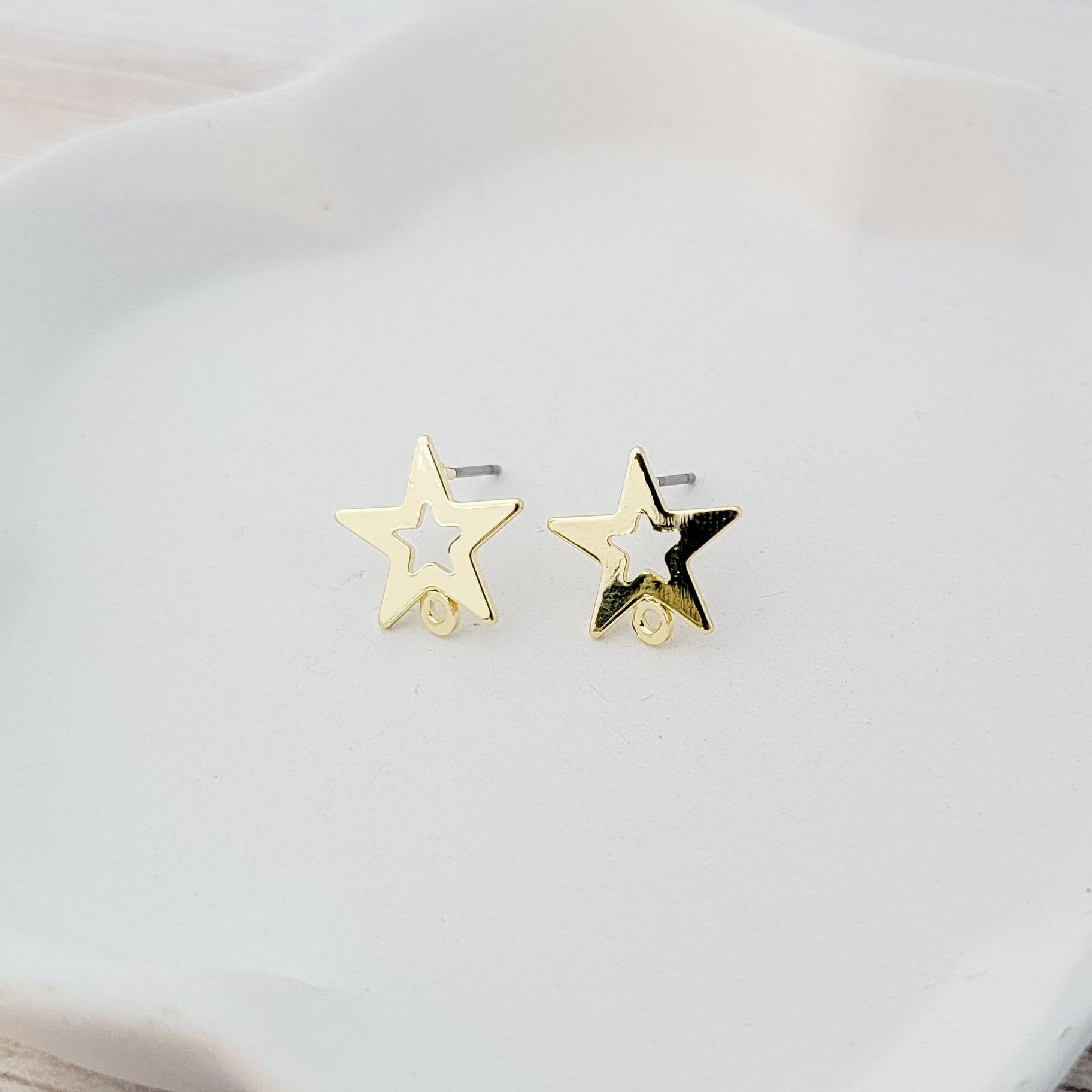 Gold Open Star Stud Earring Findings, 10 Pieces
