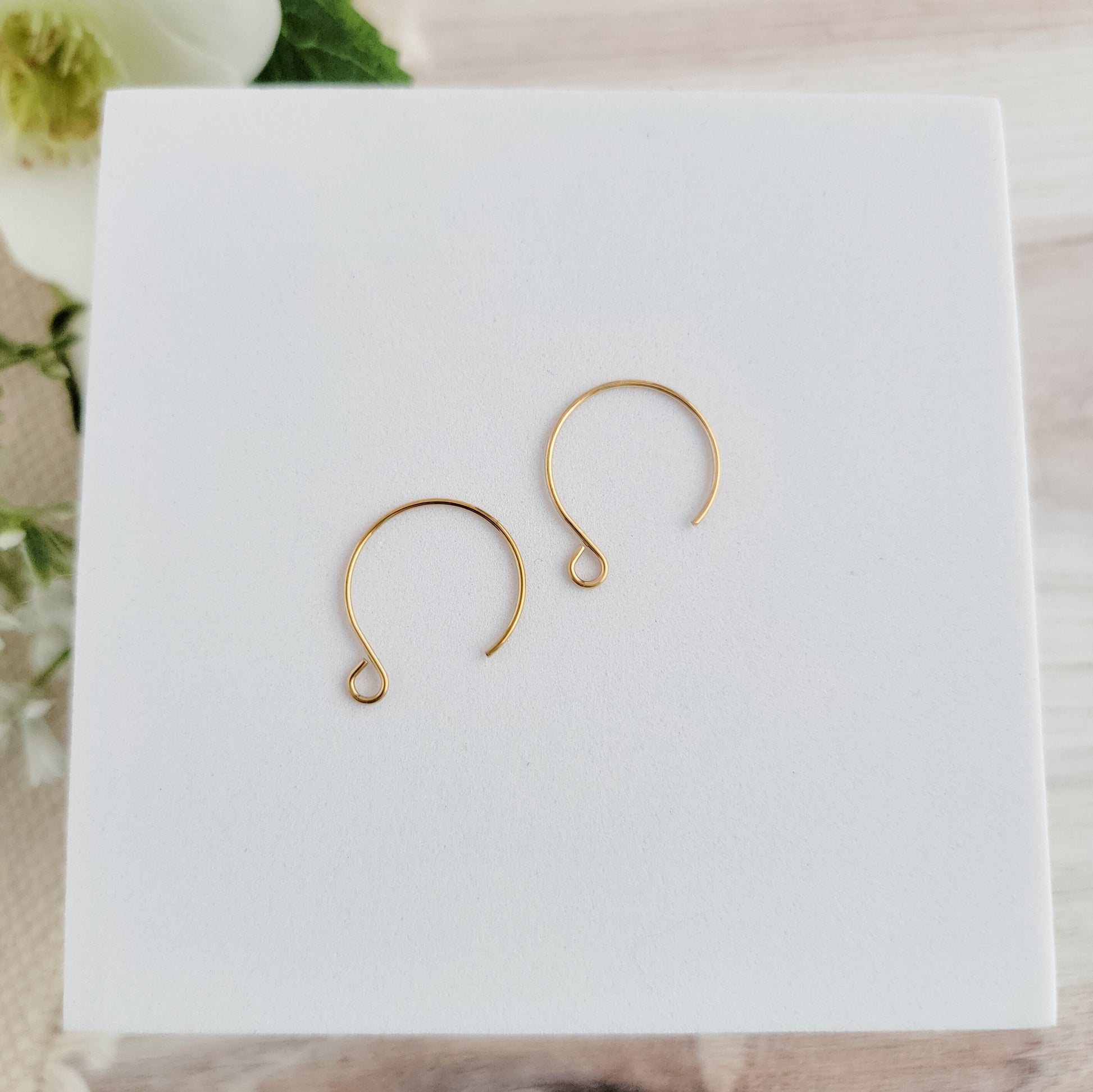 A feminine take on the traditional ear wire, these lovely earring hooks from Monarch Pine Craft Supply feature a rounded shape for a softer look. Crafted from premium hypoallergenic surgical stainless steel, these hooks have a 2.5 millimeter inner loop diameter and 22 millimeter drop. 20 pieces.