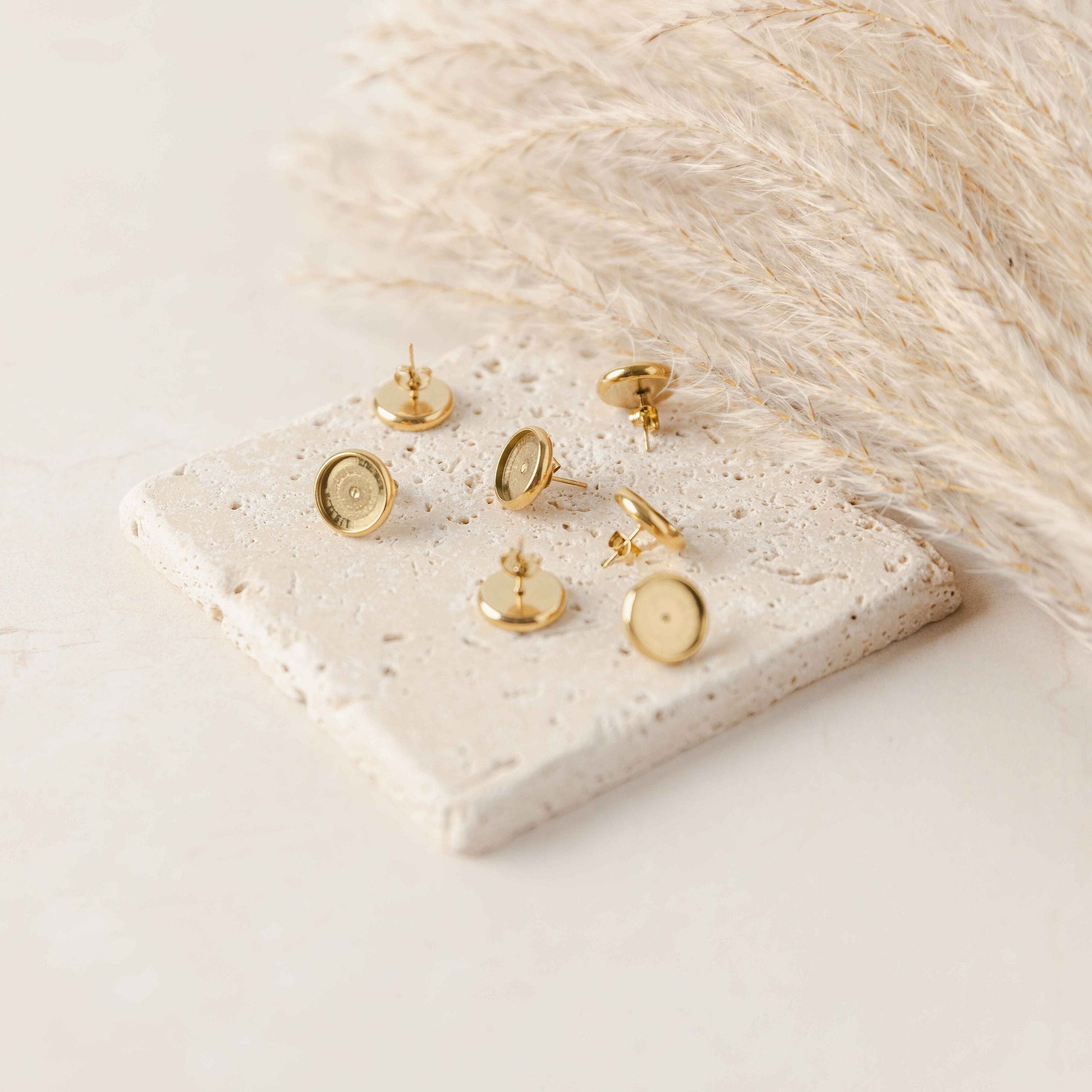 Gold 8mm Stainless Steel Stud Bezels (Regular, No Connector Loop), 10 Pieces, Stud #16