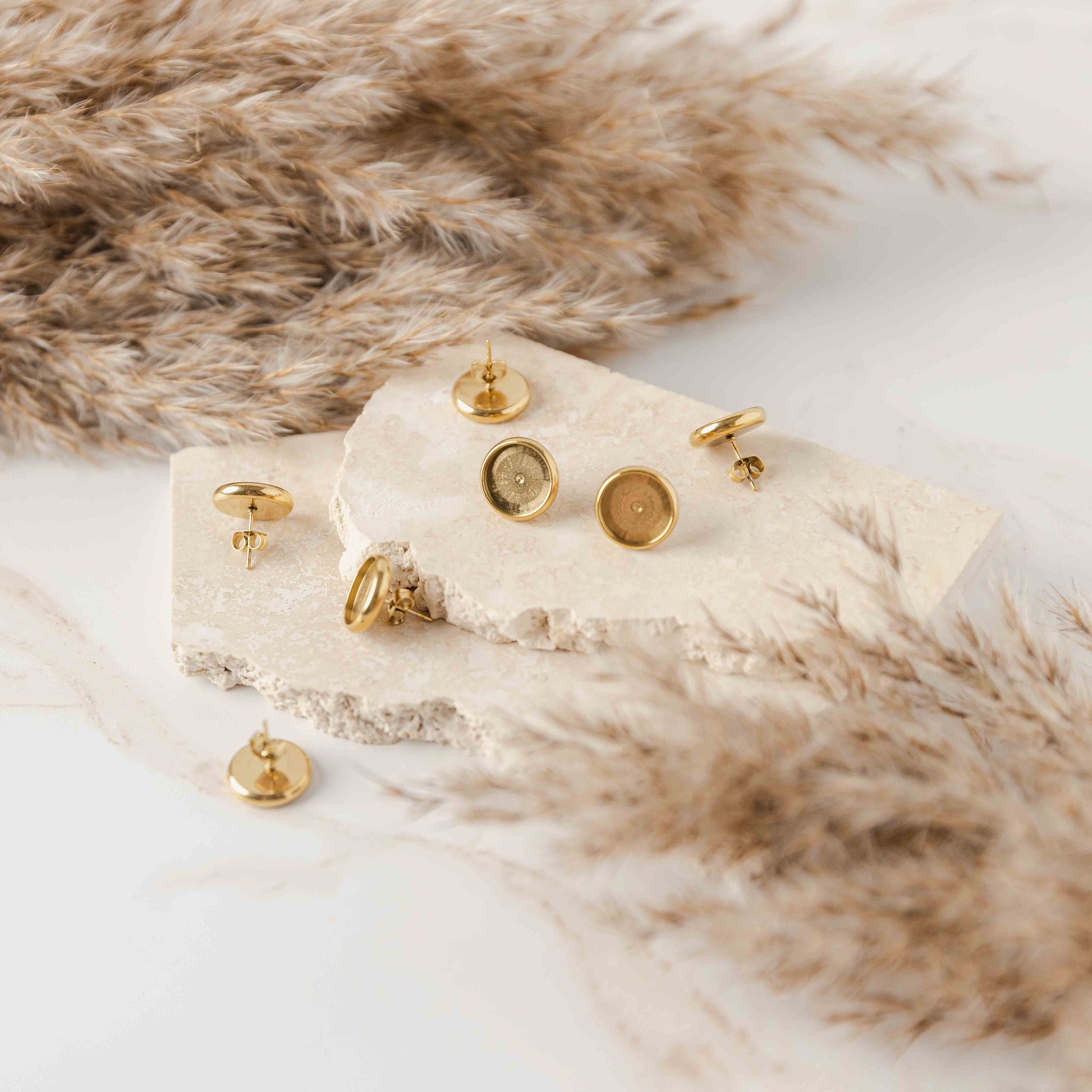 Stainless steel stud bezels by Monarch Pine Craft Supply are an excellent choice to create beautiful, high quality DIY stud earrings. Made from stainless steel, these high-quality posts are hypoallergenic and tarnish-resistant. Pair with metal, acrylic, leather, wood, and more using jewelry glue. This listing is for 10 individual pieces (5 pairs).