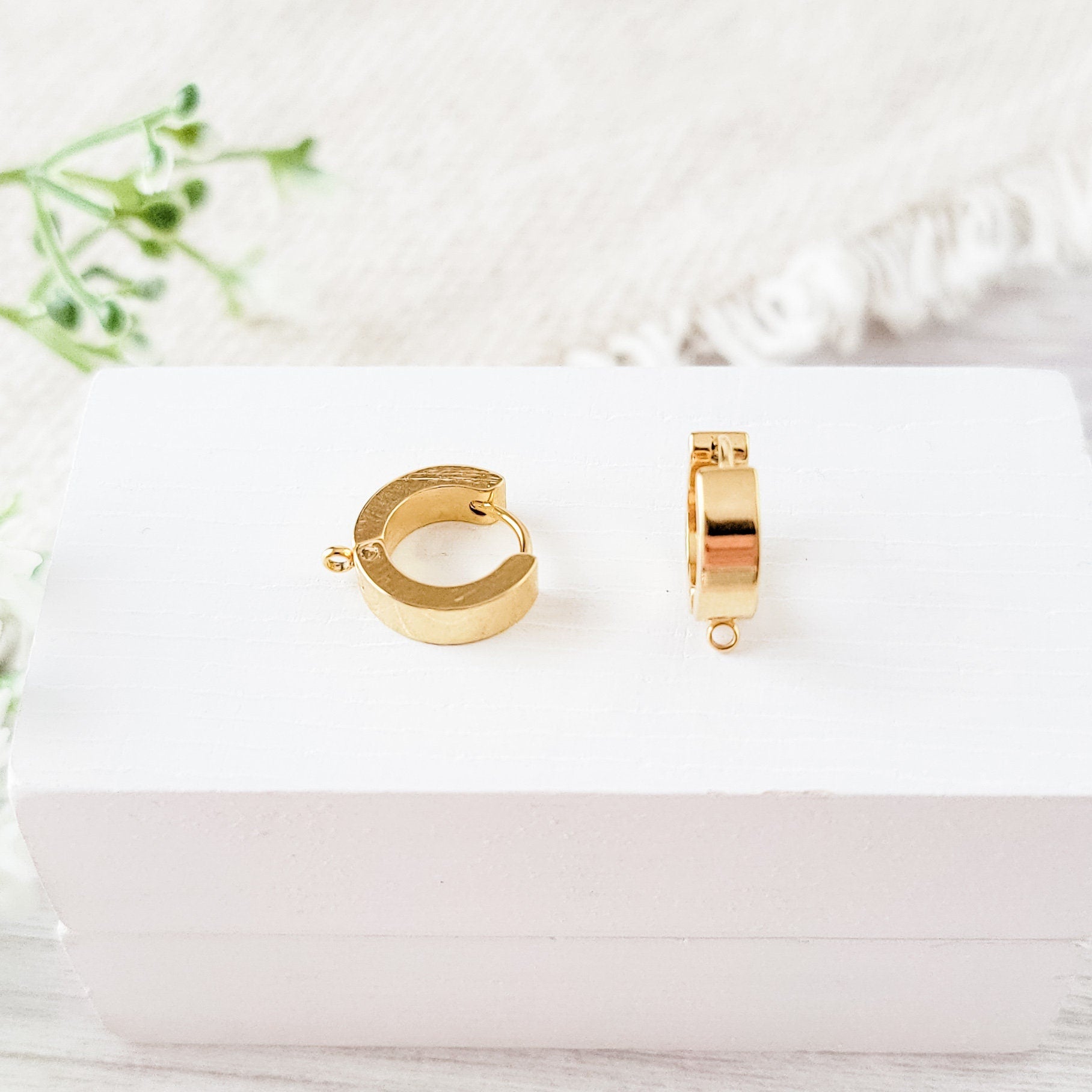 Gold Wide Stainless Steel Huggie with Perpendicular Loop, 10 Pieces