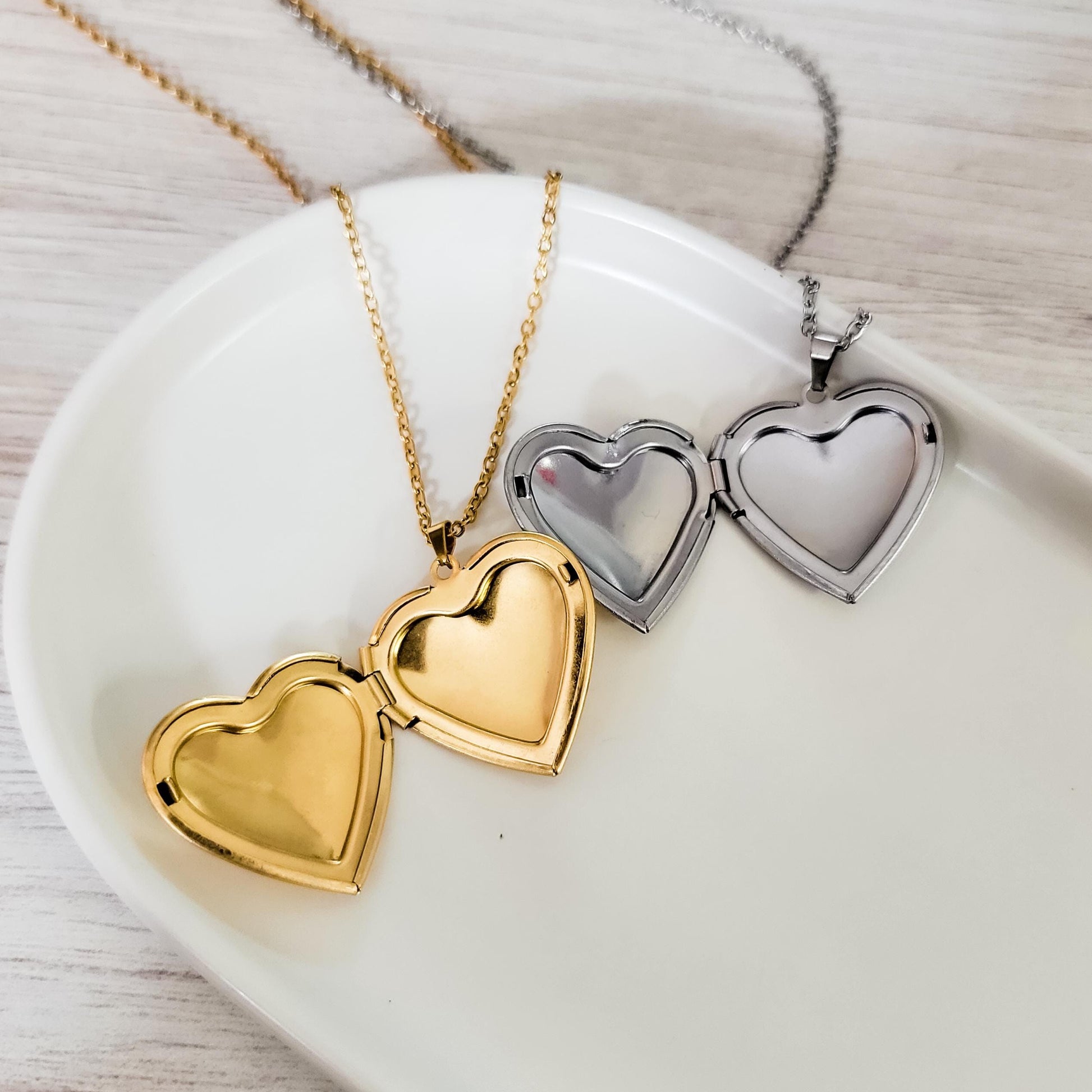 Heart Locket Necklace (Silver and Gold), 1 Total, Metal Blank #101