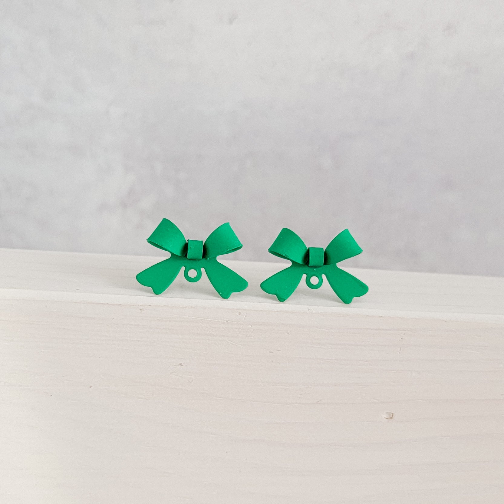 Bow stud connectors with loops are a gorgeous addition to festive, holiday earring designs. Pair with metal, acrylic, leather, wood, and more using Monarch Pine Craft Supply jump rings. This listing is for 10 individual pieces (5 pairs).