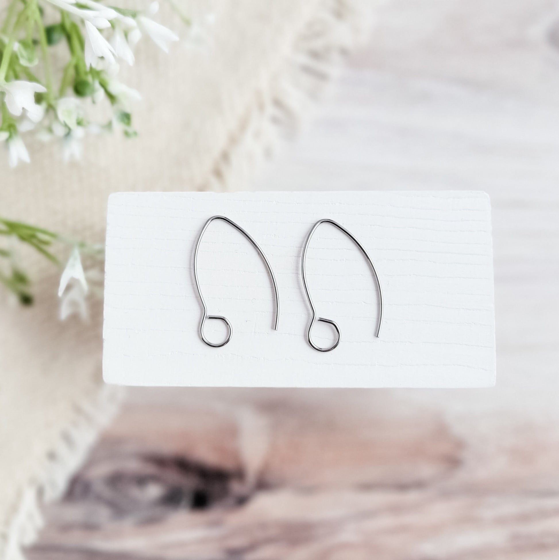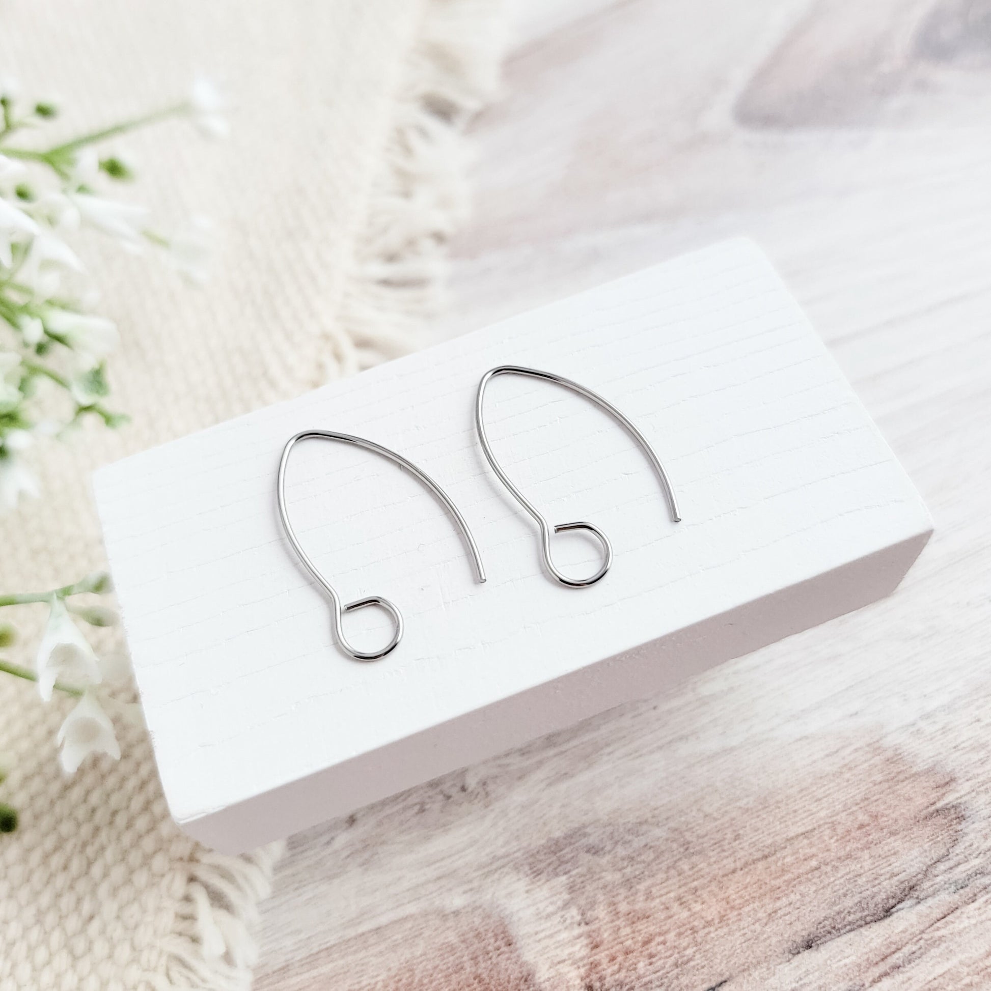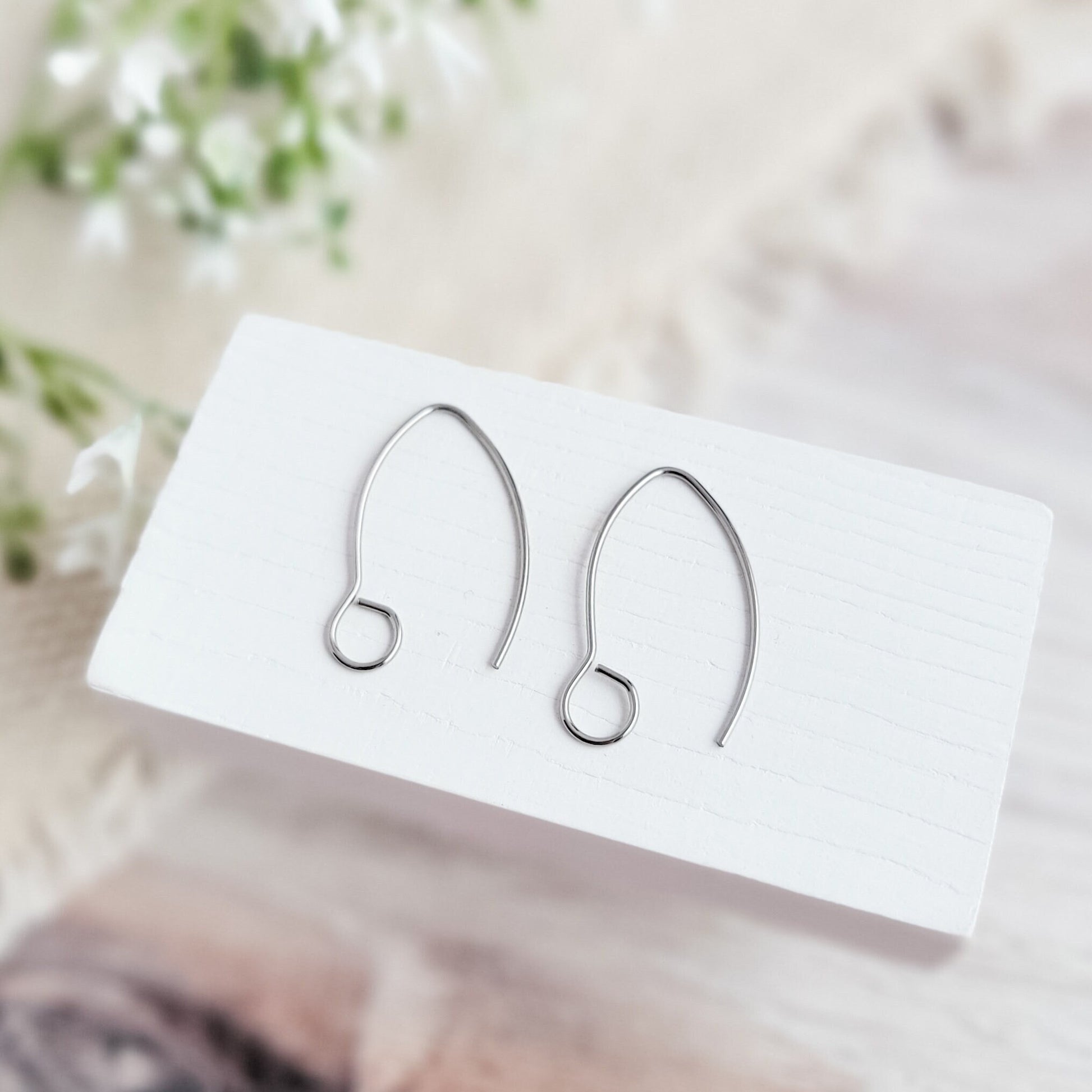 An edgier take on the traditional ear wire, these lovely surgical stainless steel large loop earring hooks from Monarch Pine Craft Supply feature a V drop shape and a bigger 5mm loop.