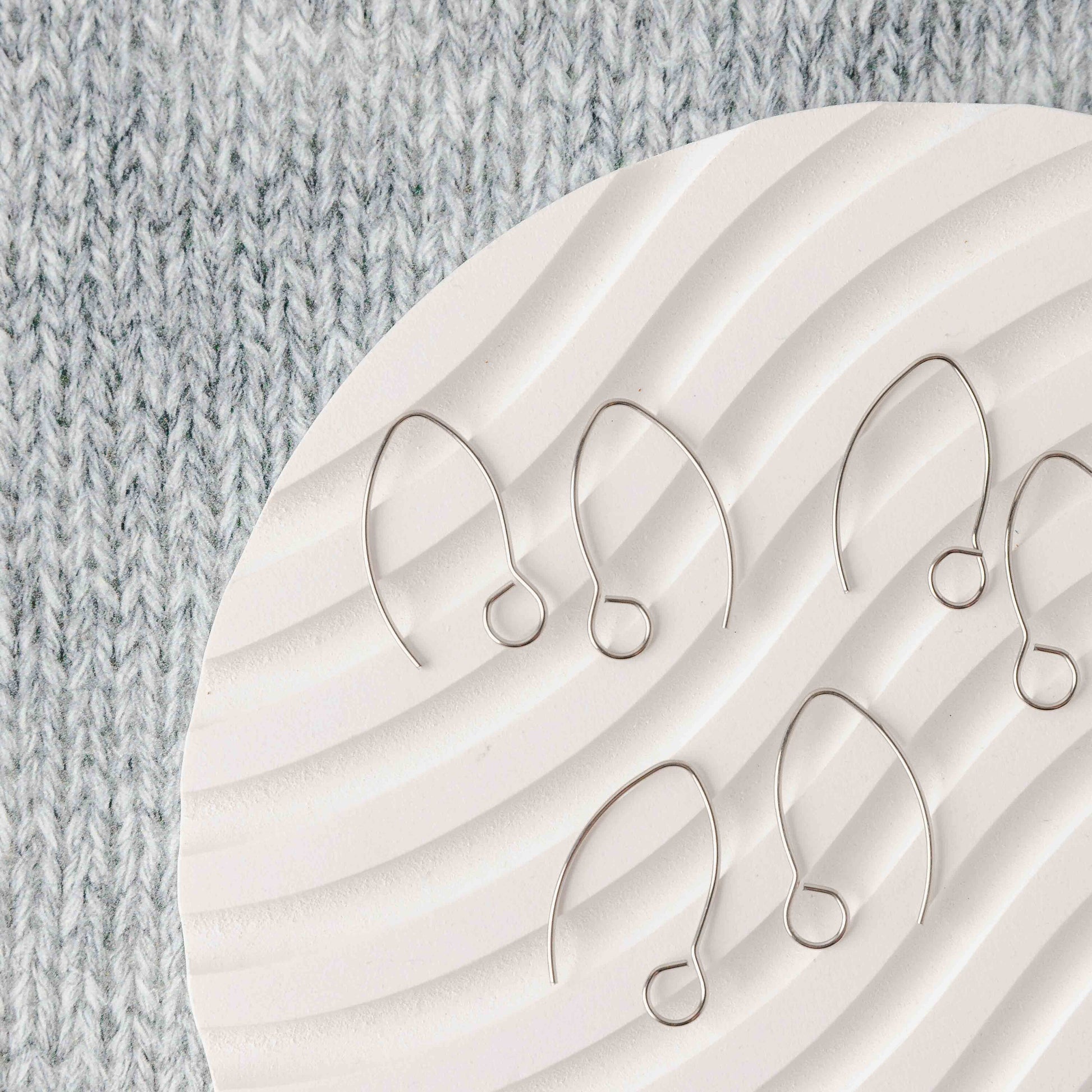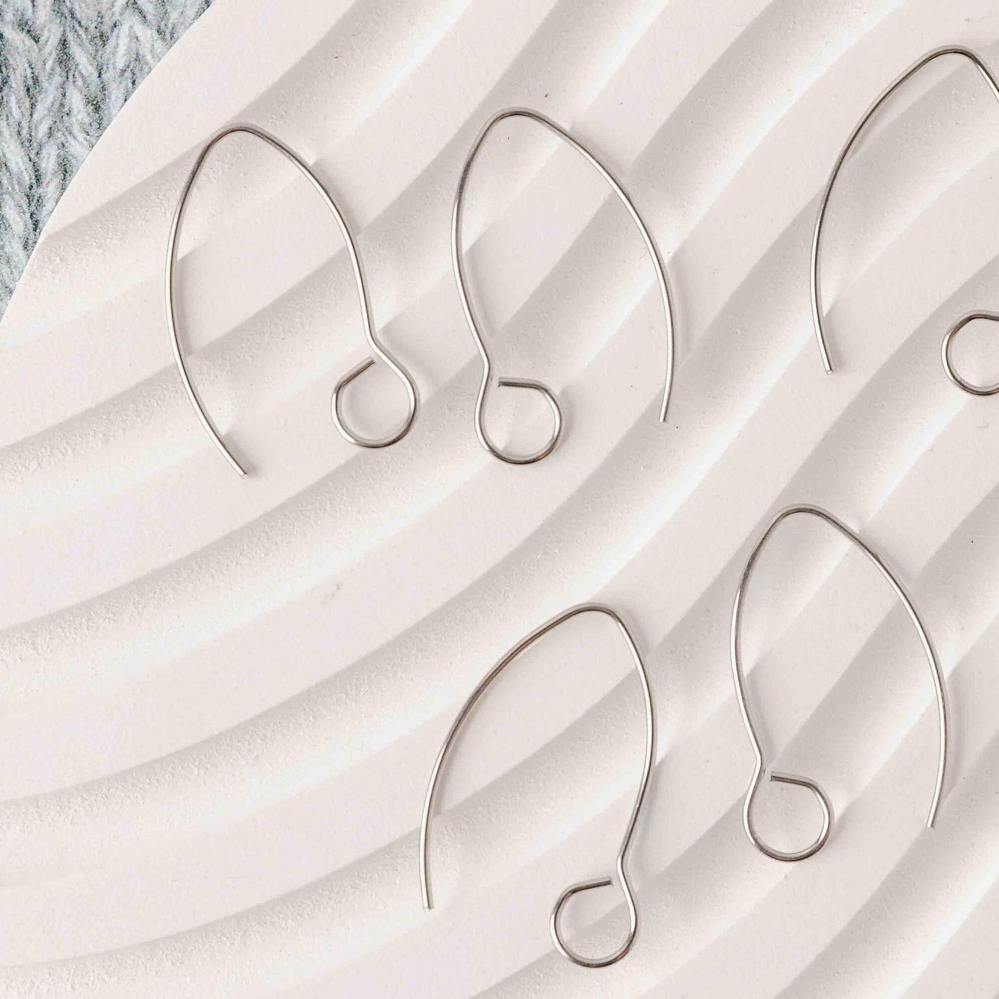 Silver Large Loop V Ear Wires (5mm Surgical Stainless Steel Marquise Hooks), 20 Pieces