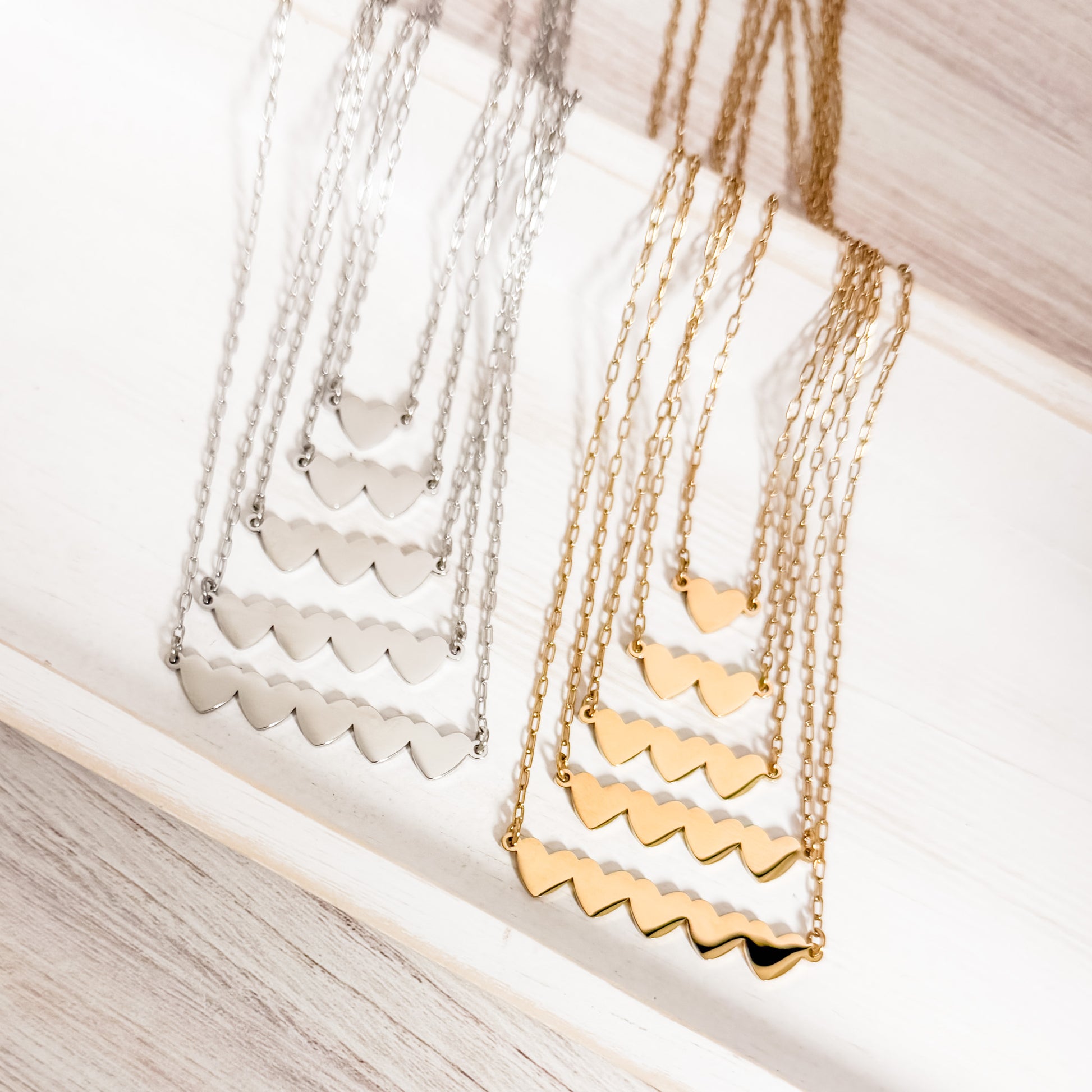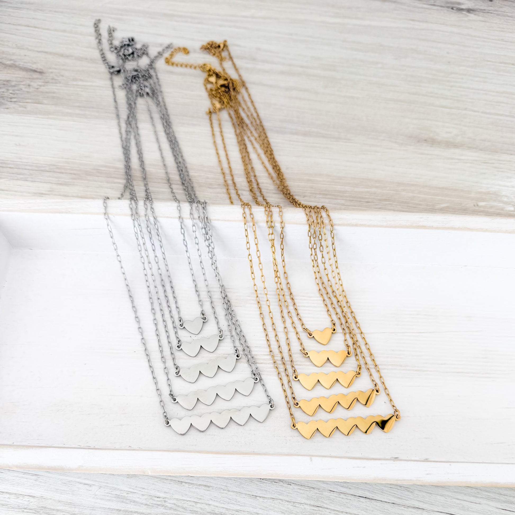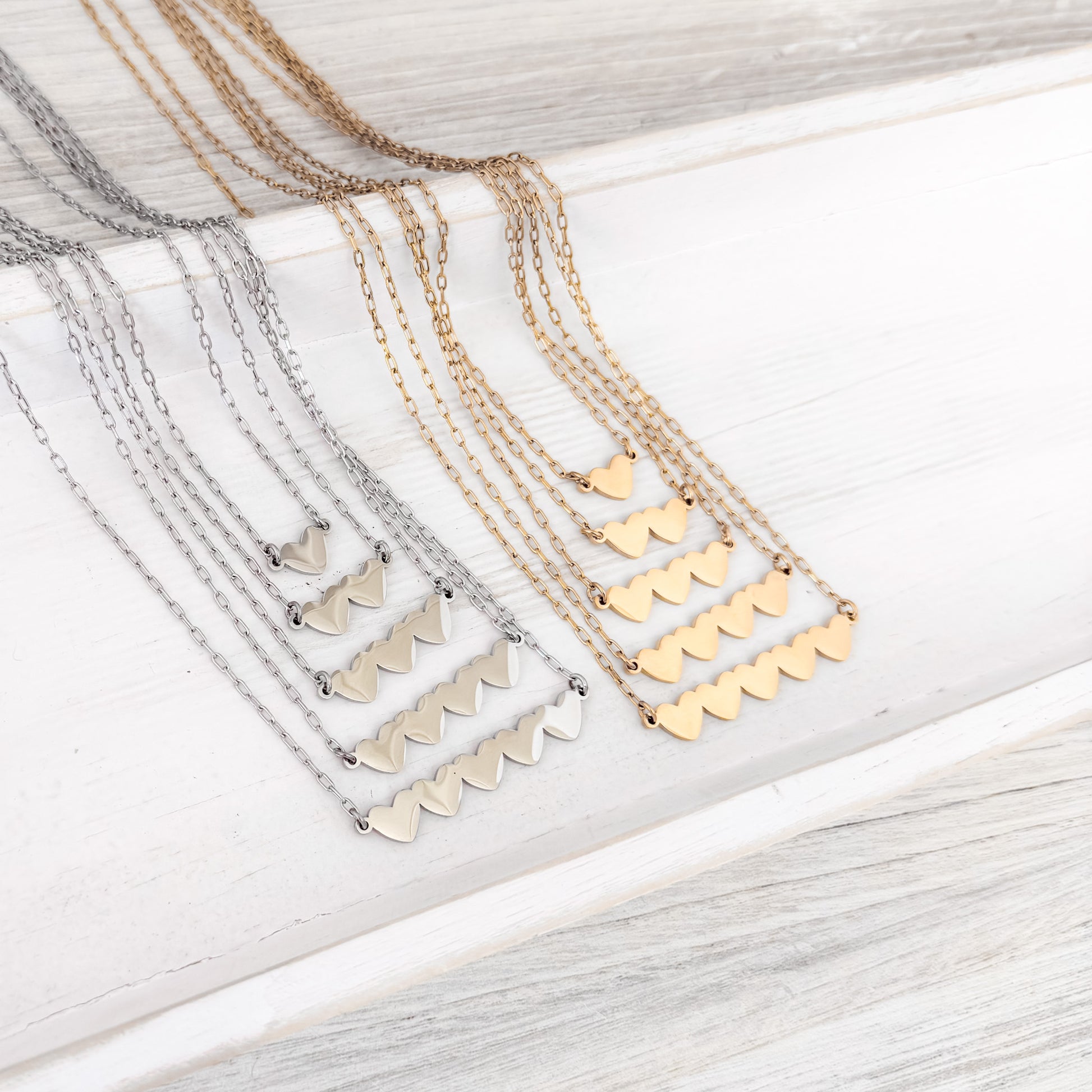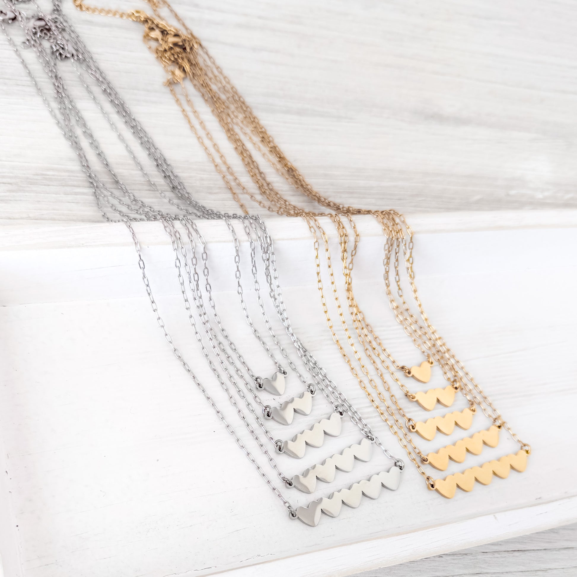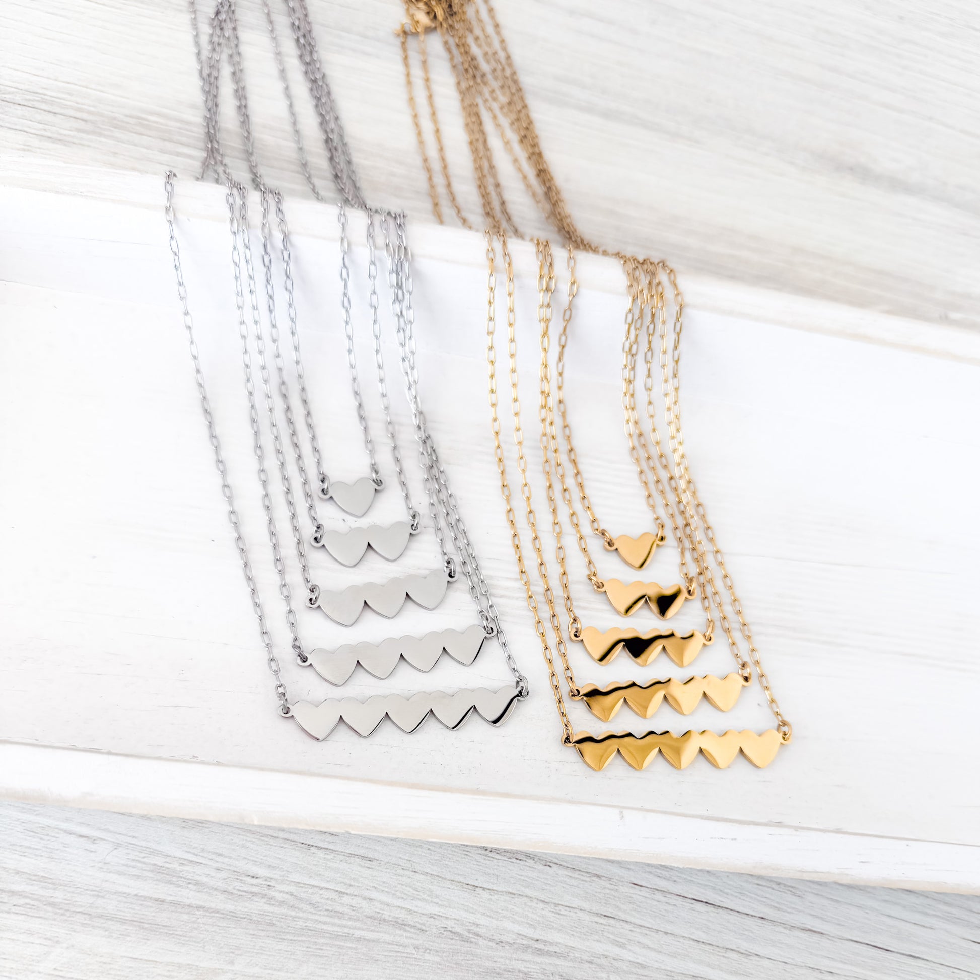Link Heart Necklace (1, 2, 3, 4, or 5 Hearts), 1 Necklace Total, Metal Blank #244