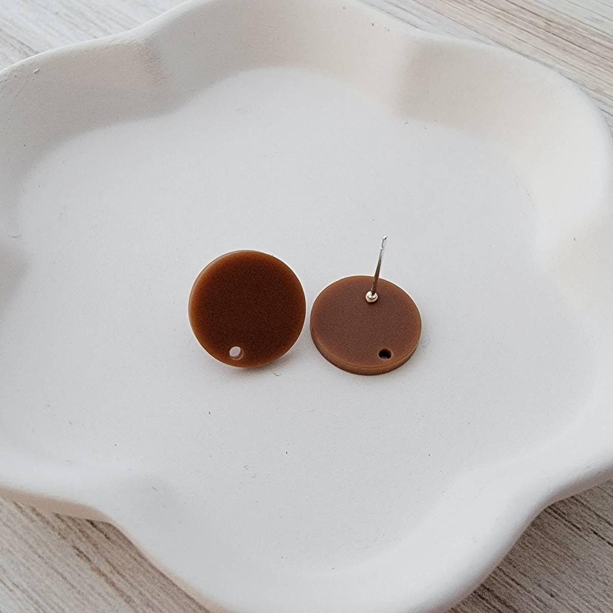 Matte Brown Acrylic Circle Stud Earring Findings (16mm), 10 Pieces, Acrylic Stud #14