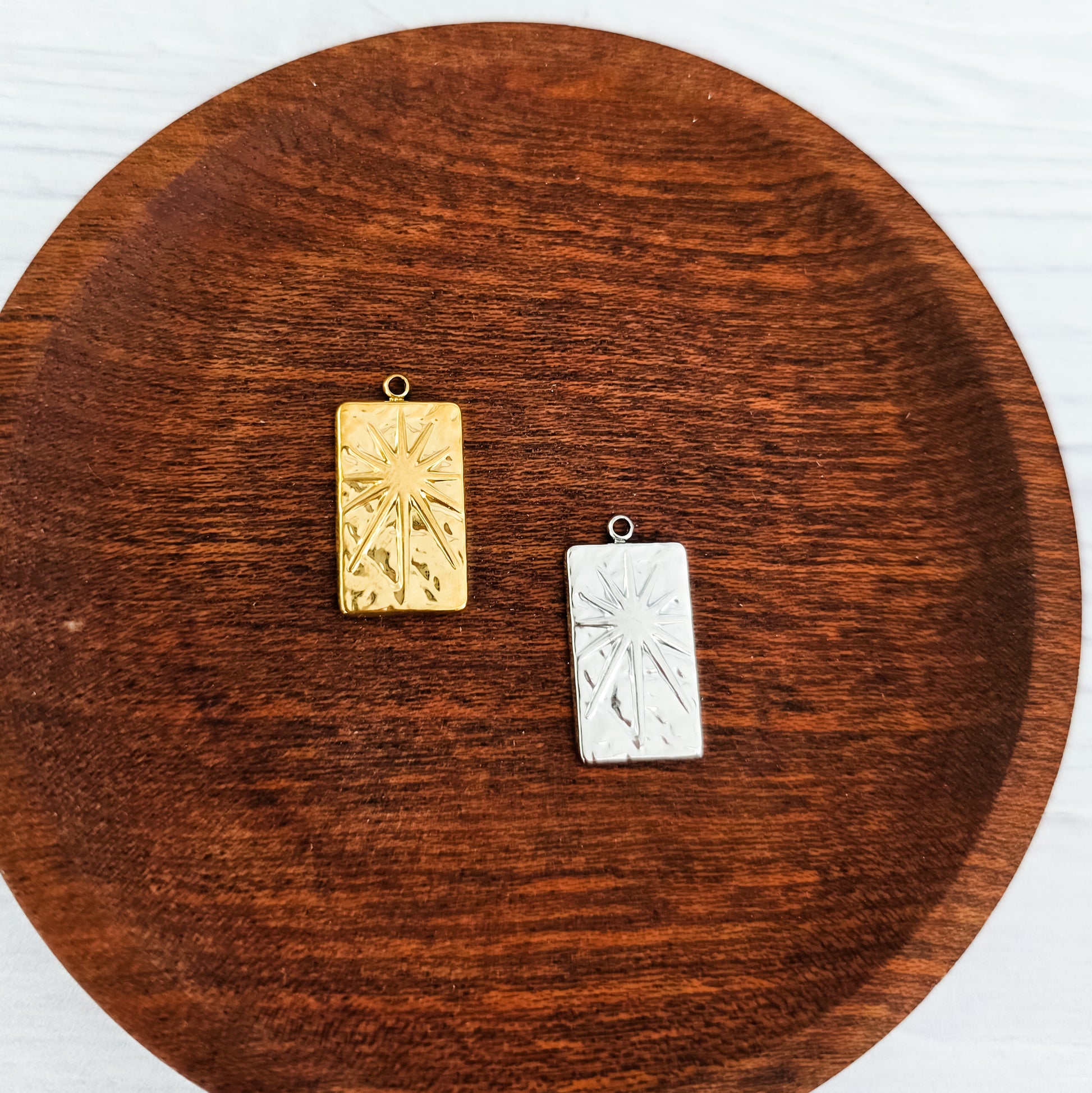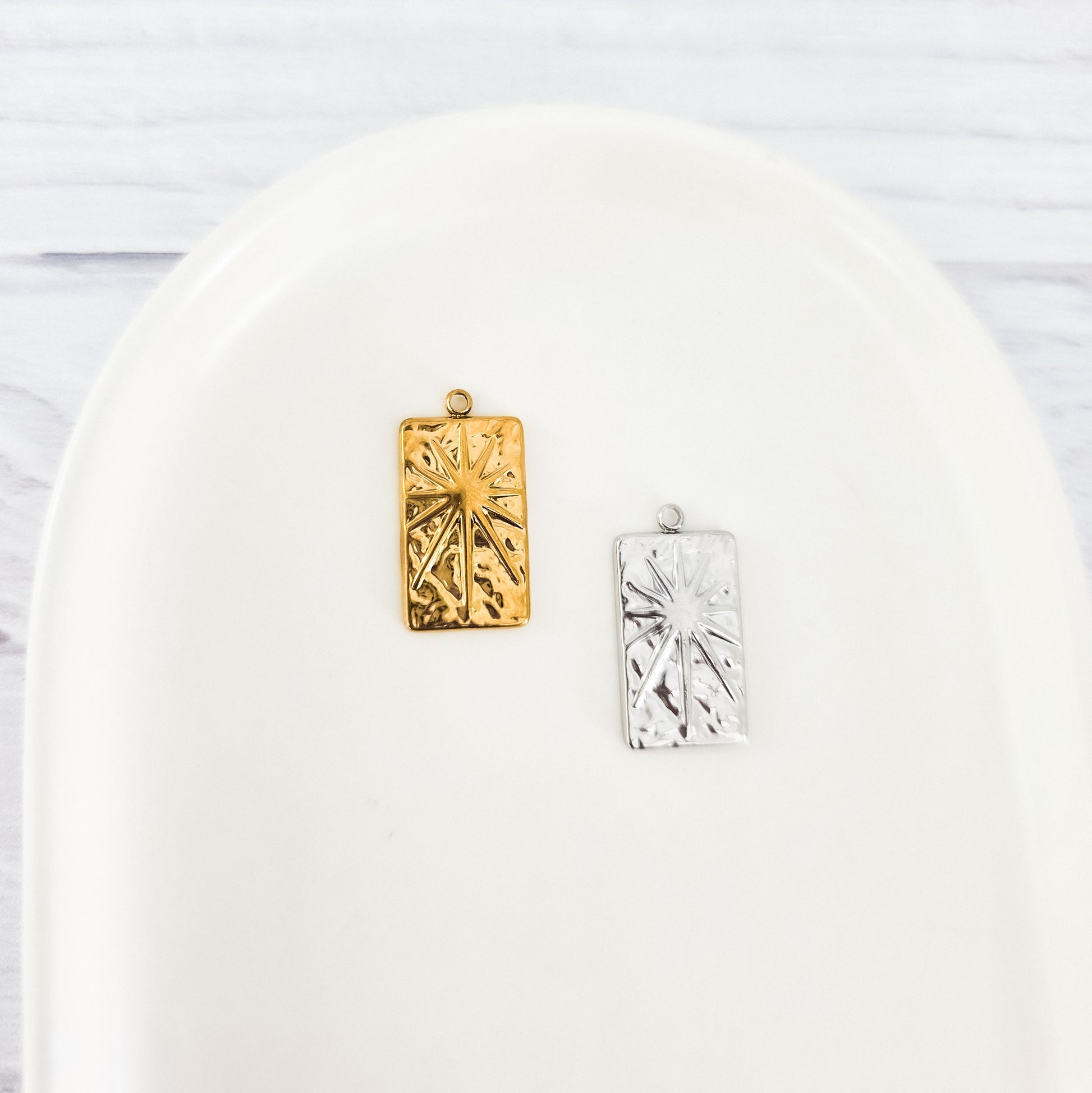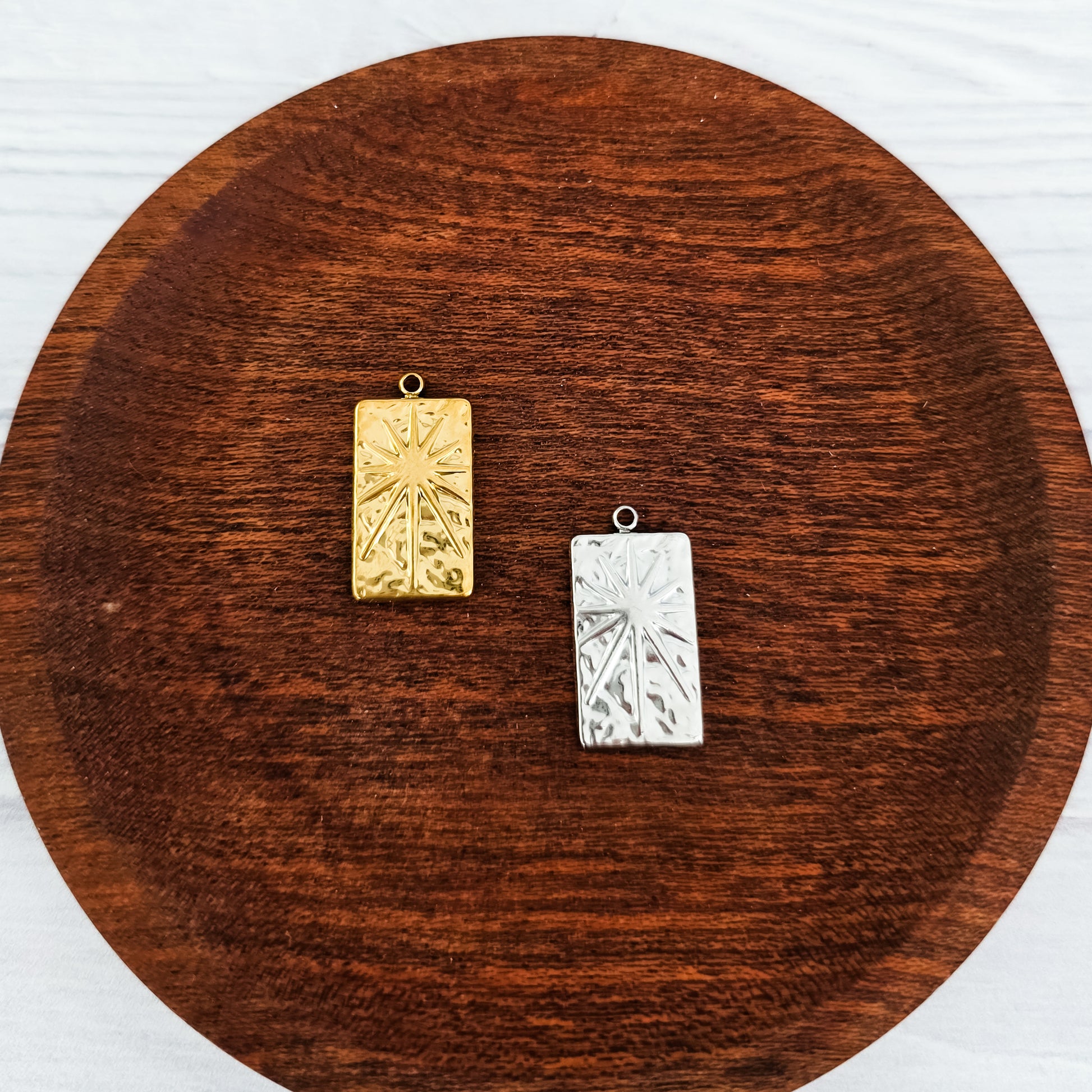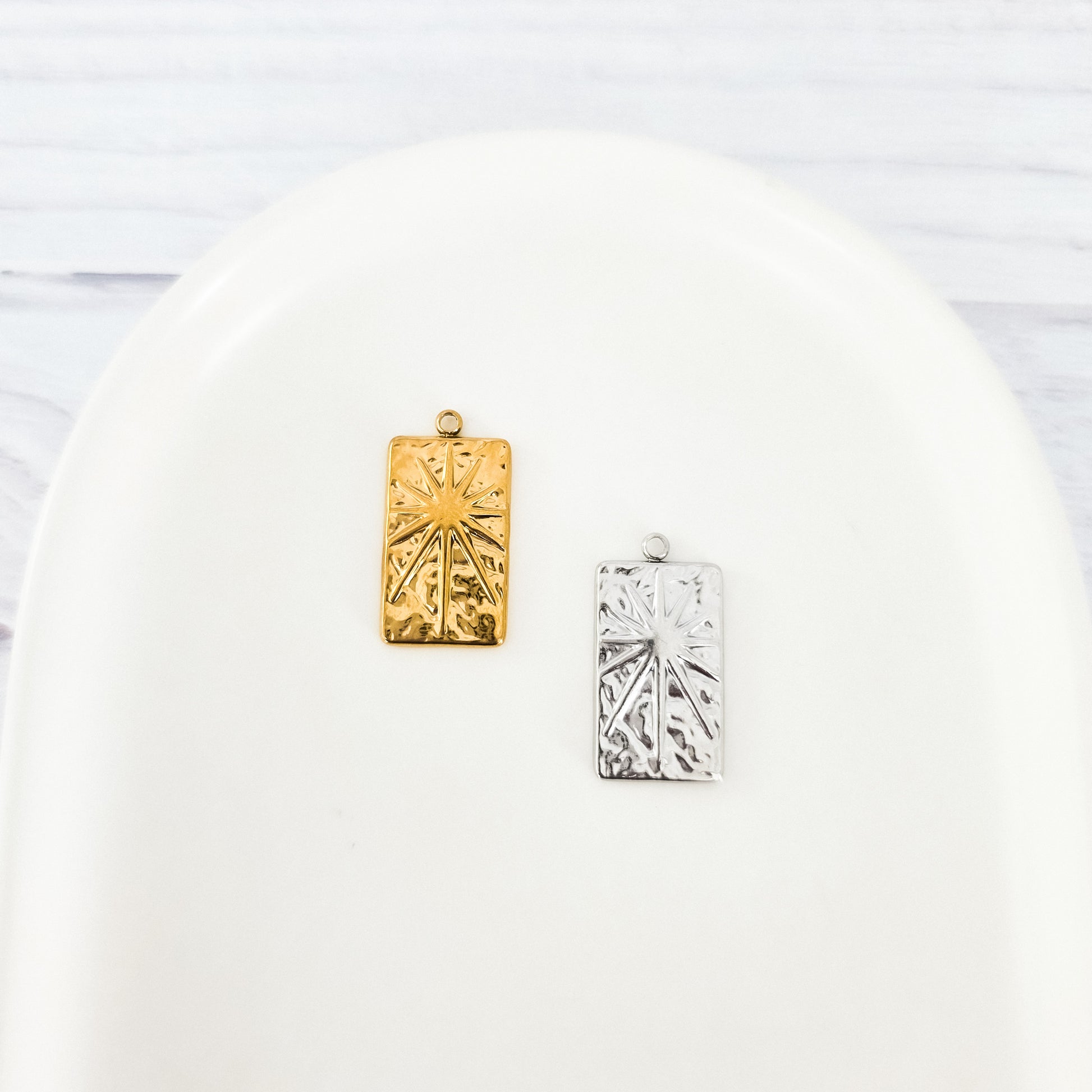 Medium Rectangle Sunburst Stainless Steel Charm (Silver or Gold), 10 Pieces, Charm #5