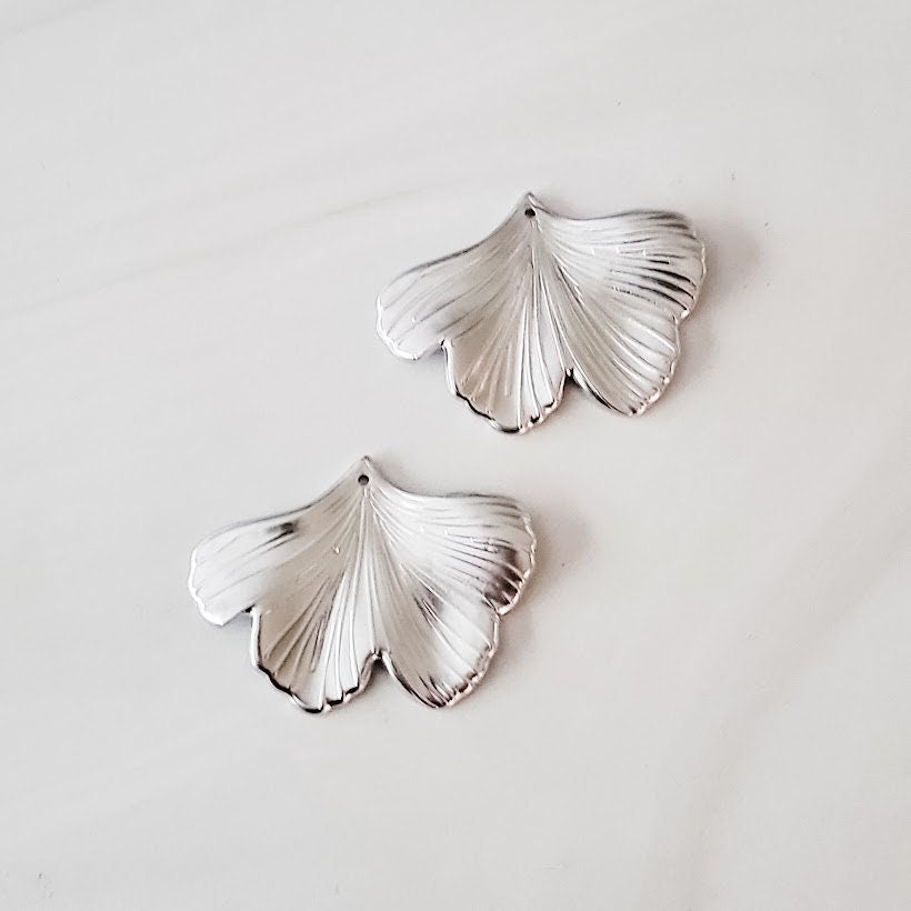 Metallic Silver Ginkgo Leaf Pendants, 10 Pieces, Ginkgo #28