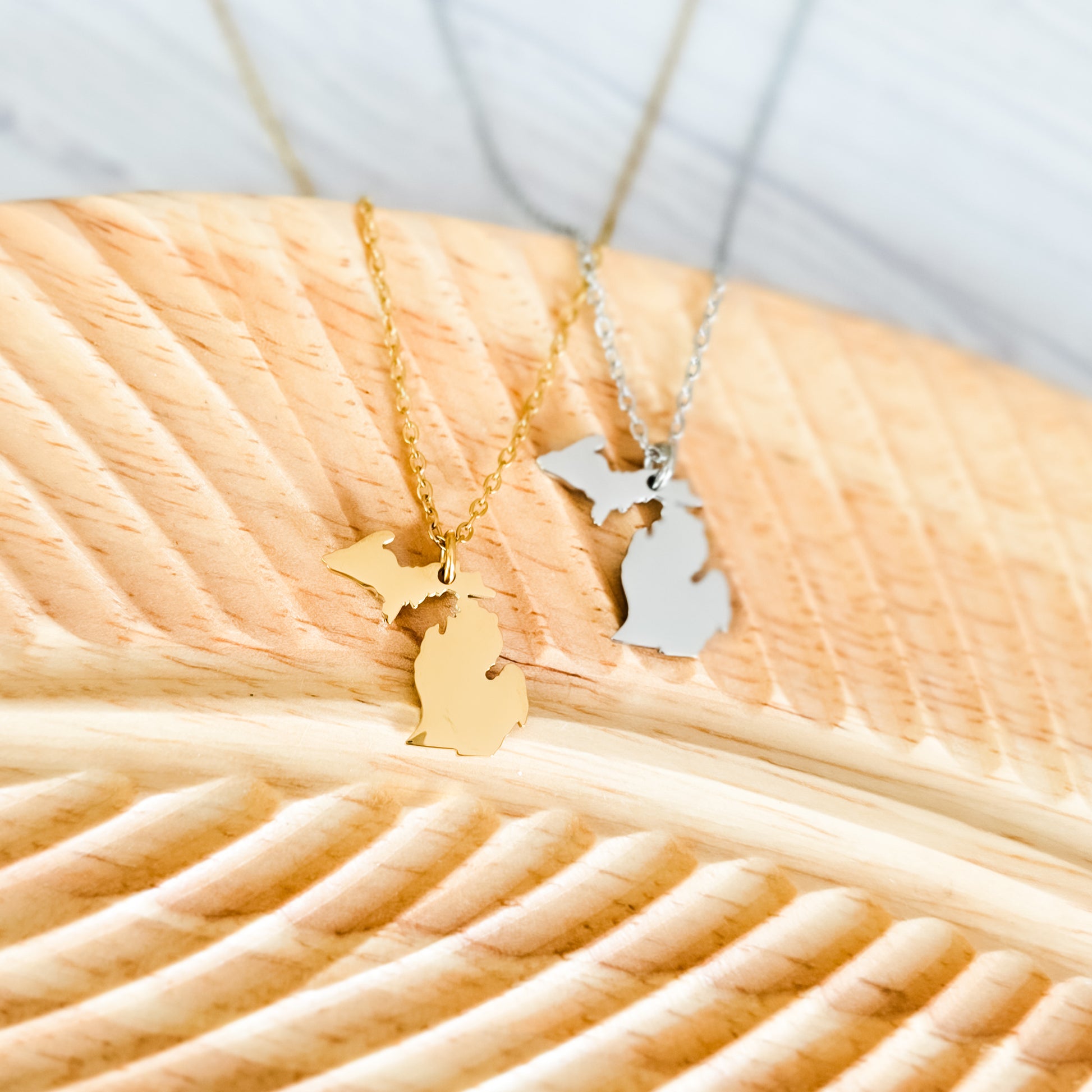 Michigan Pendant Necklace (Silver or Gold), 1 Total, Metal Blank #206