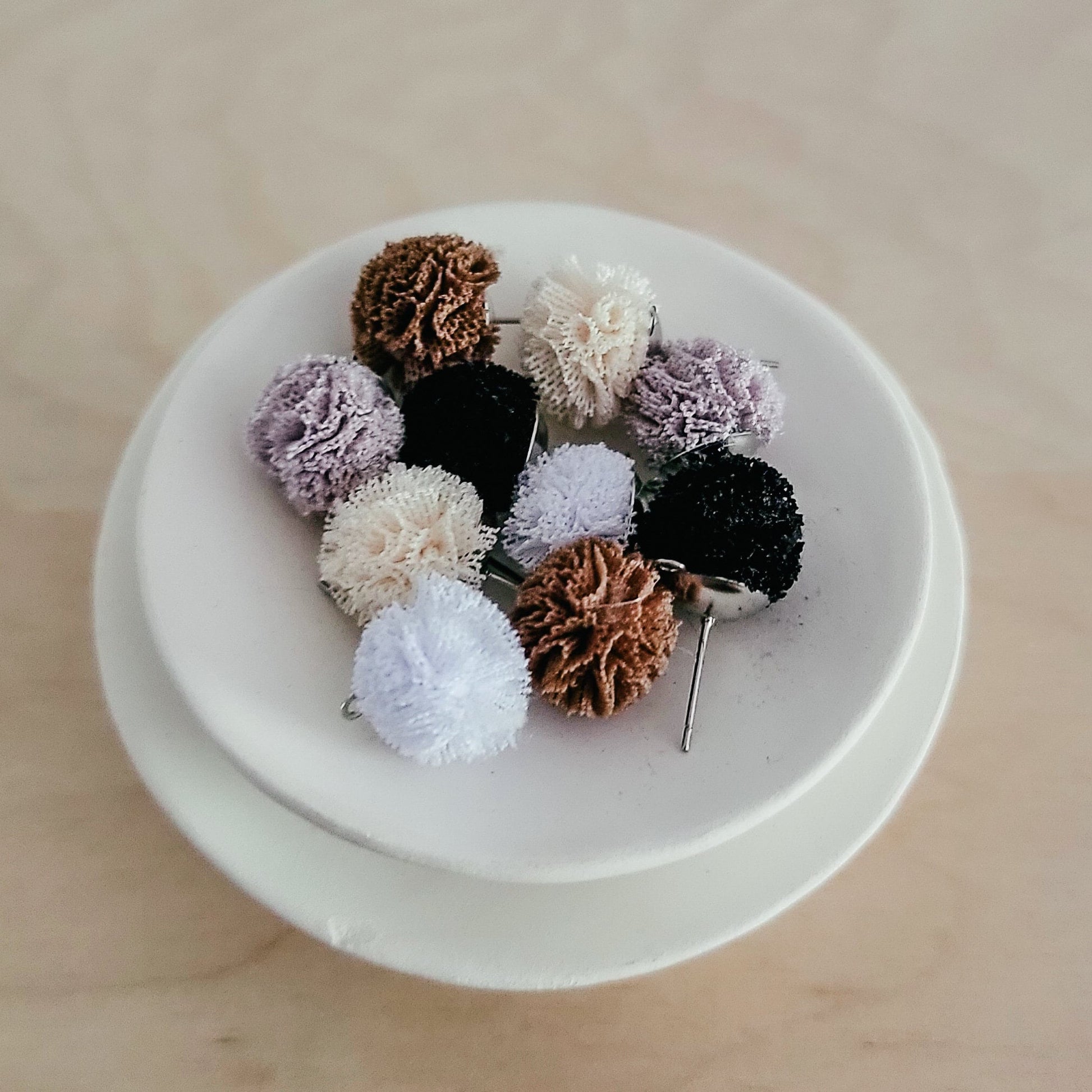 • Material: Lace pom poms, surgical stainless steel earring post/connector loop/base (100% stainless steel hardware)