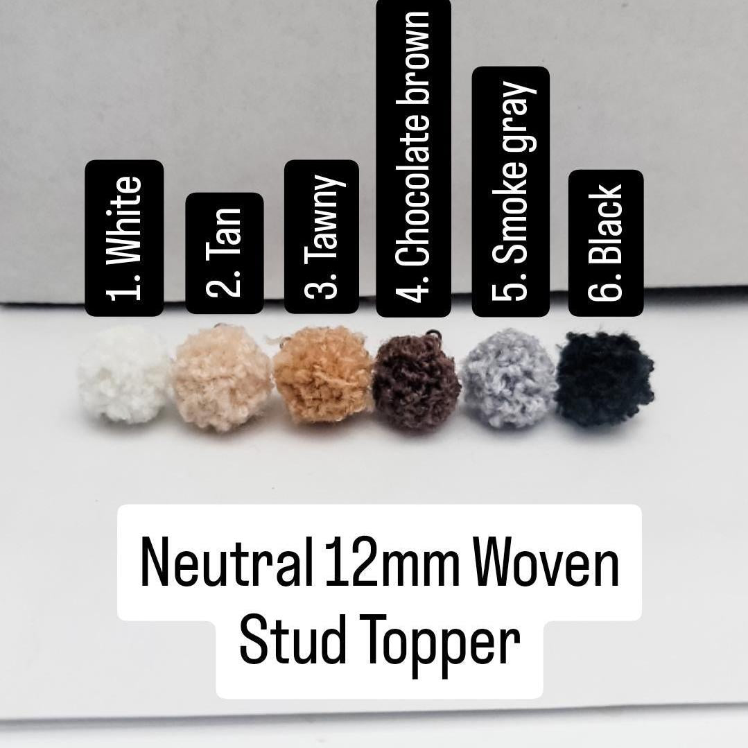 Neutral Woven 12mm Stud Topper (Choice of Color), 3 Pairs, Woven Topper #1-6