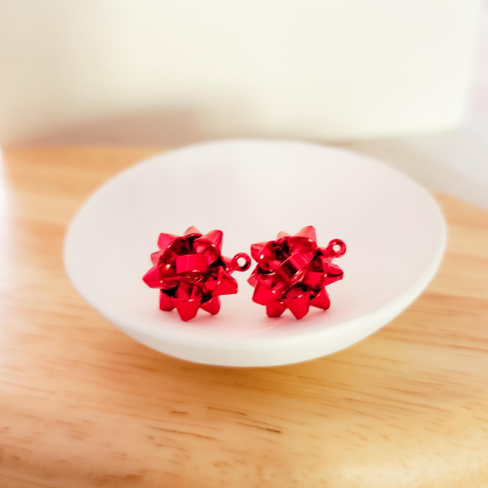 Bright Red Gift Box Stainless Steel Bow Stud Connector, 1 Pair, Bow #24