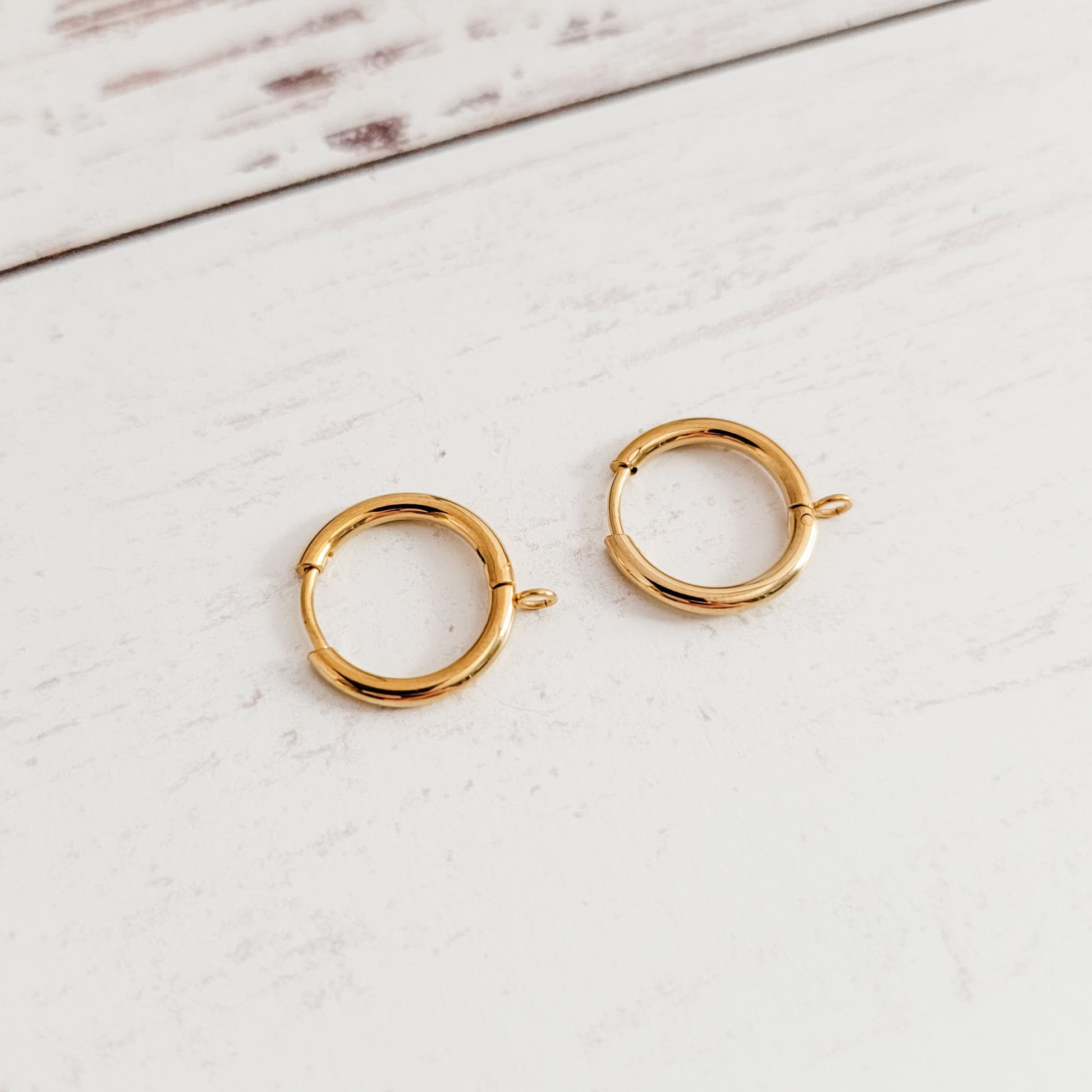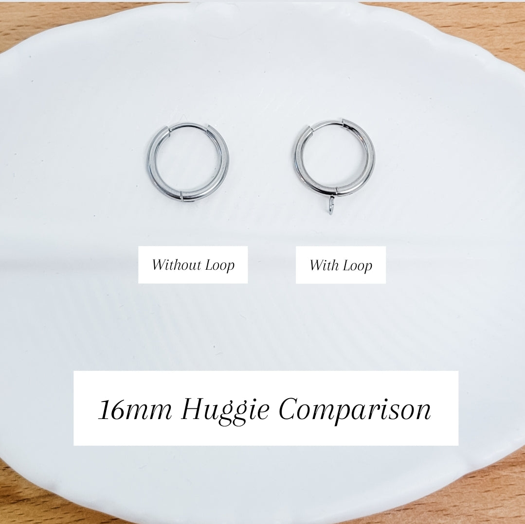 Gold 16mm Stainless Steel Huggie with Perpendicular Loop, 10 Pieces
