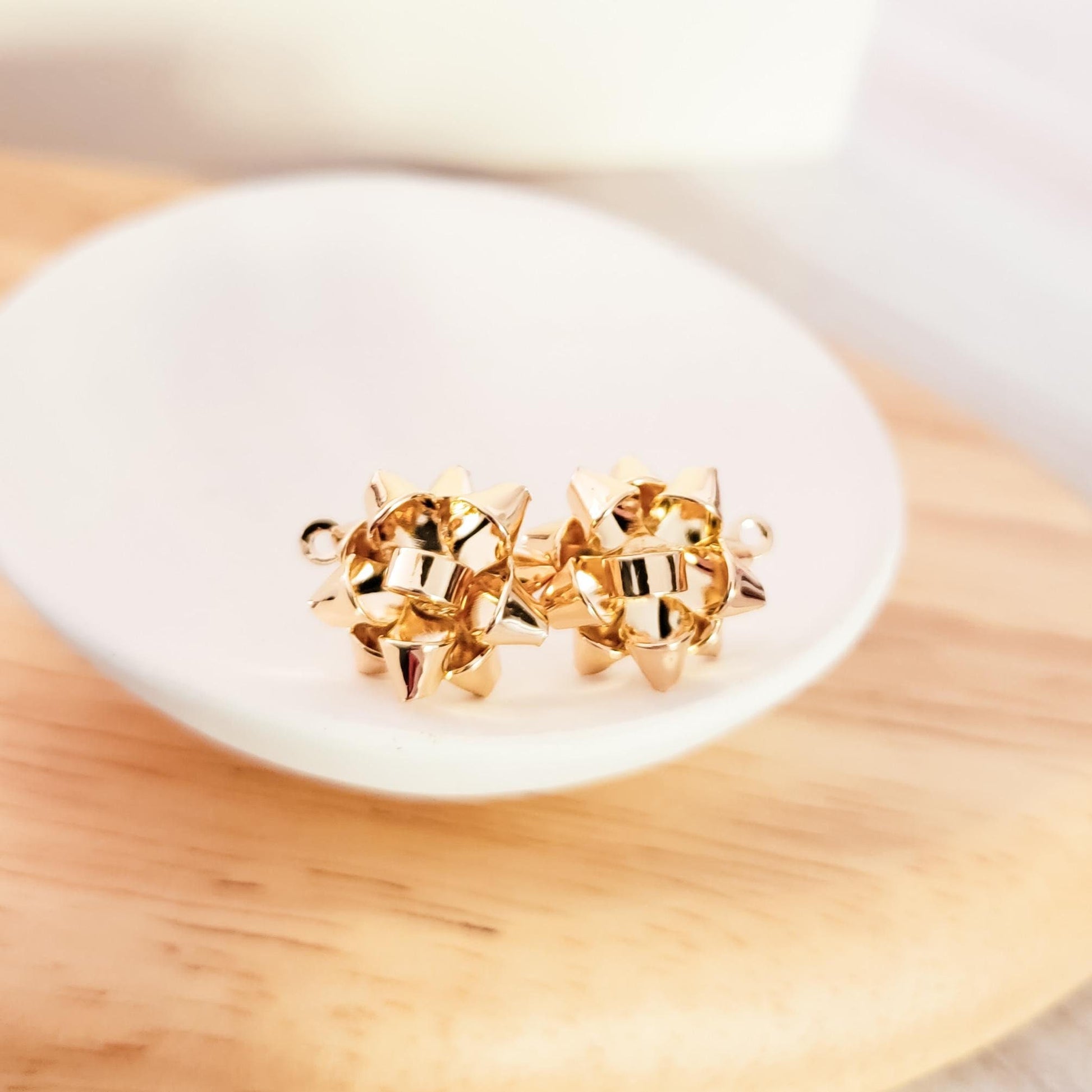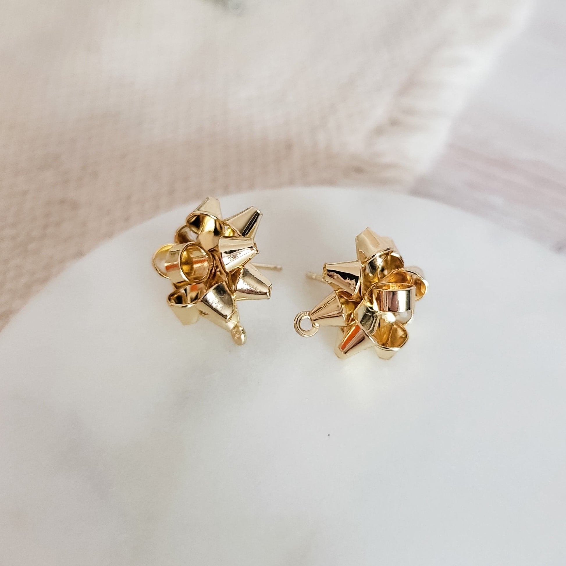Gold Gift Box Stainless Steel Bow Stud Connector, 1 Pair, Bow #21