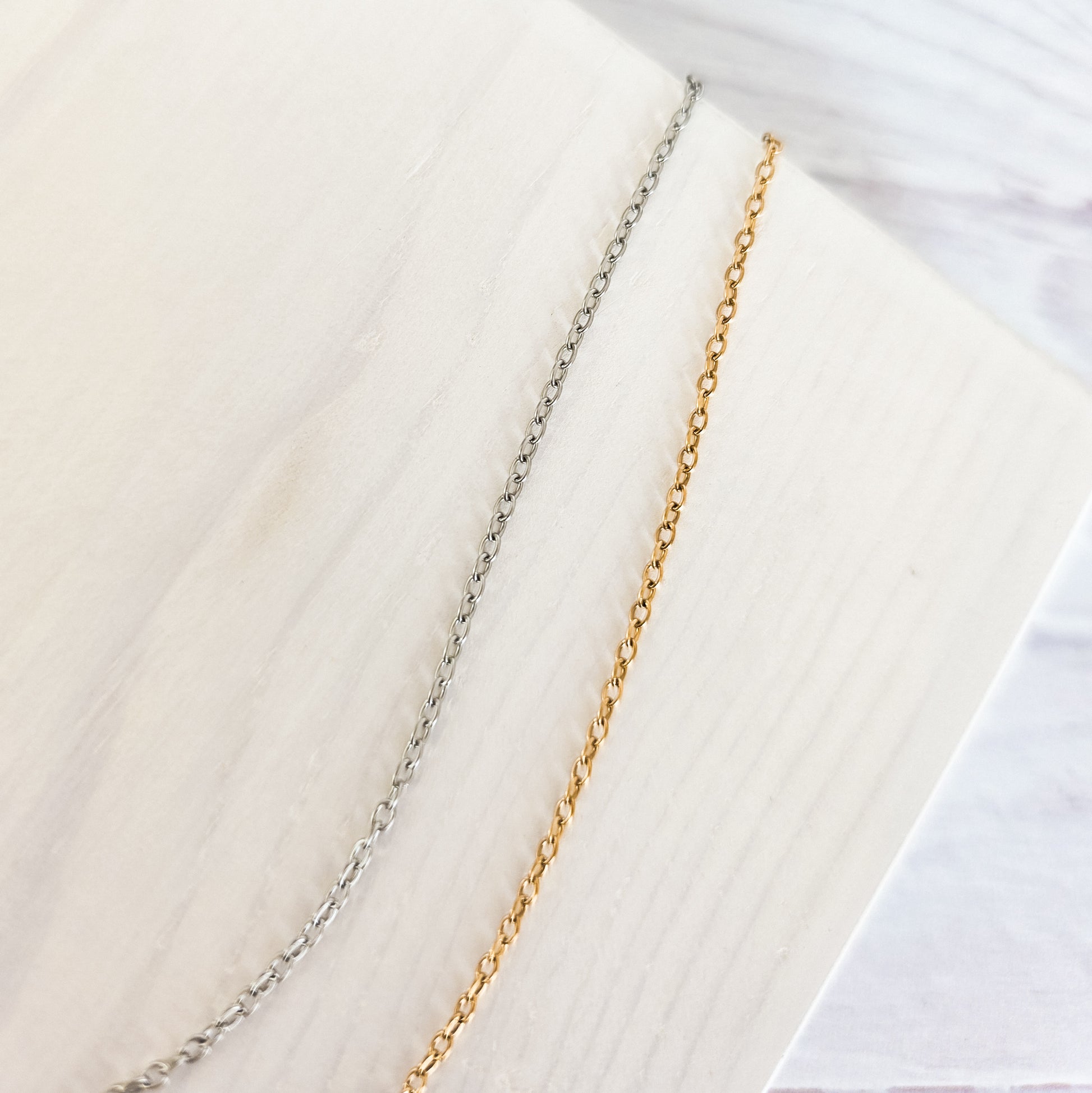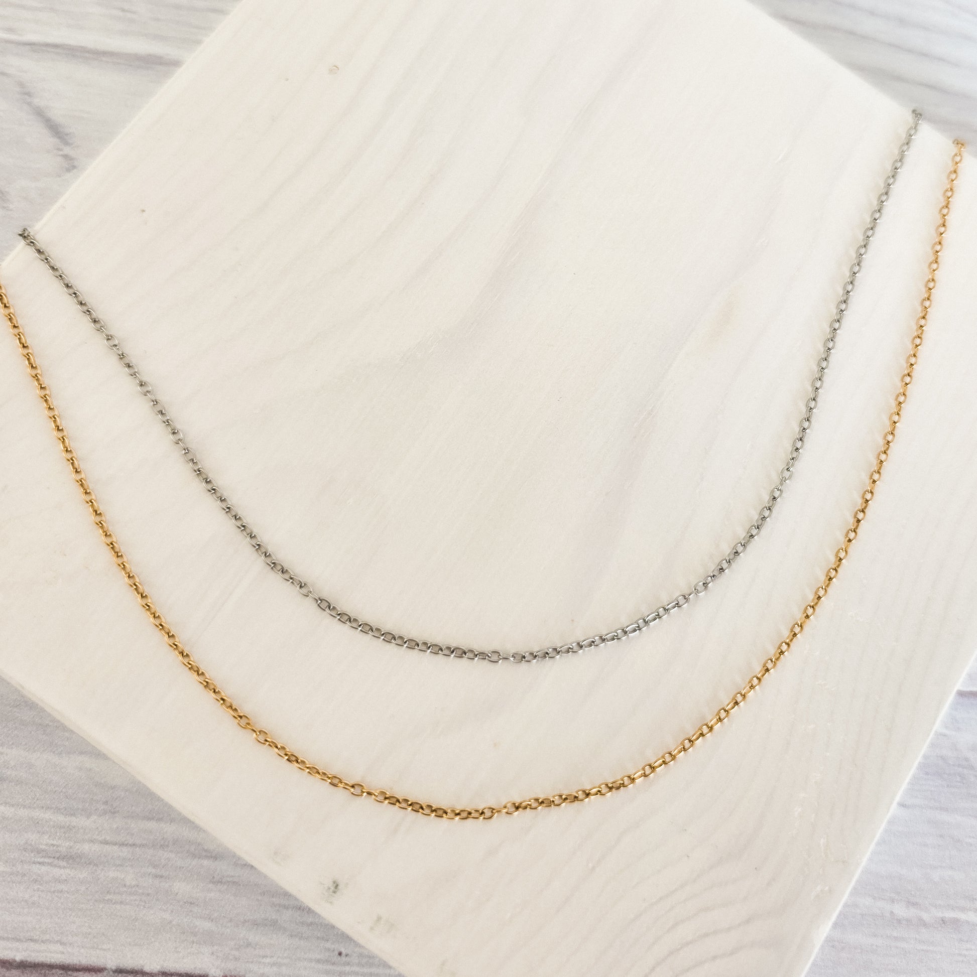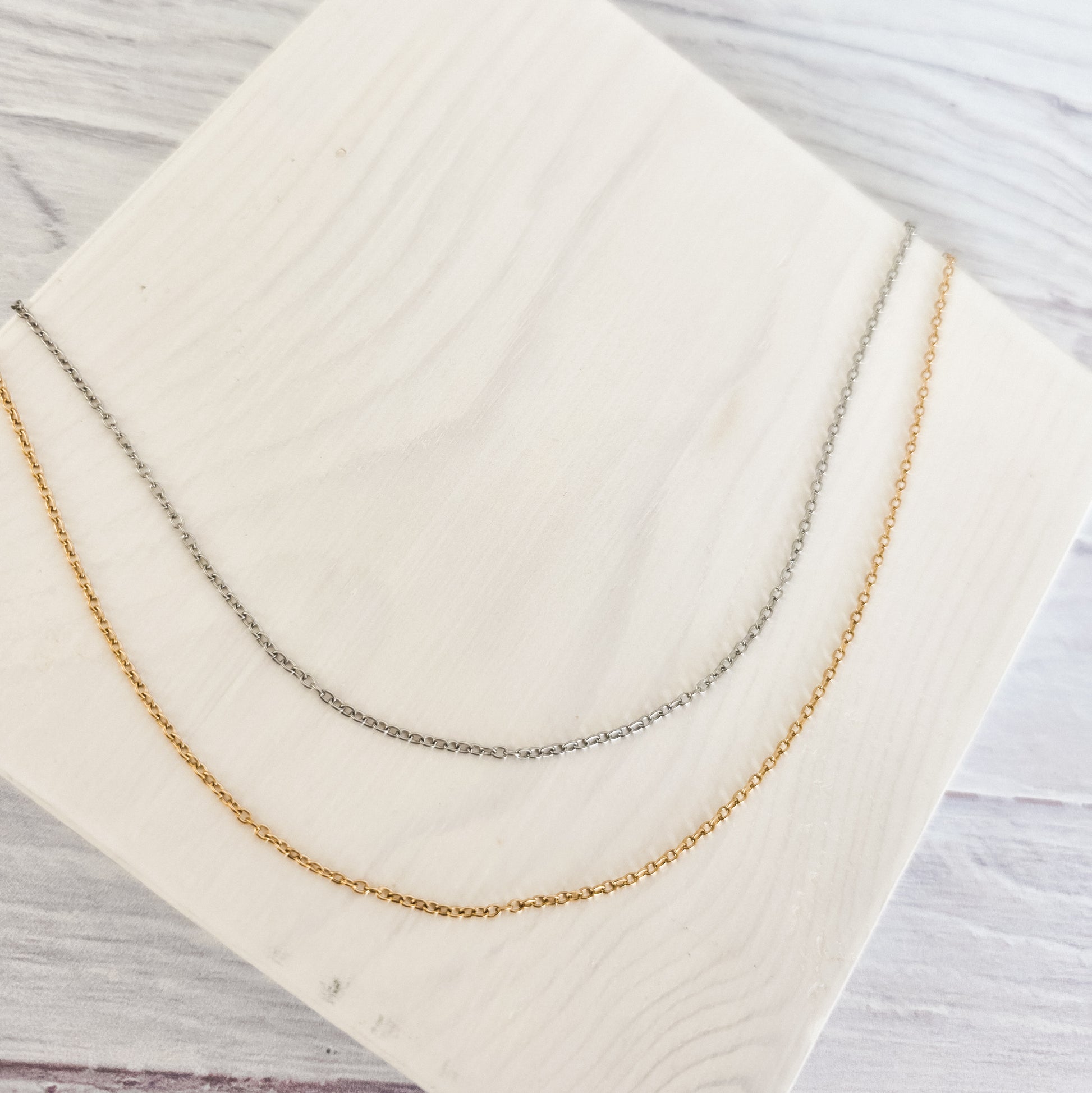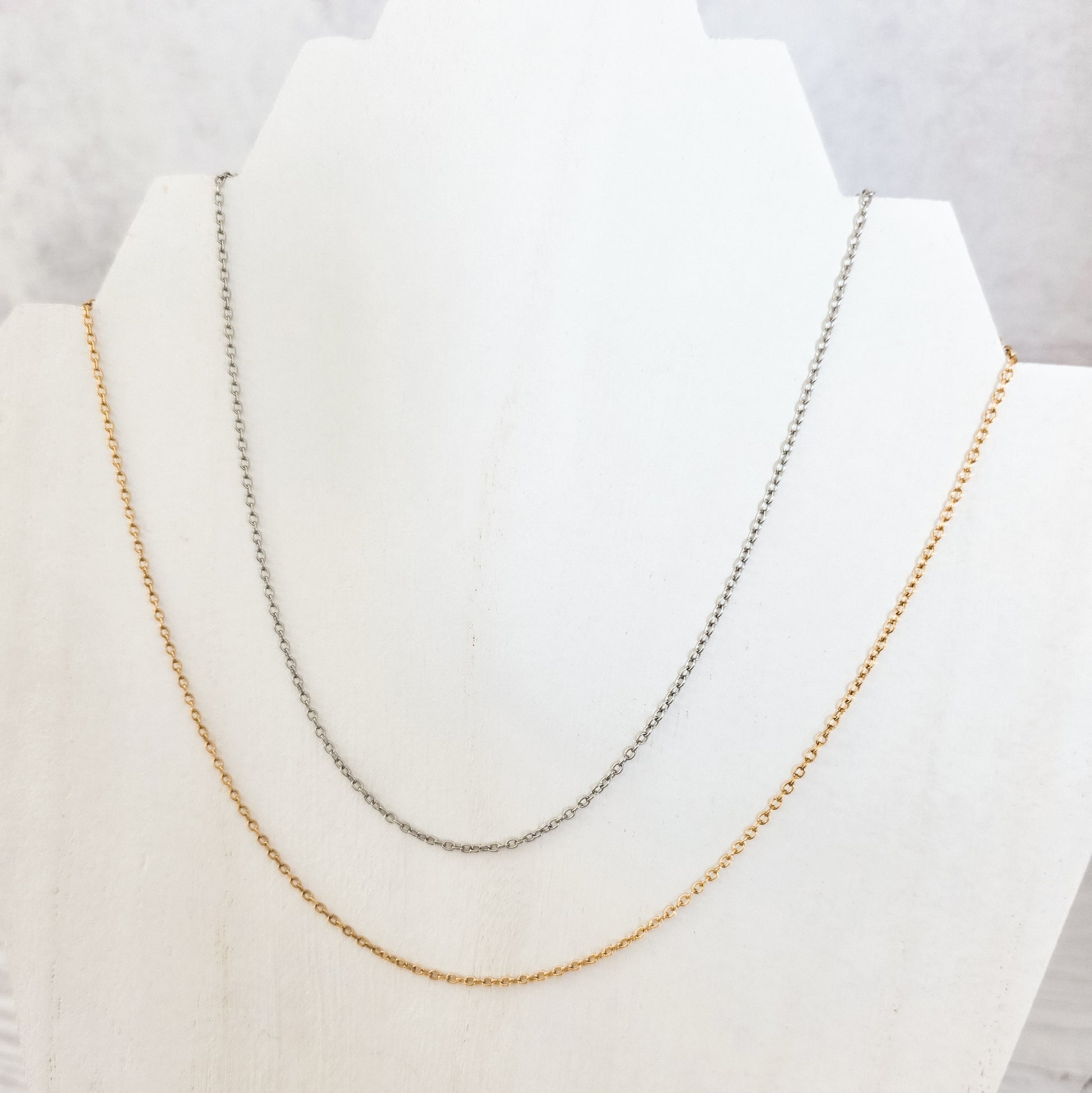 New Premium Full Minimalist Cable Chain Necklace Finding (Silver or Gold Stainless Steel), Pack of 5, Chain #29