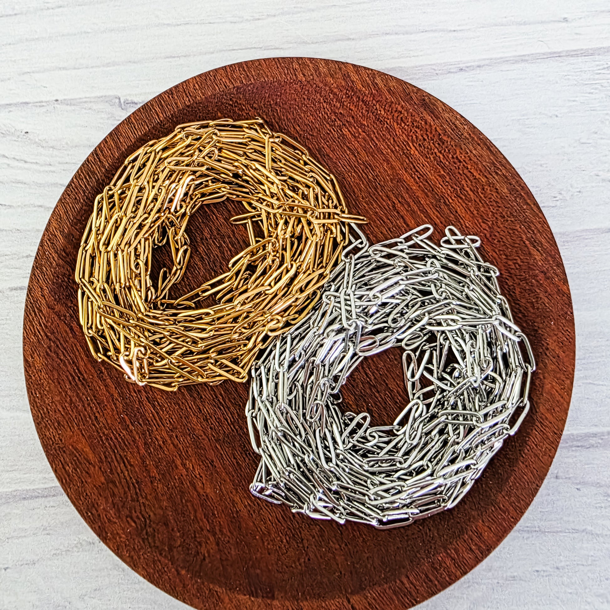 New Premium Spool Paperclip Chain Finding (Silver or Gold Stainless Steel), 3m (9.84ft), Chain #17