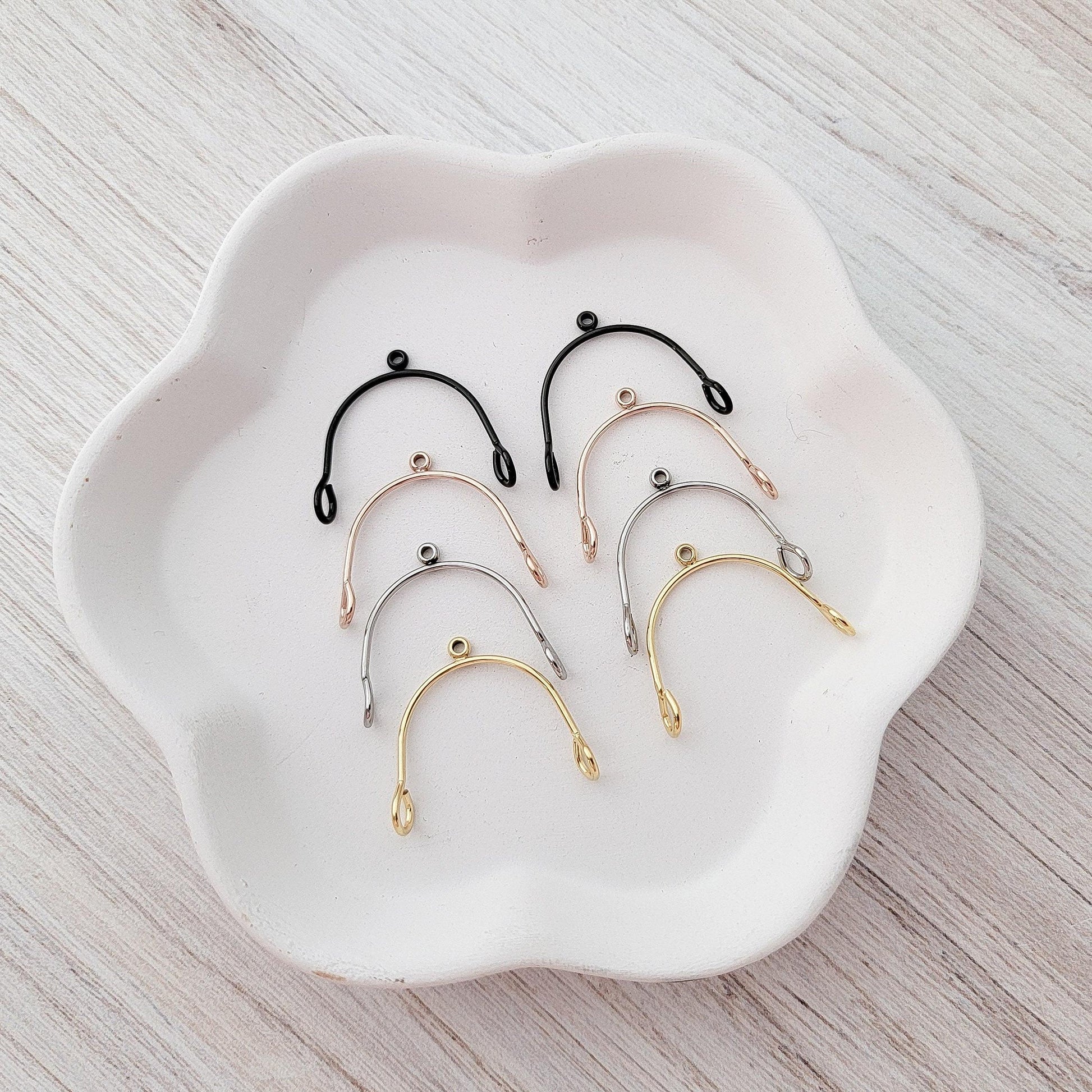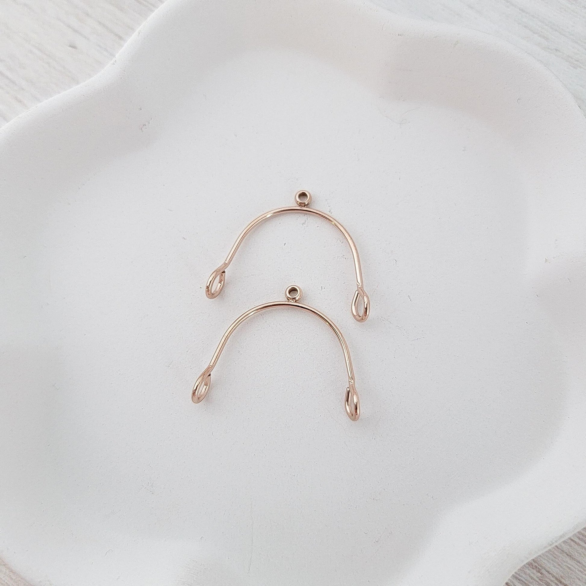 Sturdy and beautiful, these rose gold stainless steel arched earring connectors from Monarch Pine Craft Supply are the perfect finding to elevate your DIY earrings. Plated with real 24k gold on surgical stainless steel, these findings are hypoallergenic and tarnish-resistant, featuring a gorgeous shine that is nonfading.