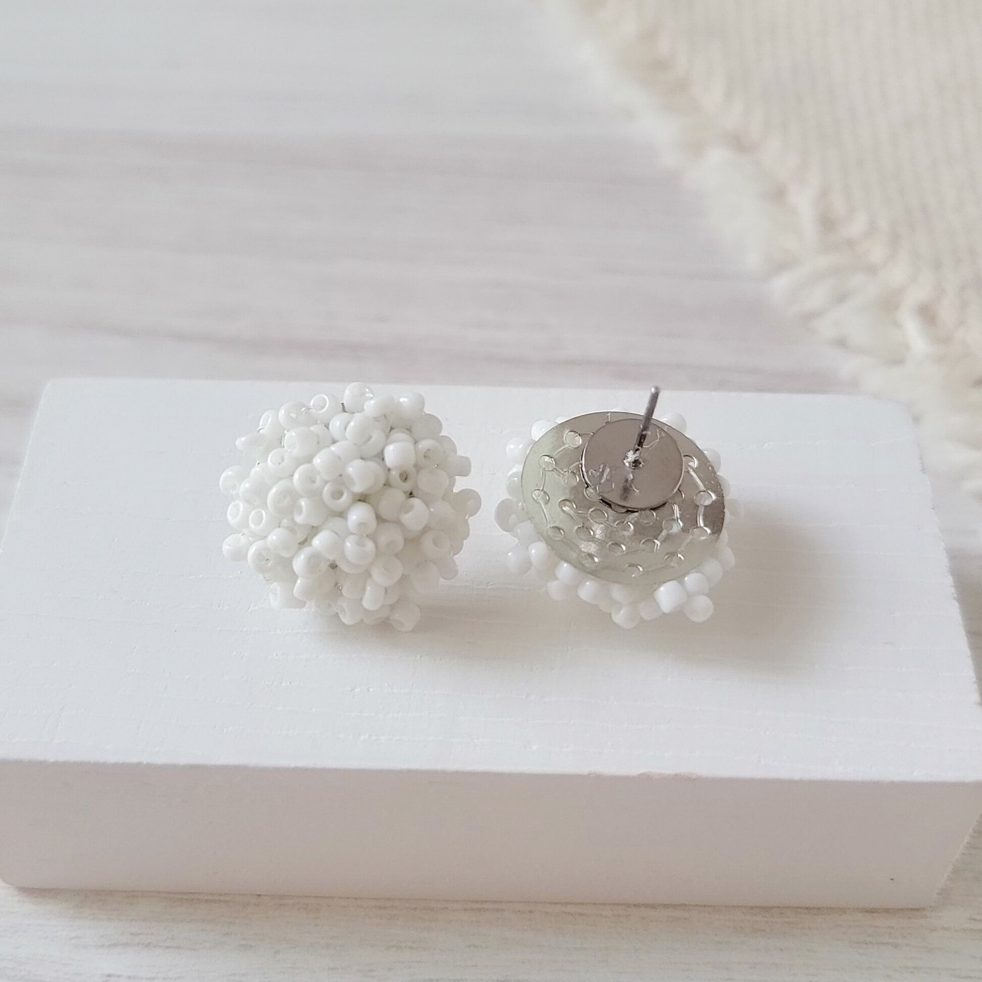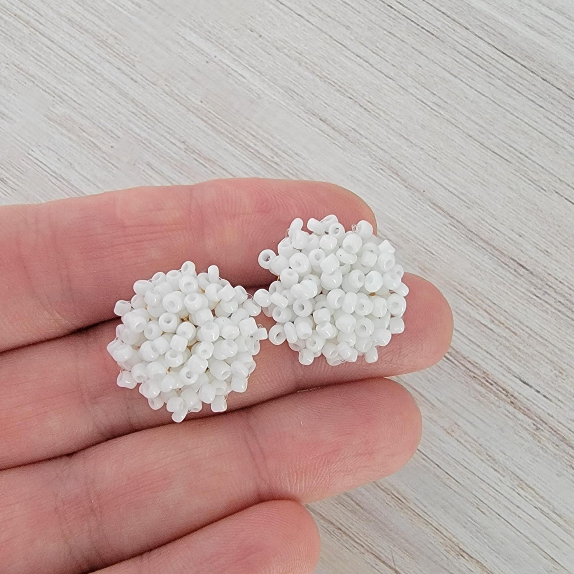 Seed bead stud toppers are perfect to pair with team earrings, acrylic, wood, leather, and more! Use them alone, or simply link a jump ring through the hole in the beading dome that lines up with the post. This listing is for 2 individual pieces (1 pair).