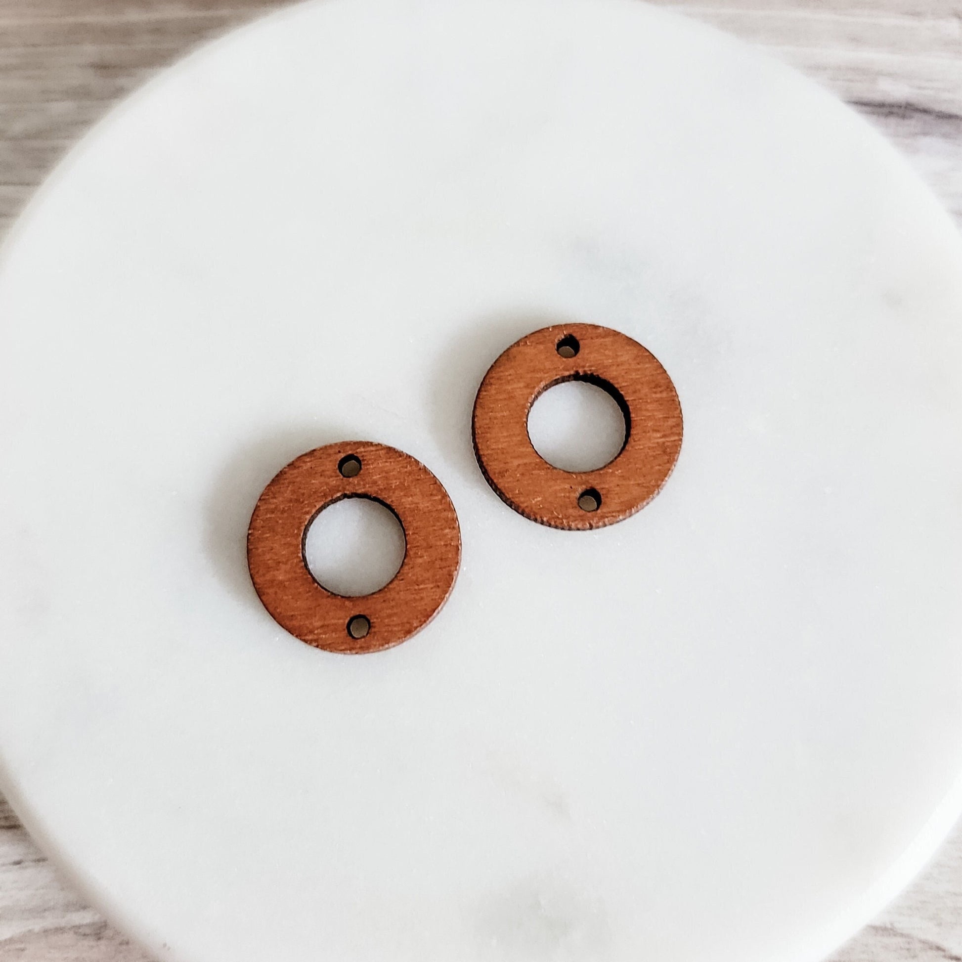 Open Circle 2-Hole Walnut Wooden Connectors, 10 Pieces, Wood #51