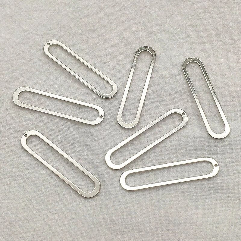 Silver Open Elongated Oval Connector, 10 Pieces