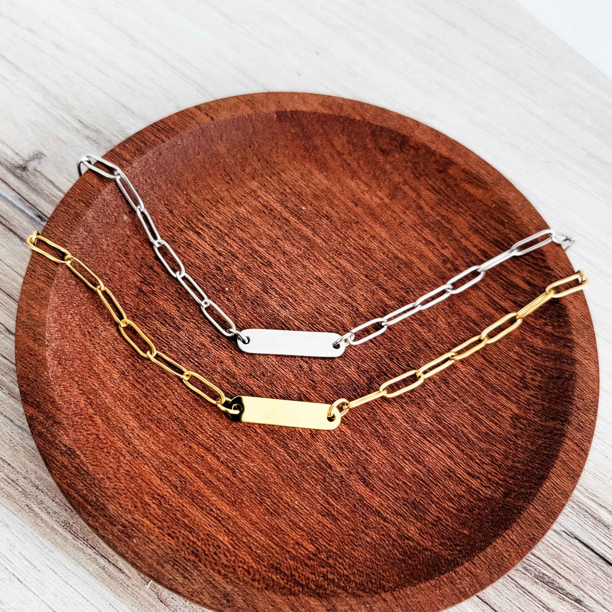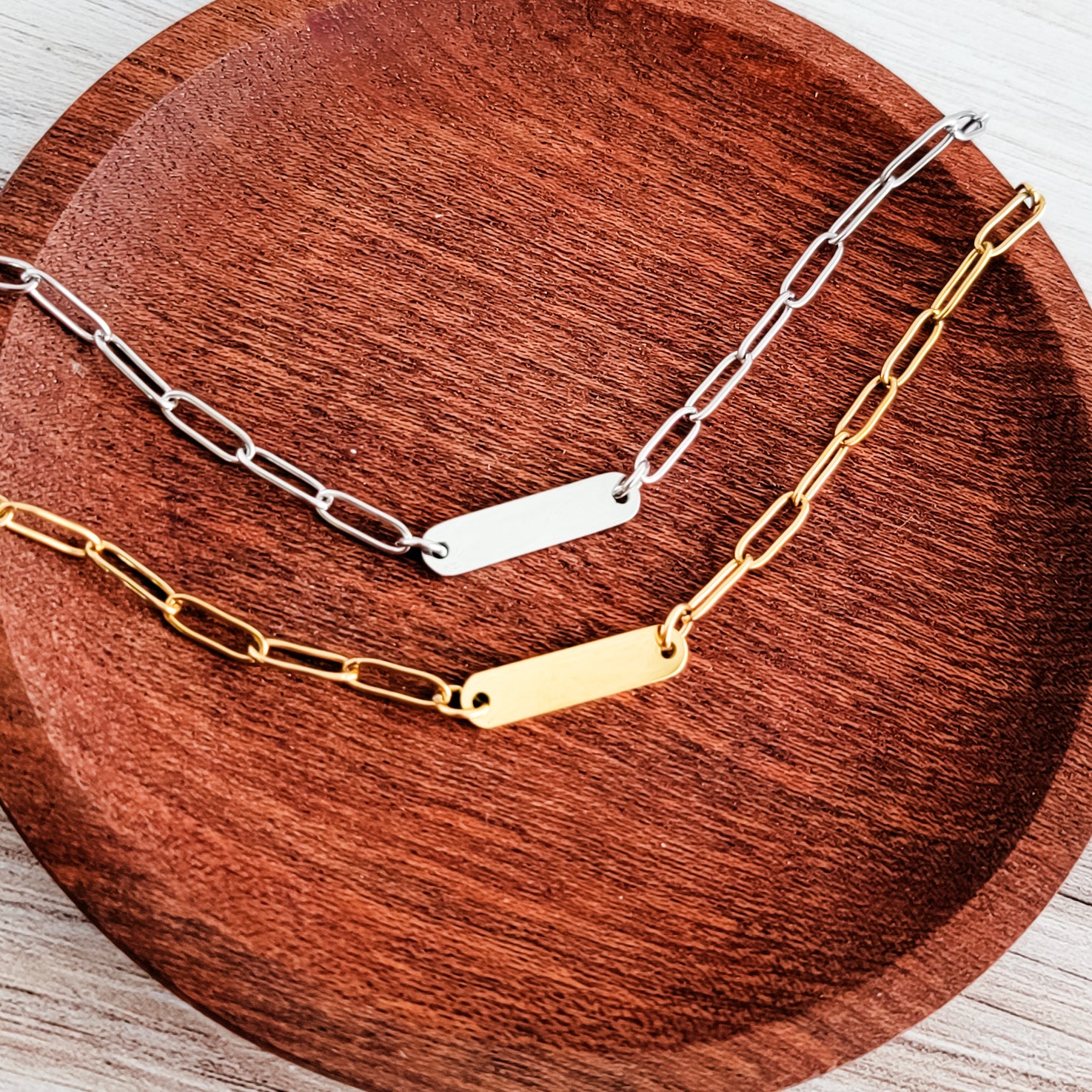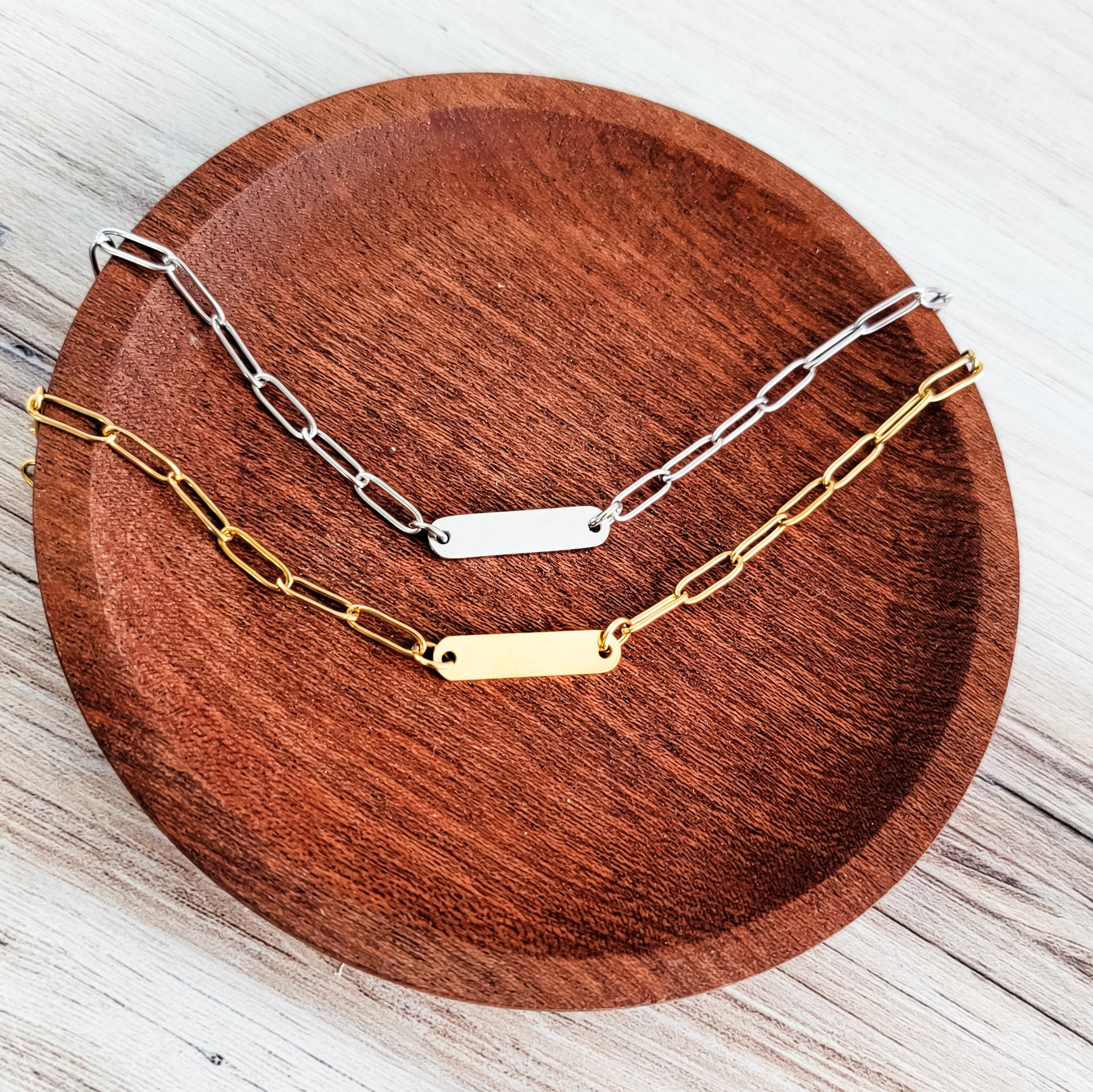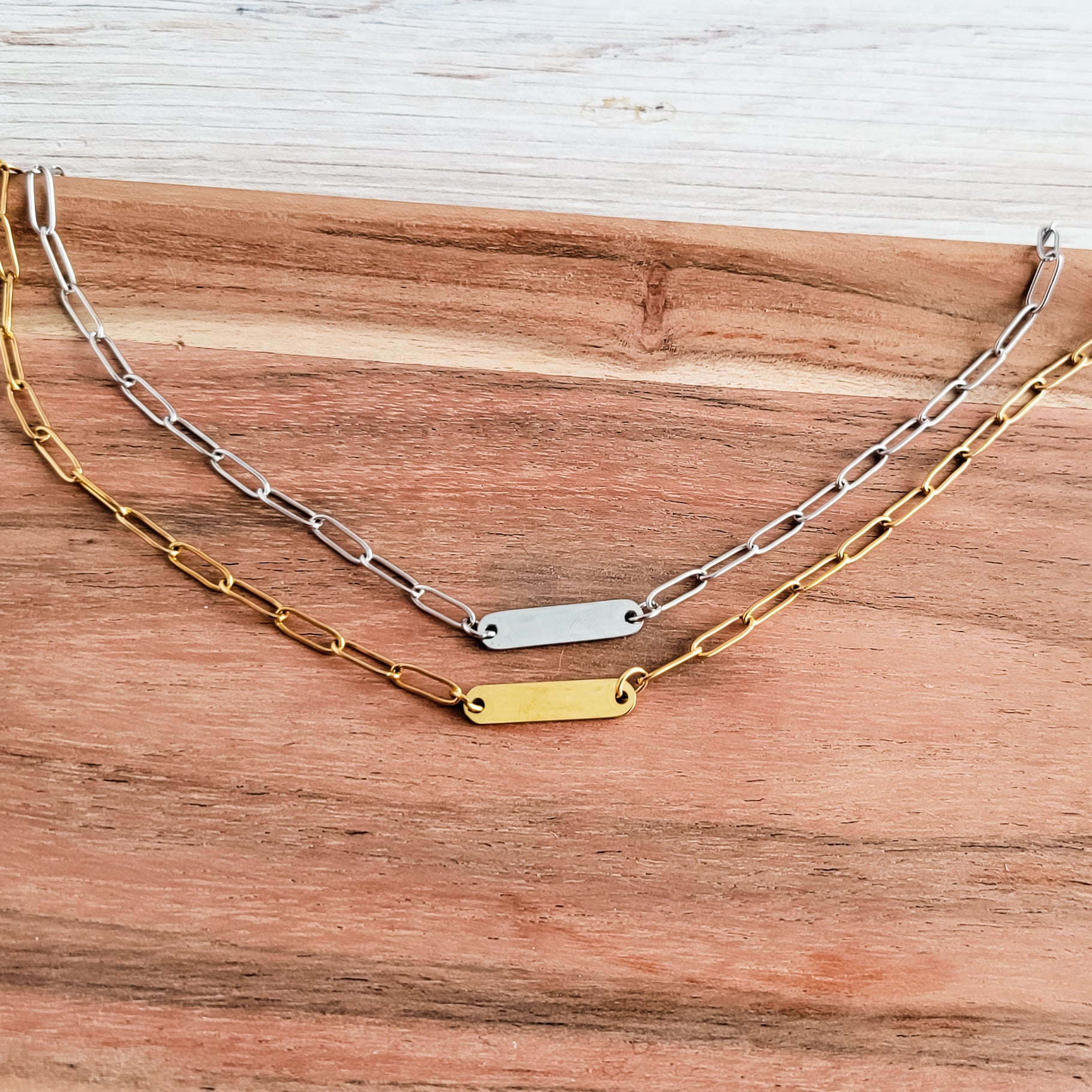 Oval Bar Paperclip Necklace (Silver or Gold), 1 Total, Metal Blank #137