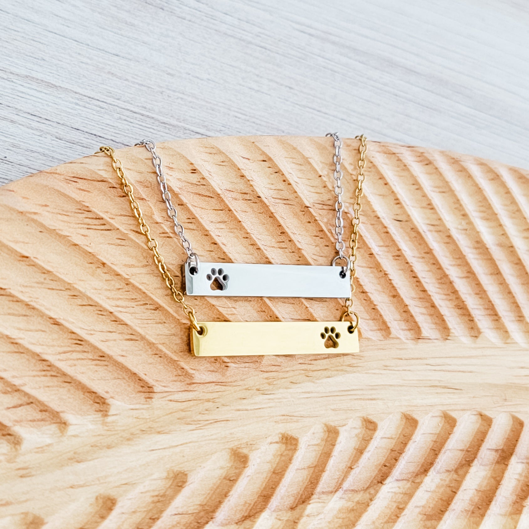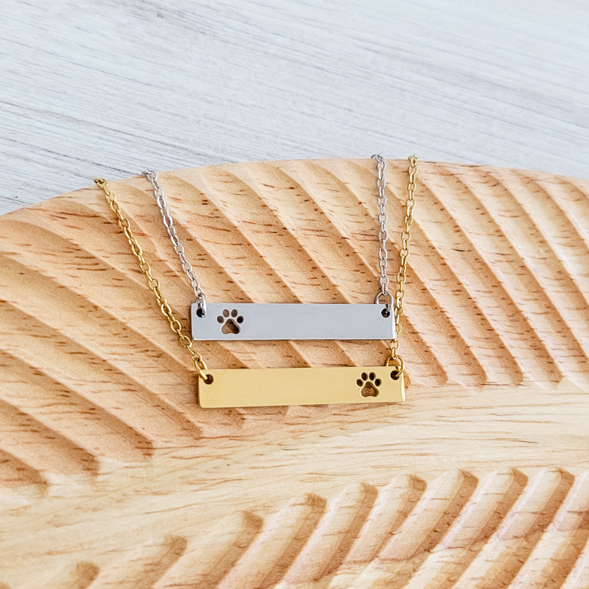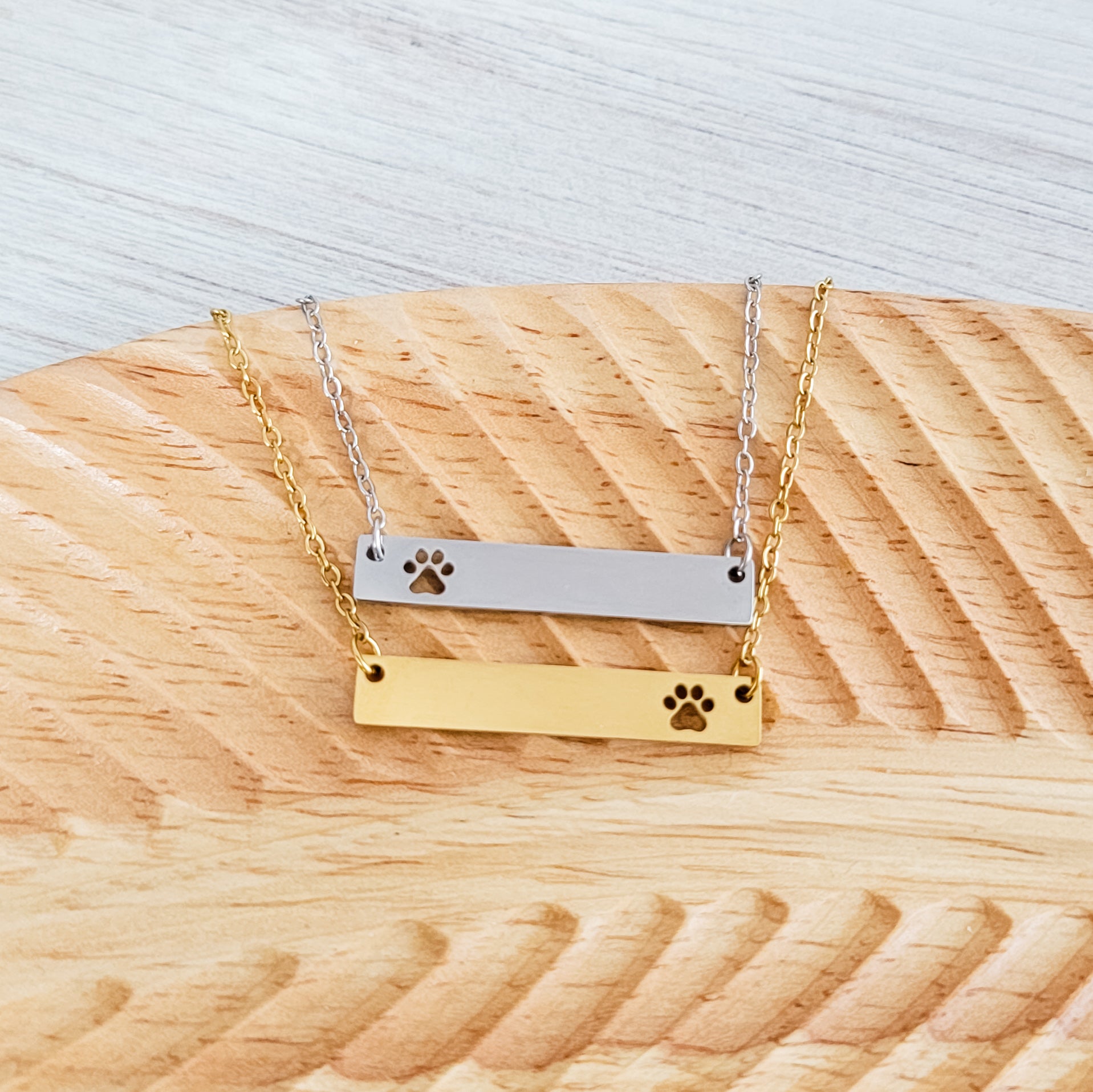 Paw Print Cutout Horizontal Bar Necklace (Silver or Gold), 1 Total, Metal Blank #179