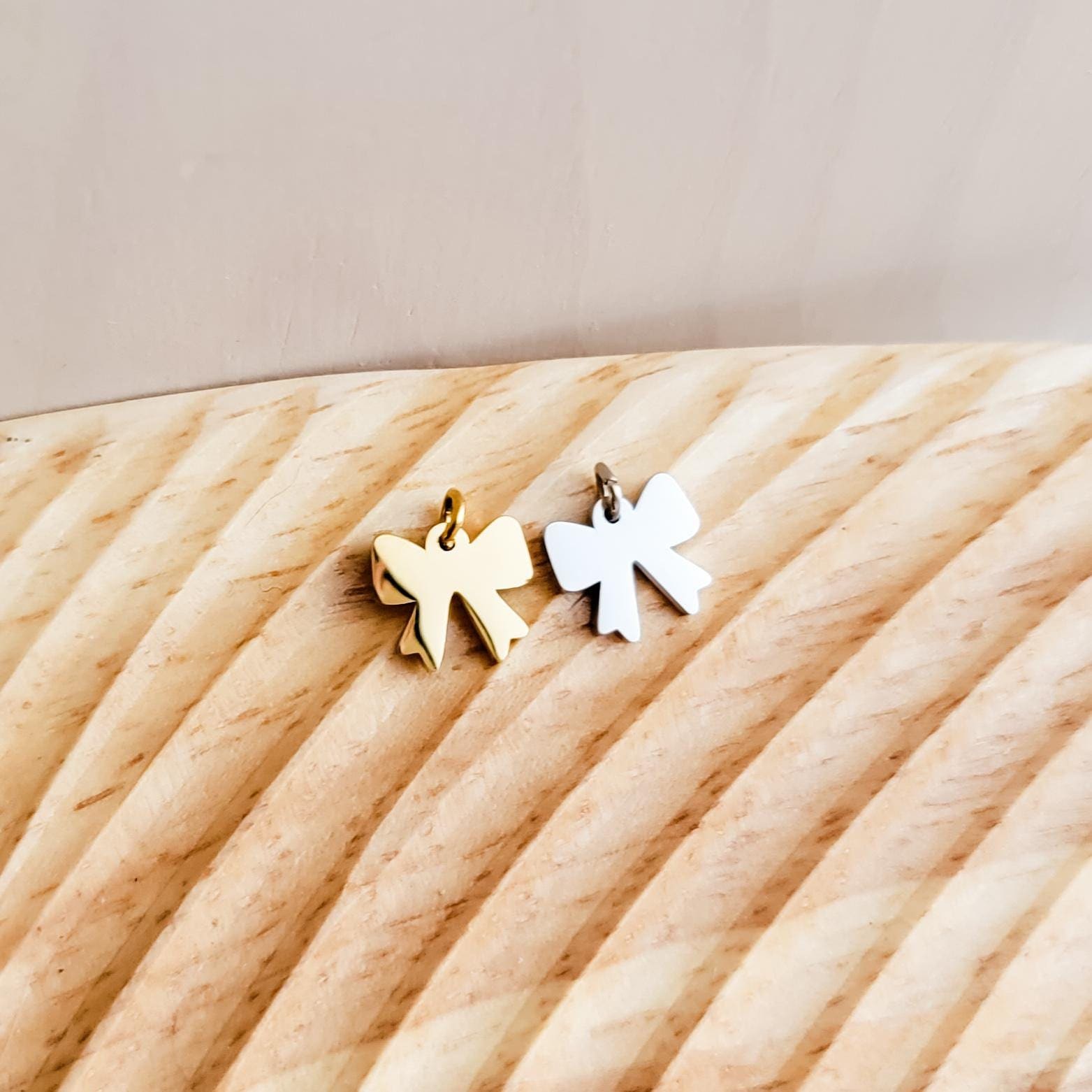 Petite Bow Charms with Attached Jump Rings (Silver or Gold), 5 Total Pieces, Metal Blank #102
