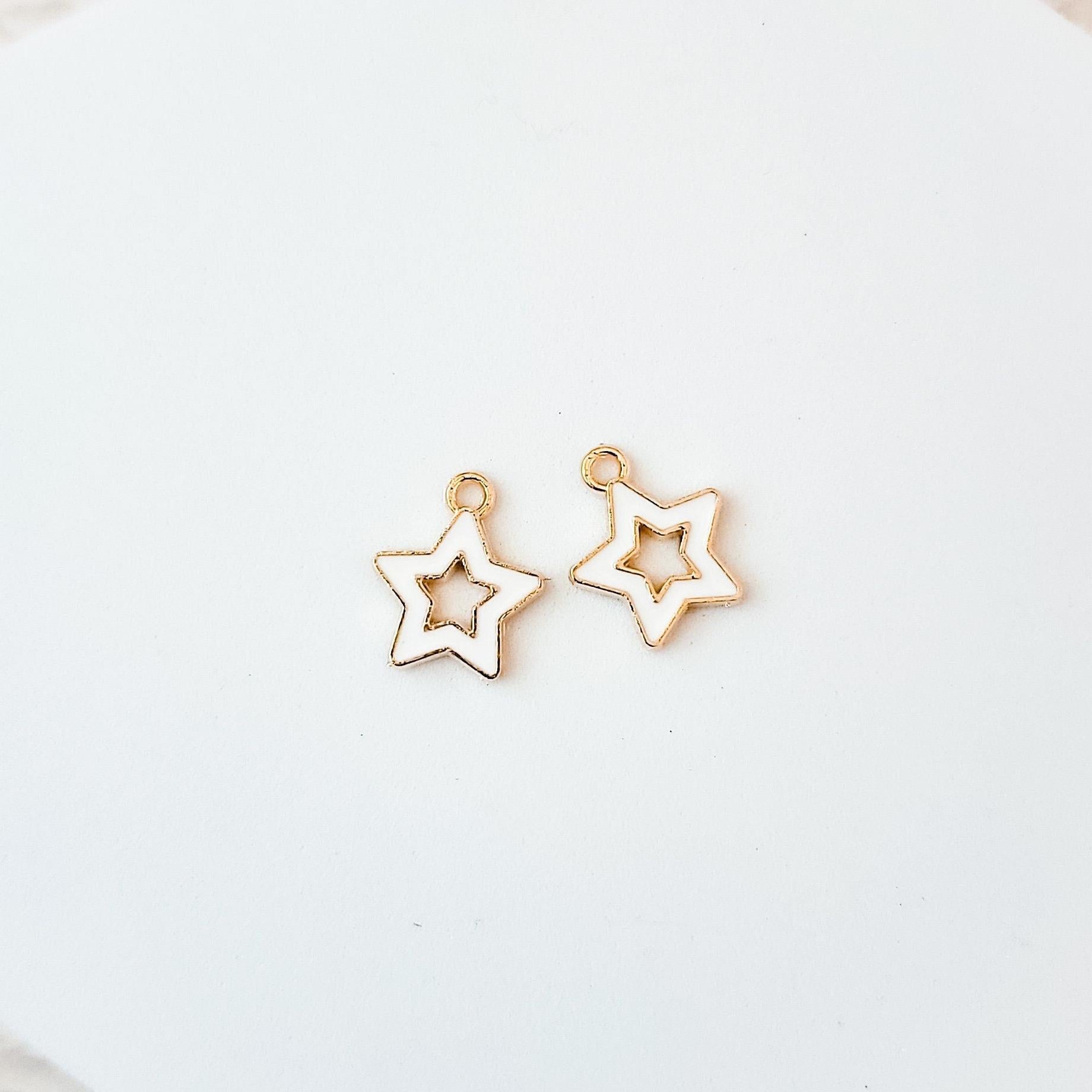 Petite White Star Gold-Plated Enamel Charms, 10 Pieces